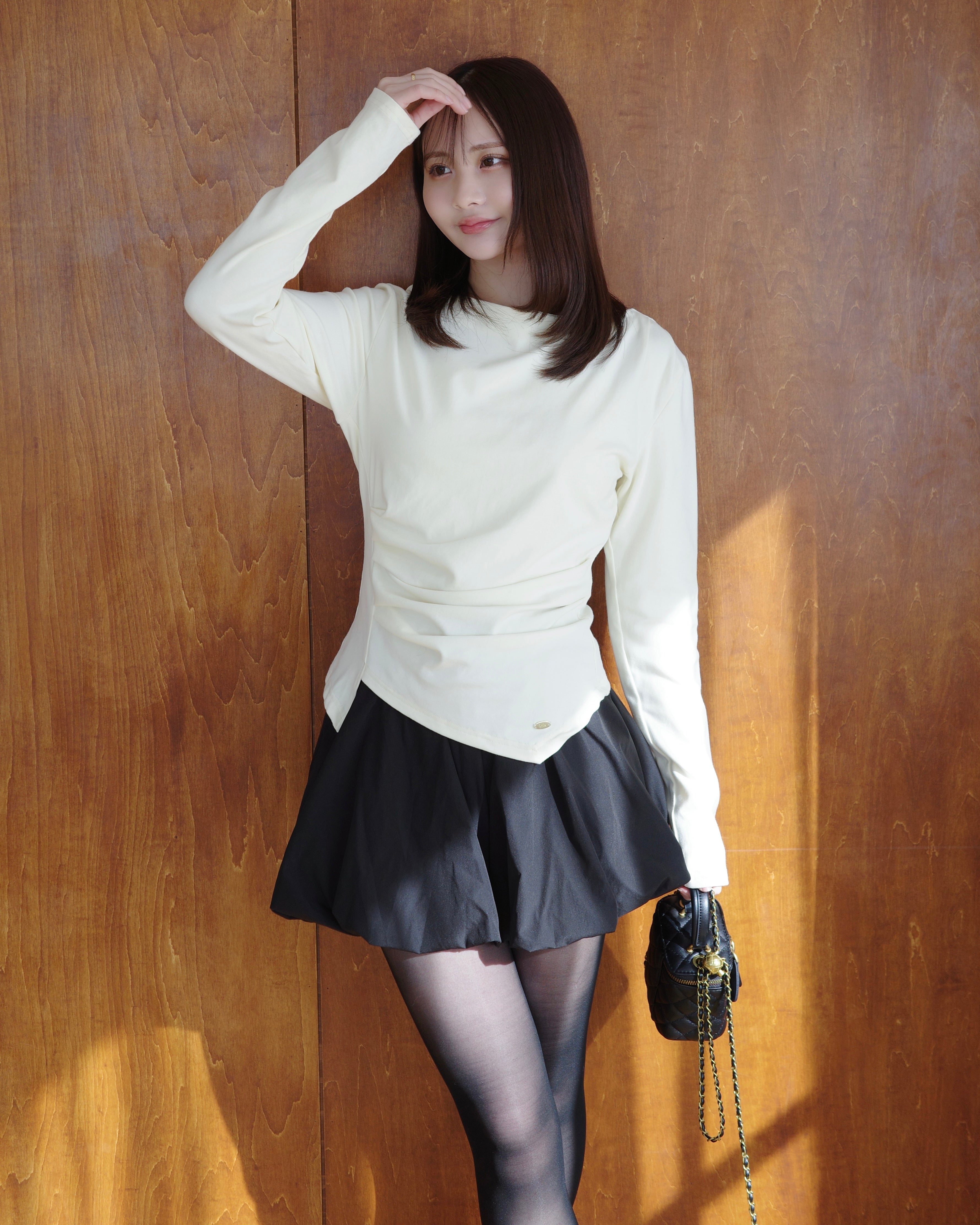 広がりすぎないシルエットで、ブラウスやニットなど様々なトップスと相性抜群◎