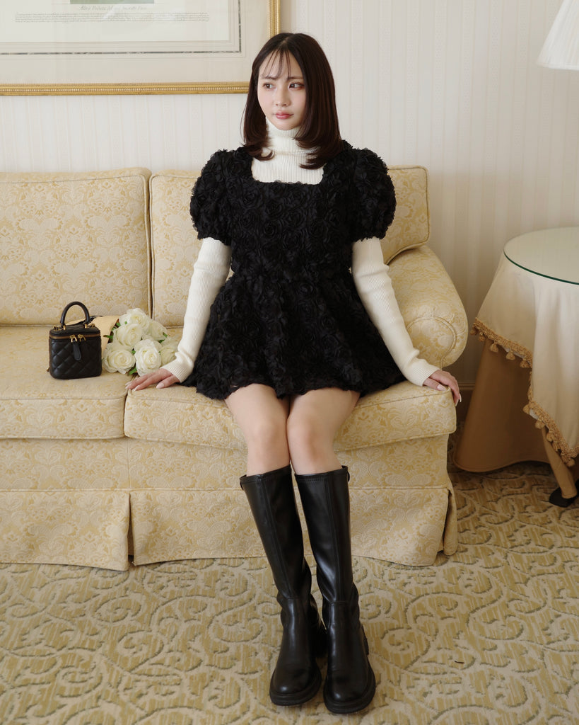 立体感あるフラワーモチーフが華やかで印象的なトップス。
