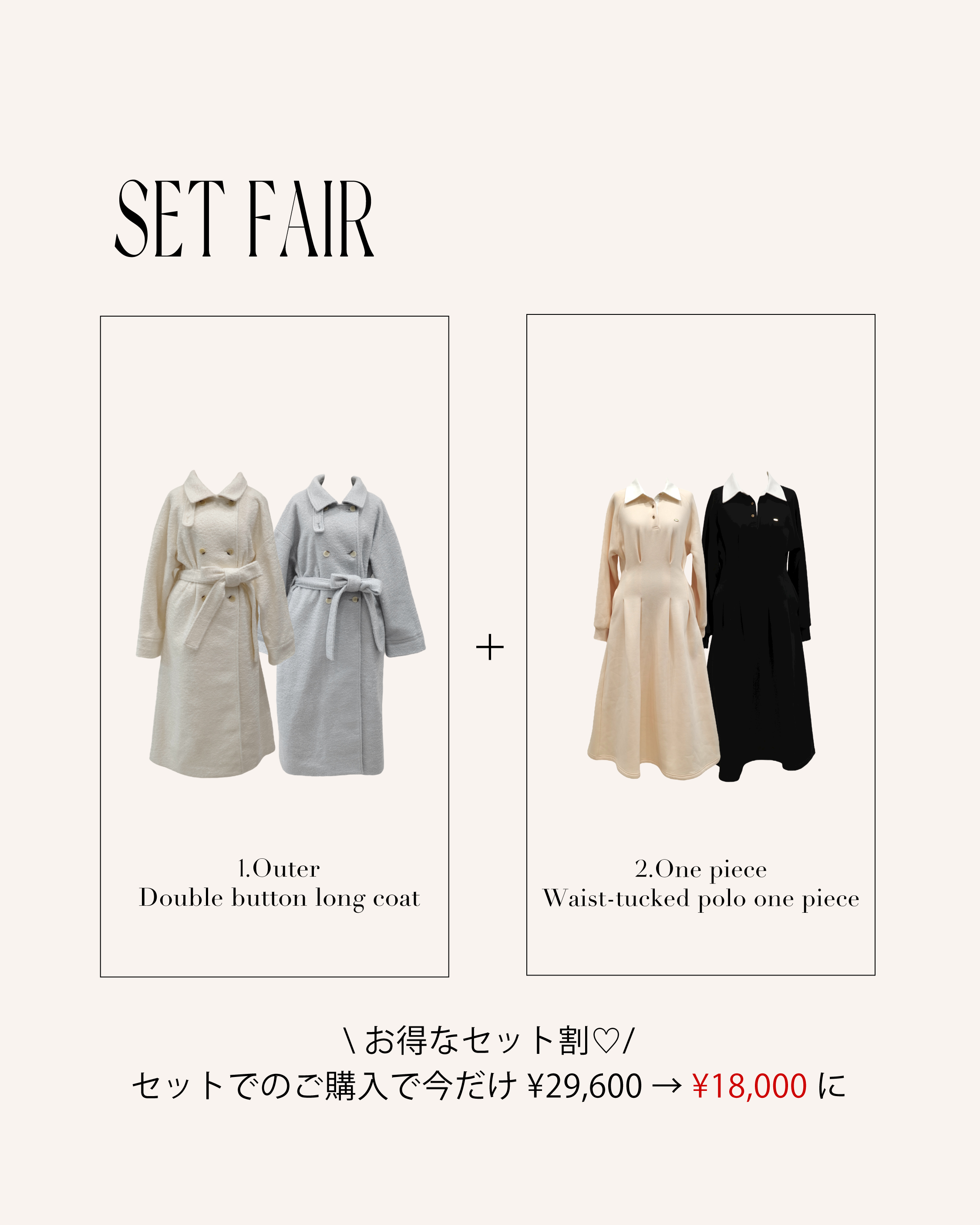 【お得なセット割】ダブルボタンロングコート+ウエストタックポロワンピース