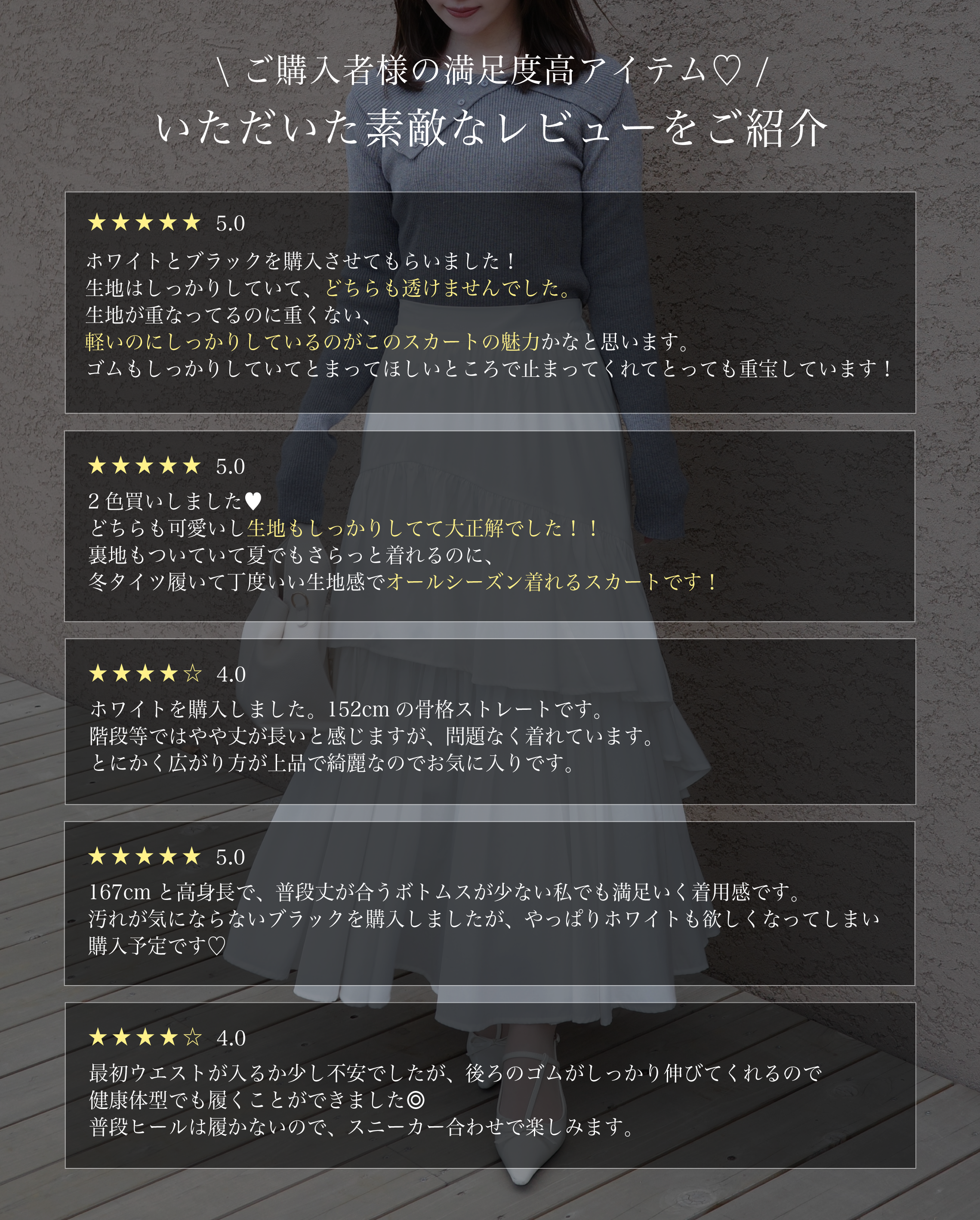 歩くたびふわりと揺れる、立体感のあるティアードスカート。