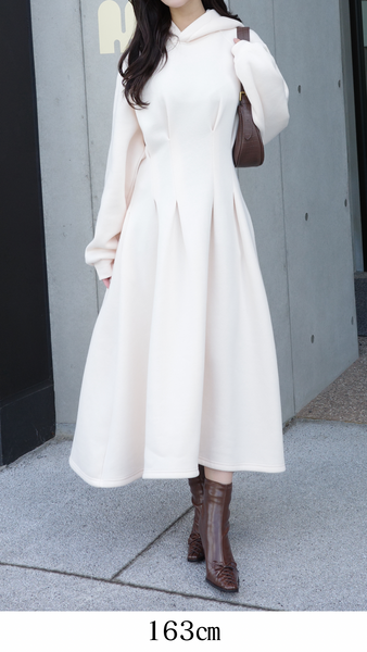 着るだけで暖かく、くびれる楽ちんワンピース。