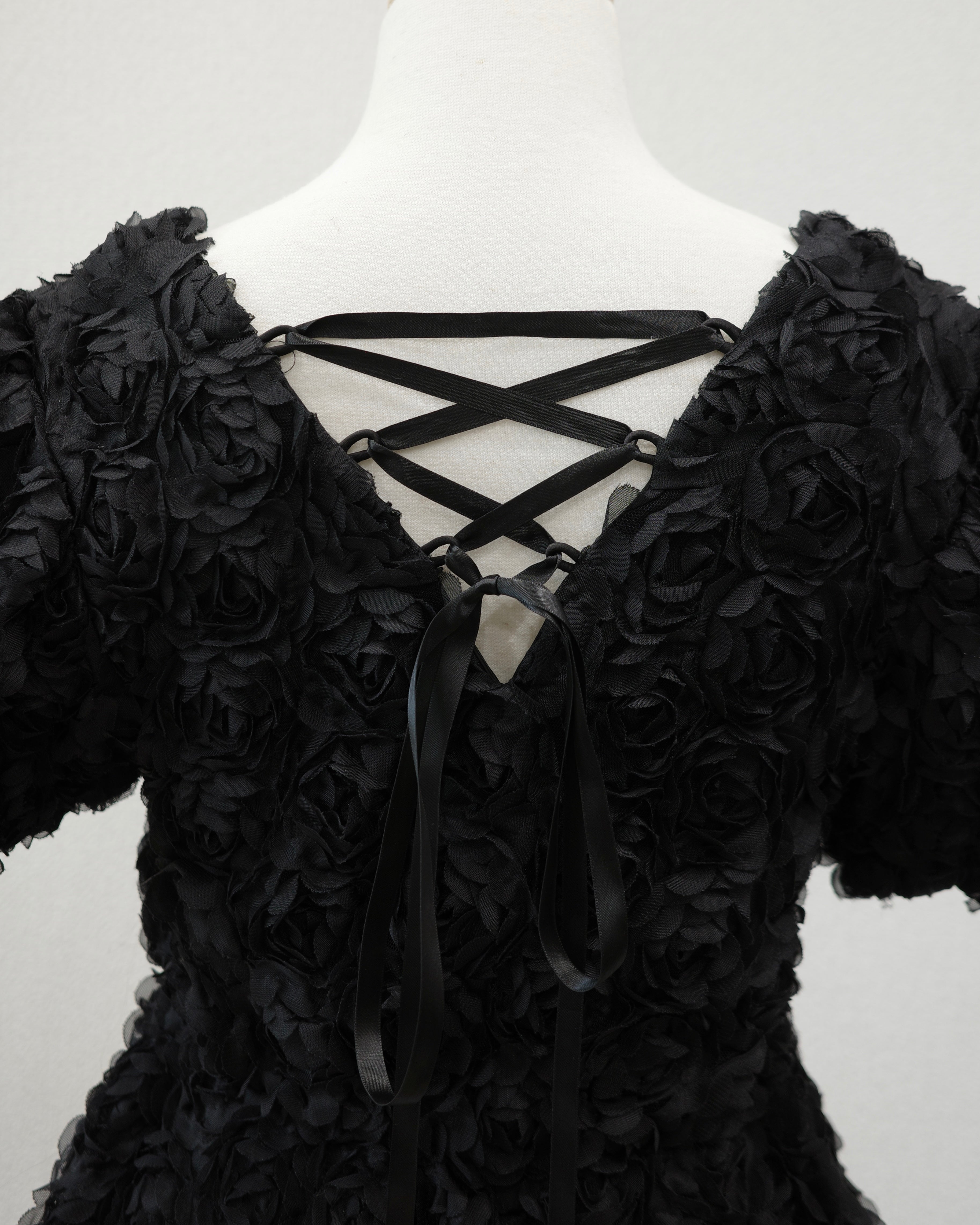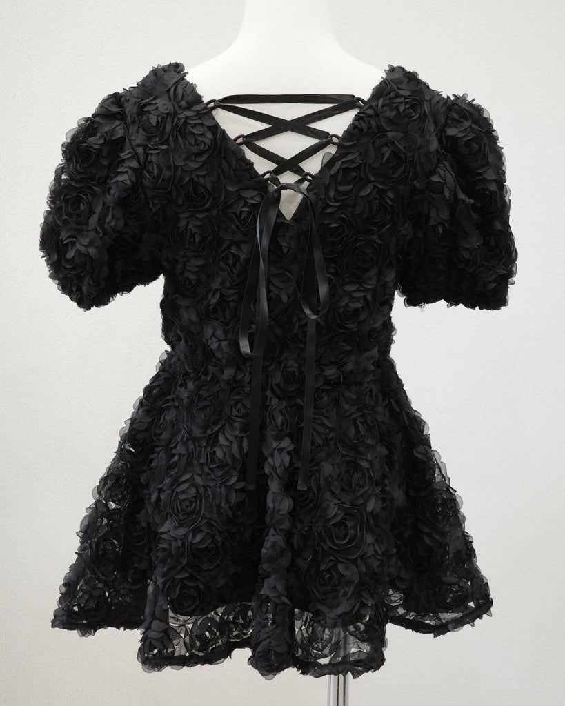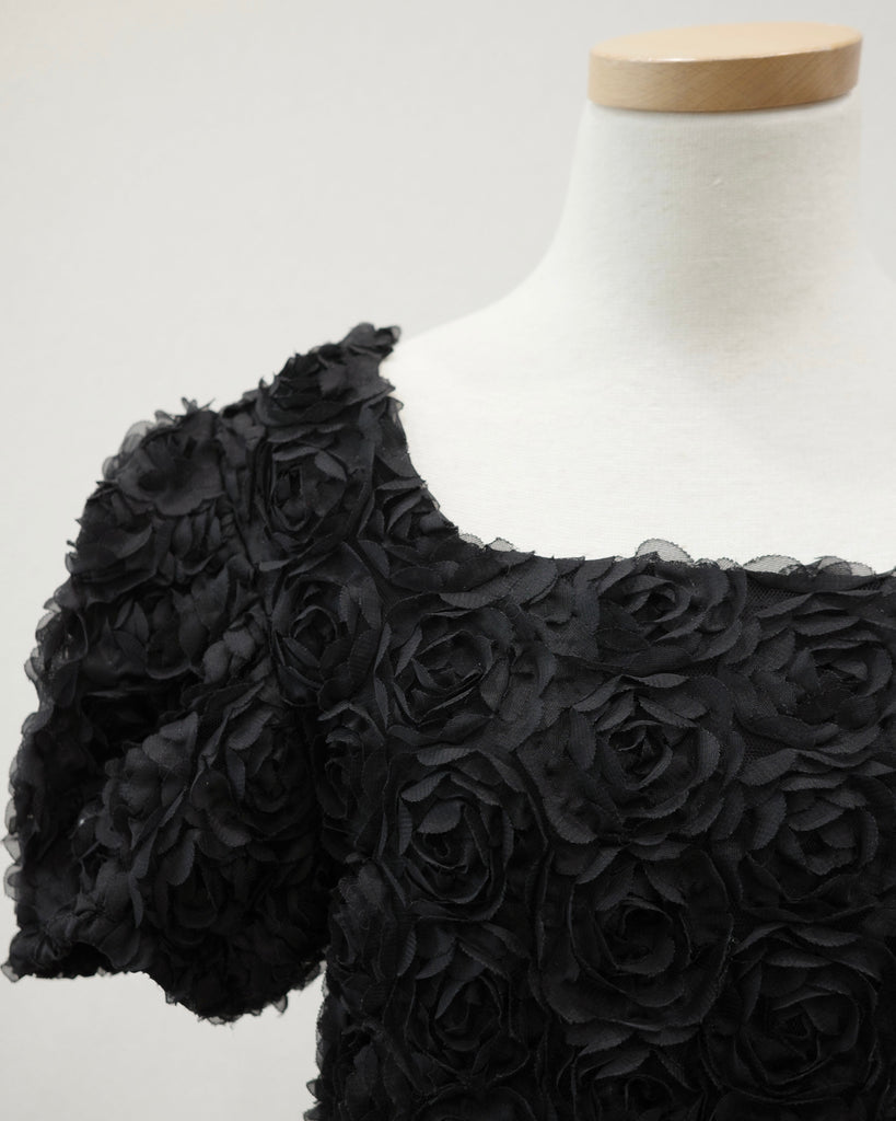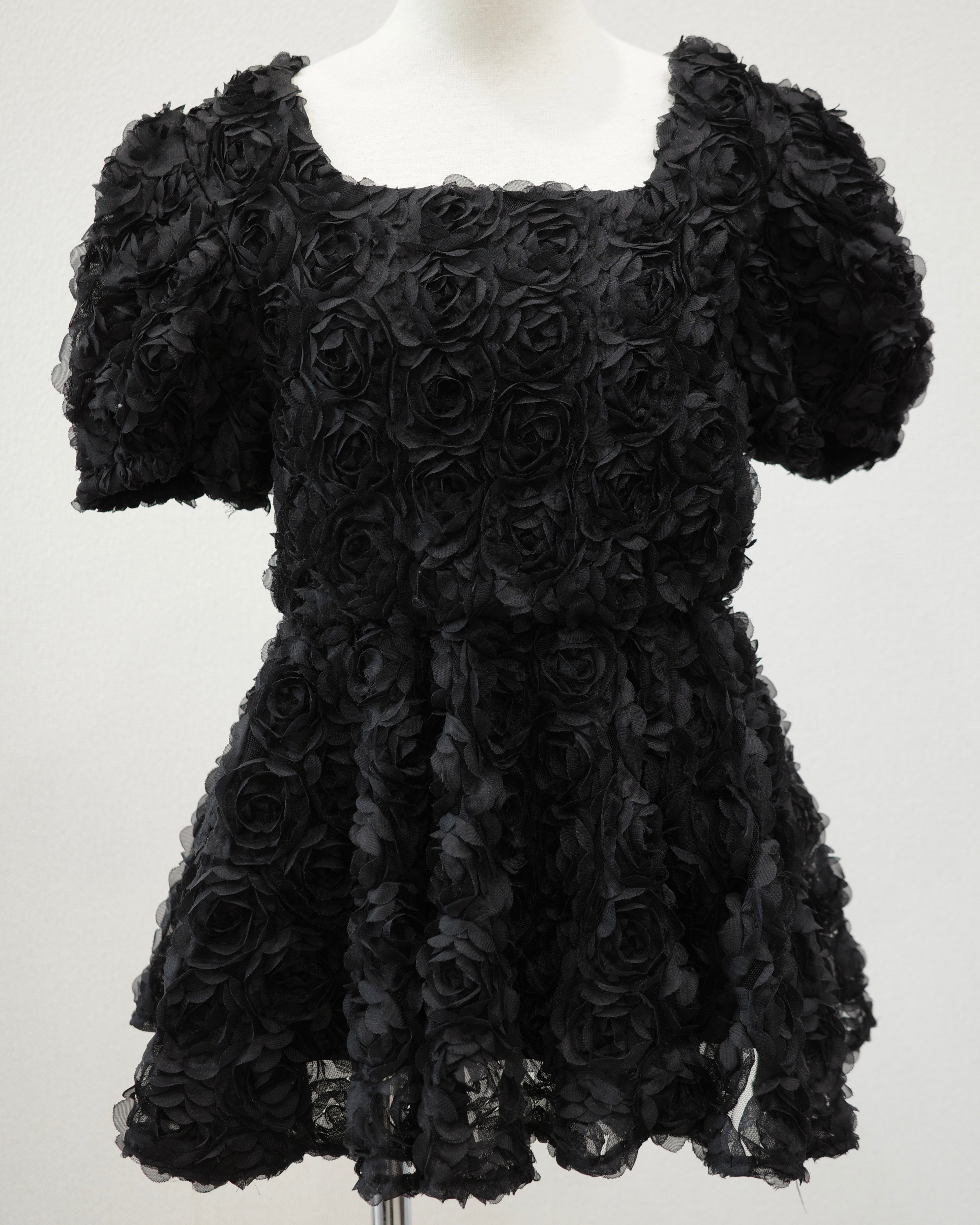 立体感あるフラワーモチーフが華やかで印象的なトップス。