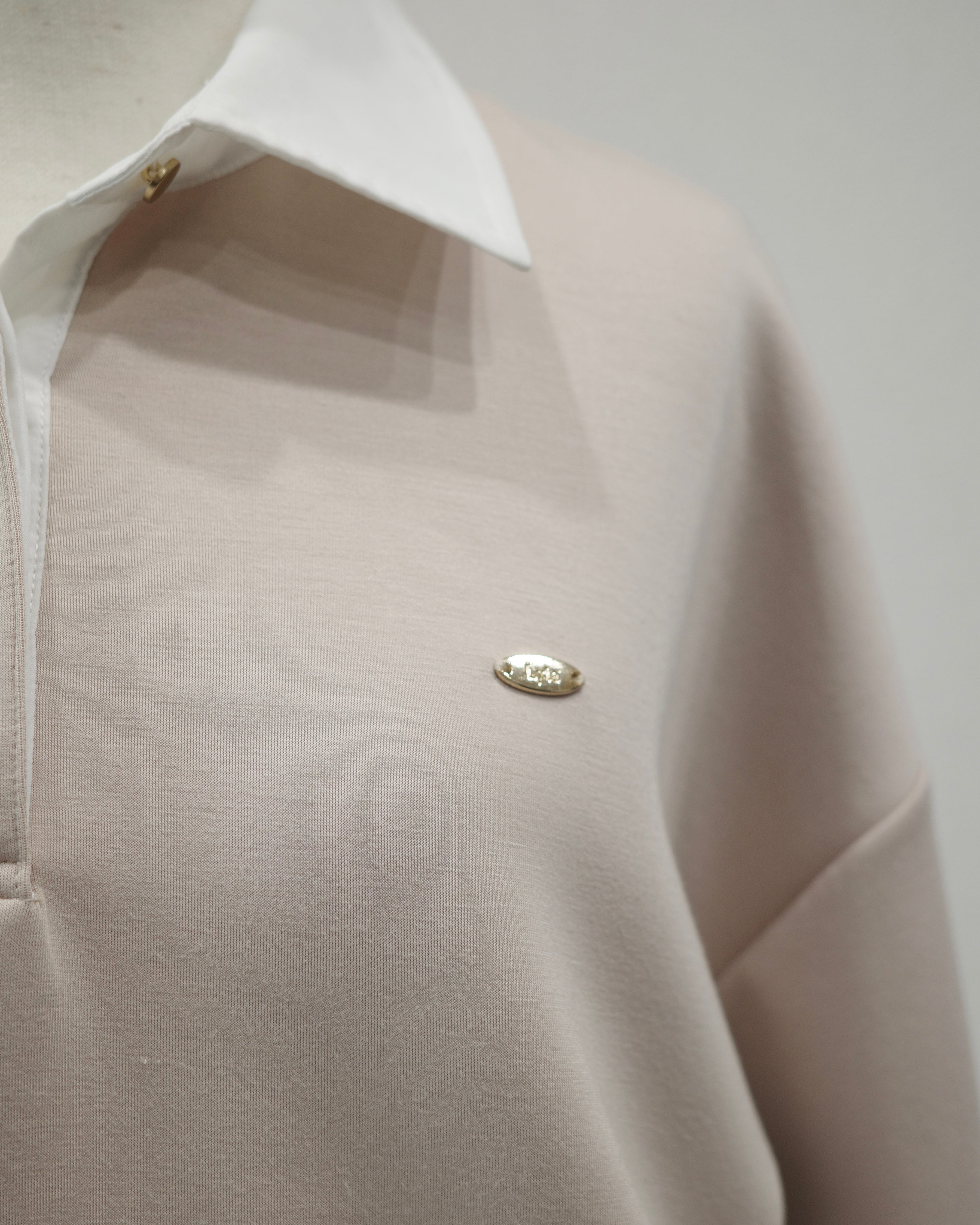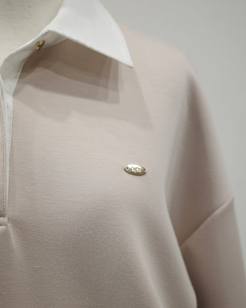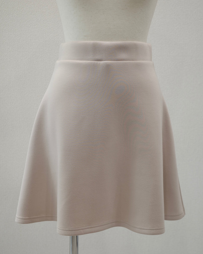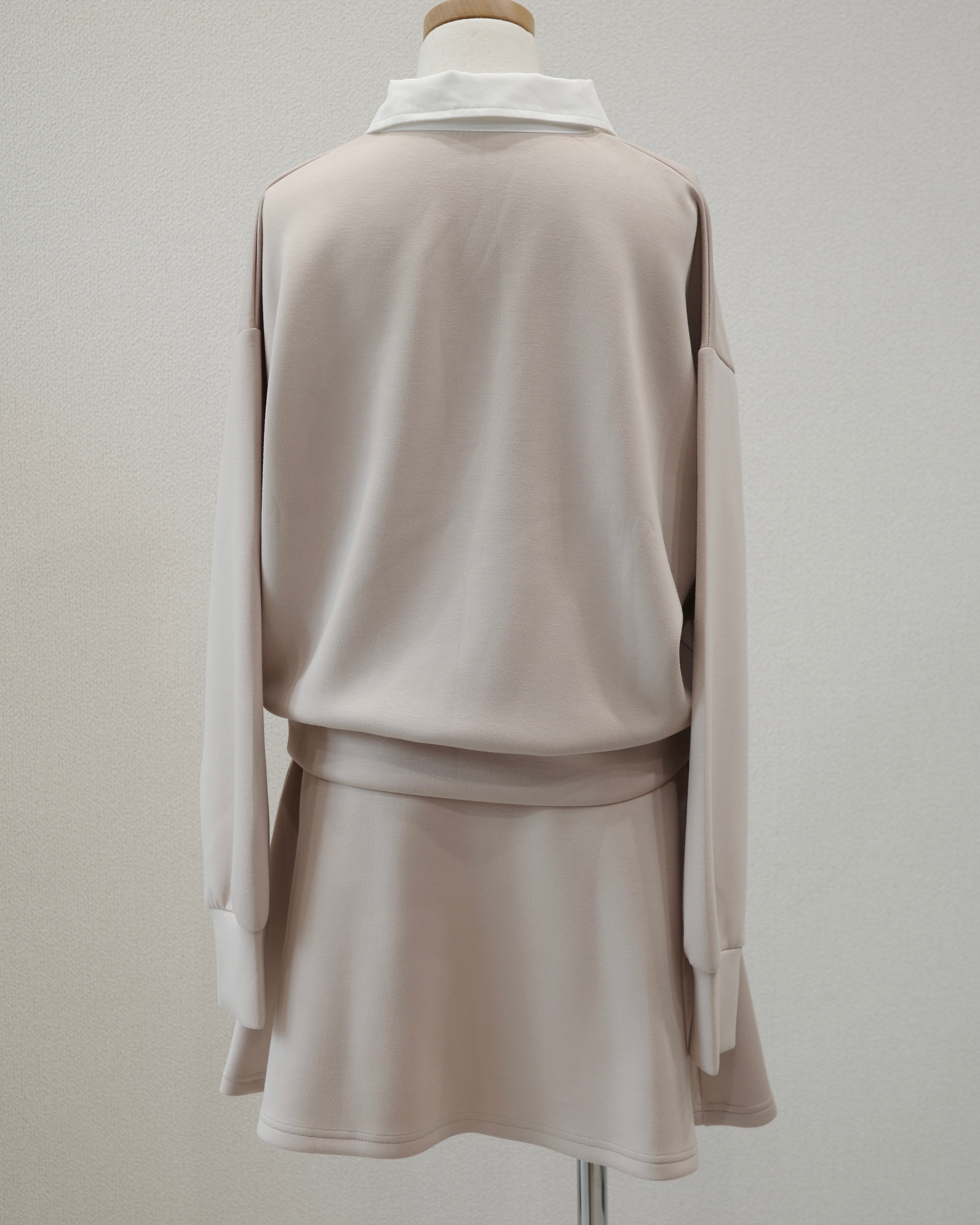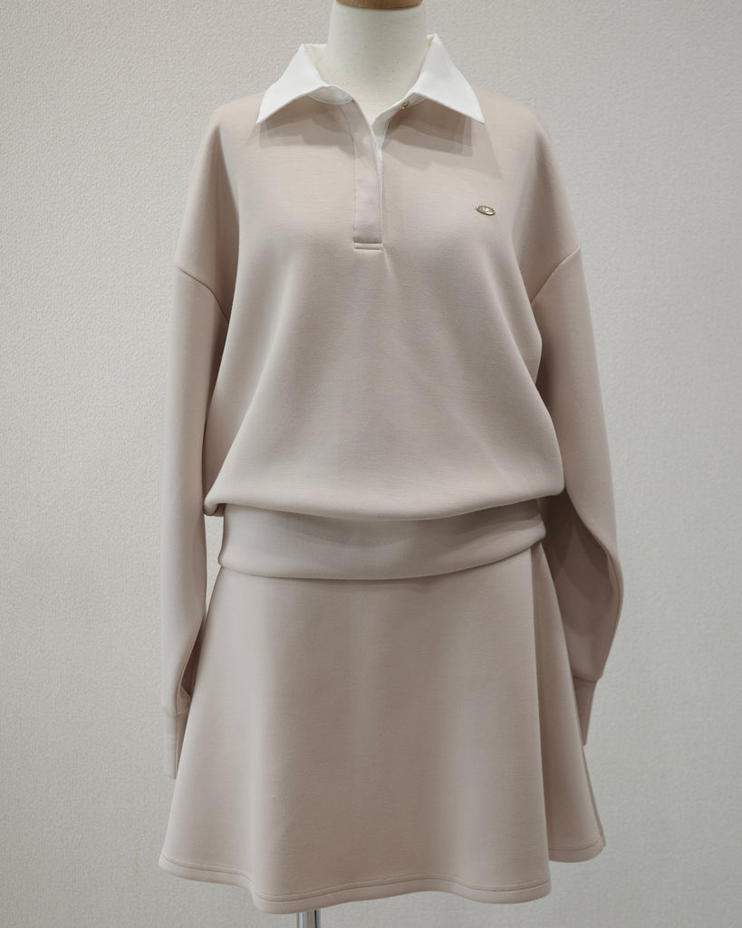 もっちりスウェット生地のトップスとミニスカートのセットアップ。