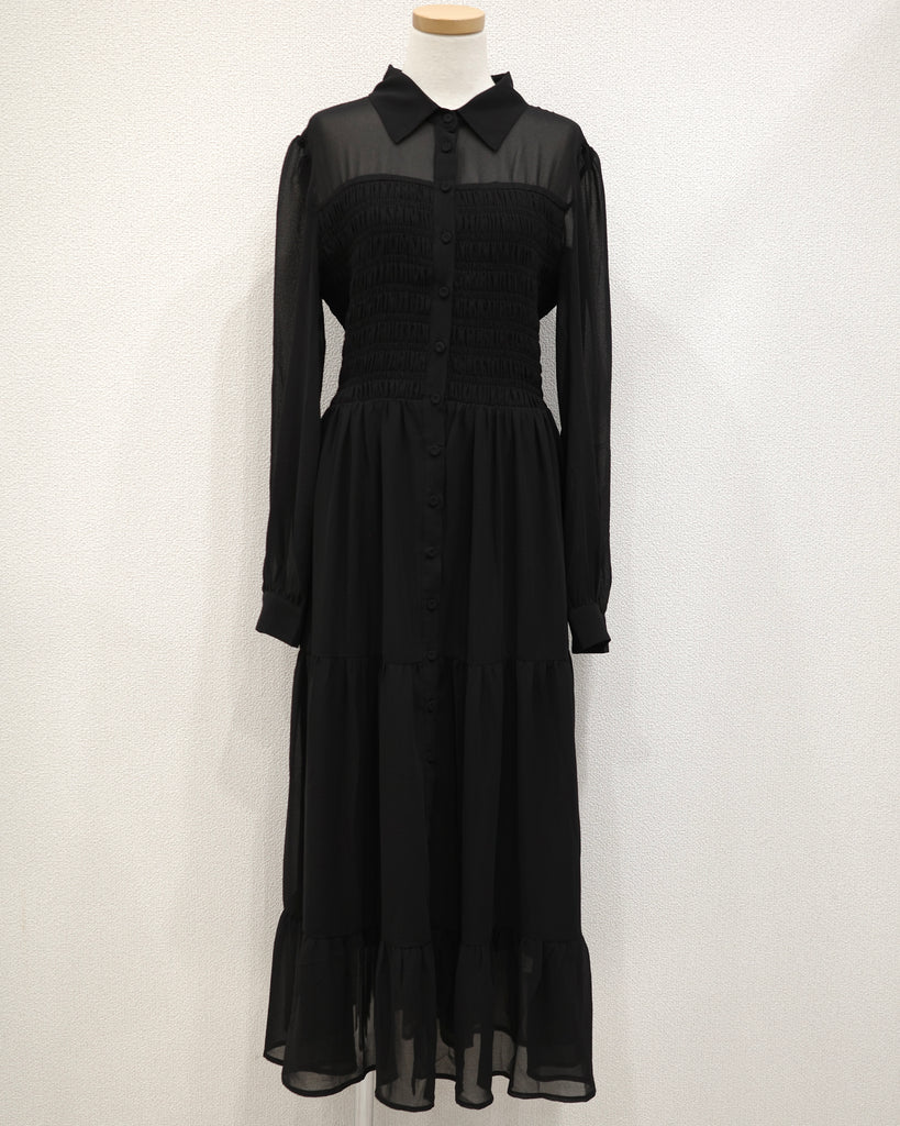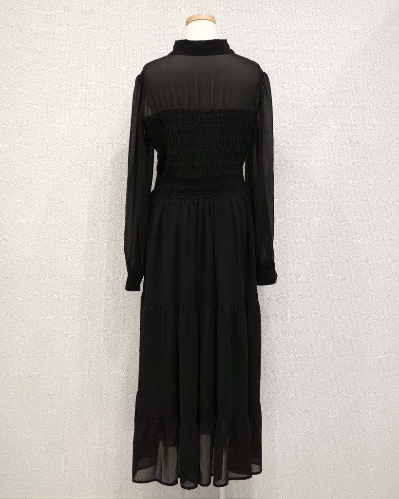 サラッとしたシフォン素材で、広がりすぎない上品なティアードワンピース。