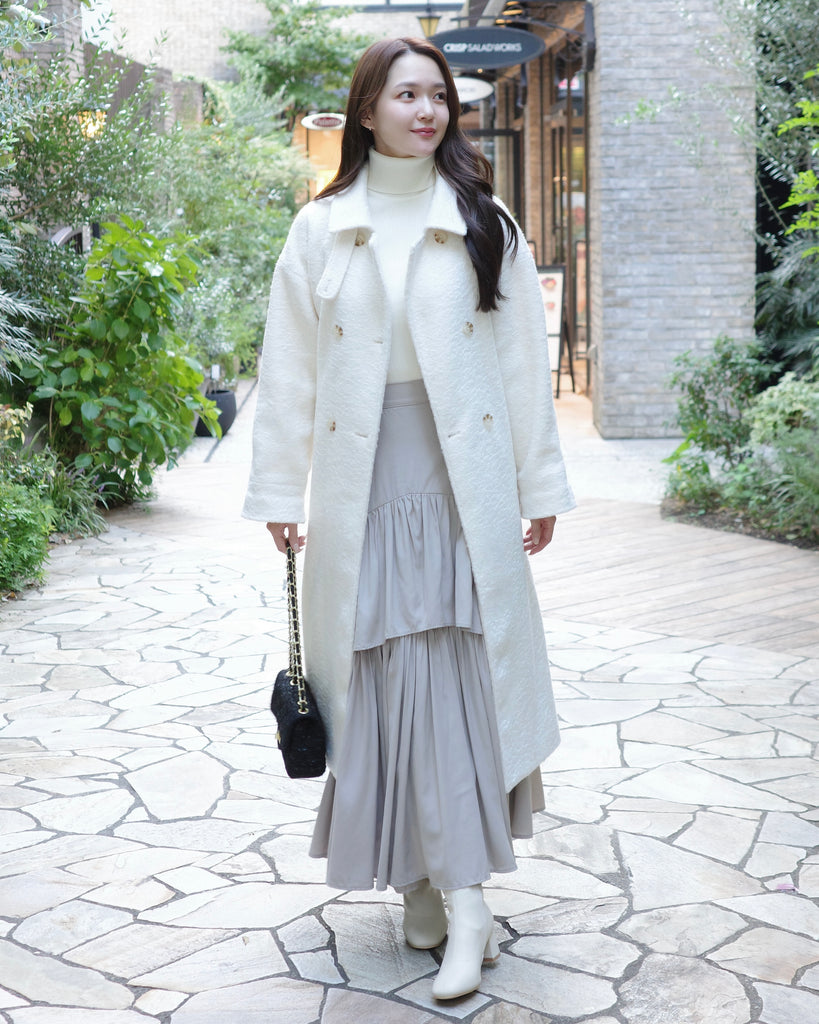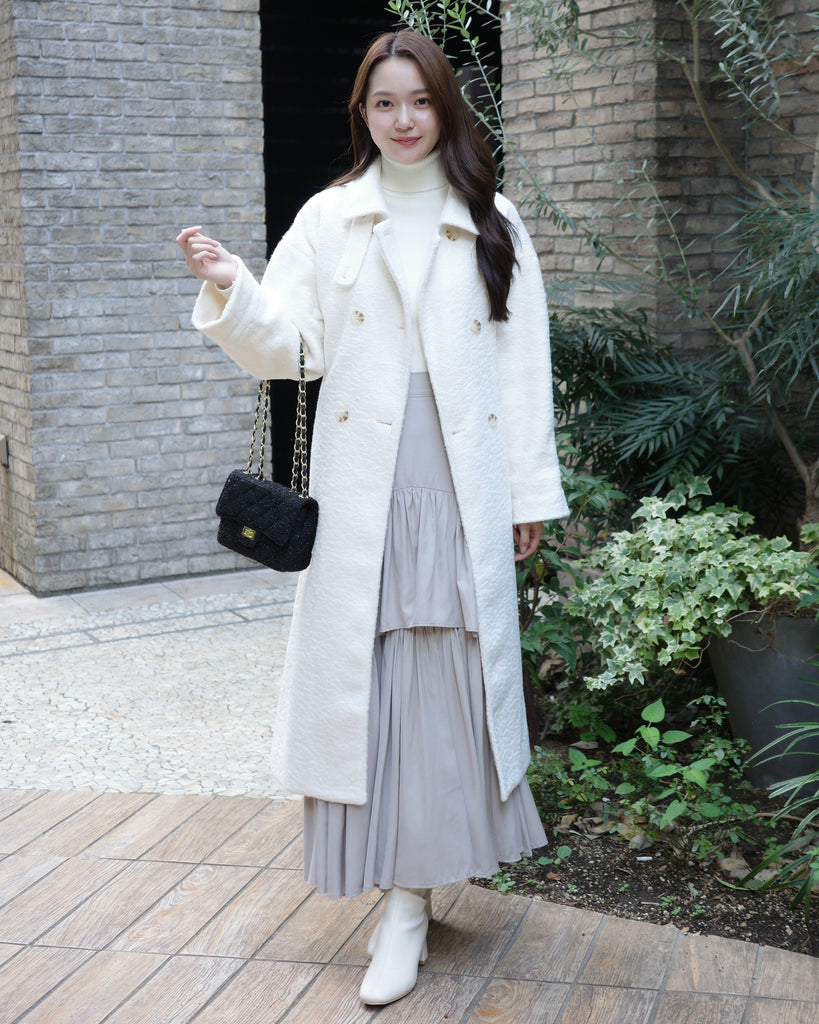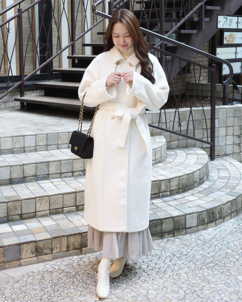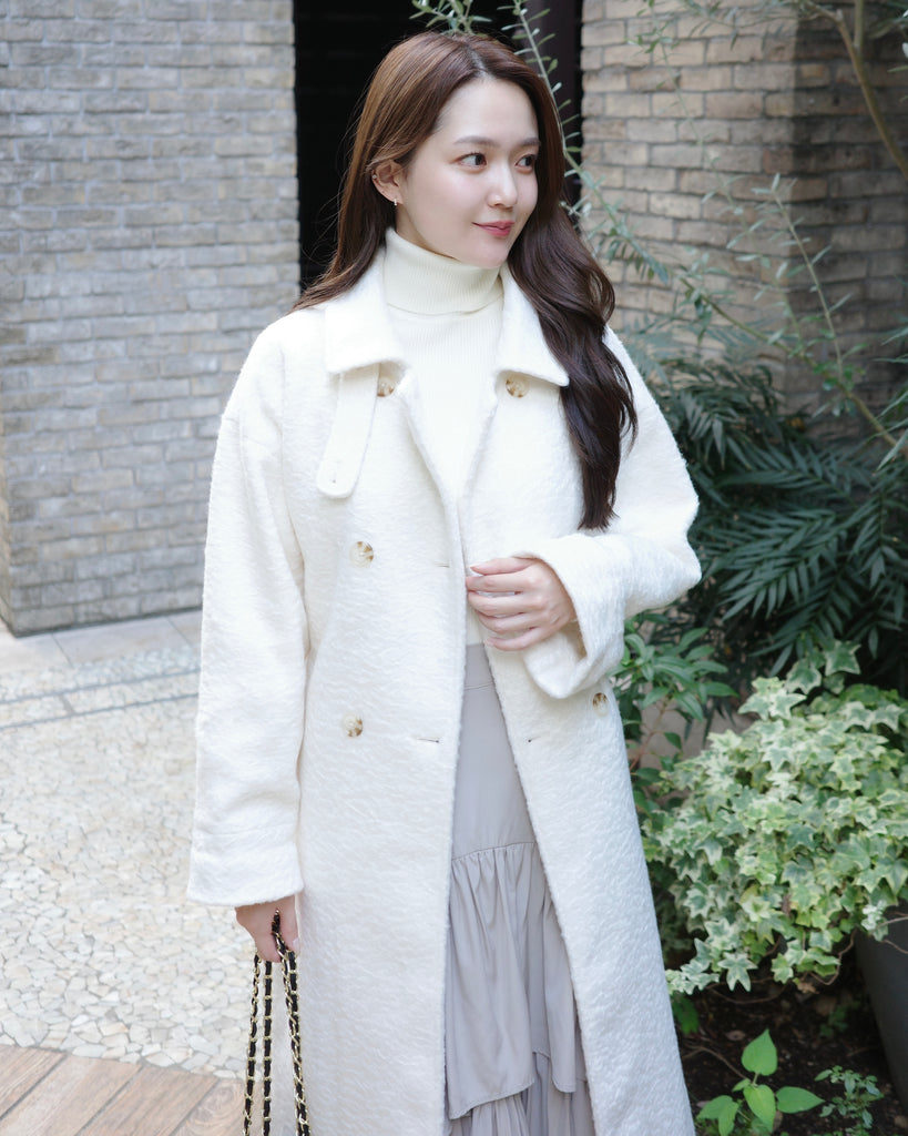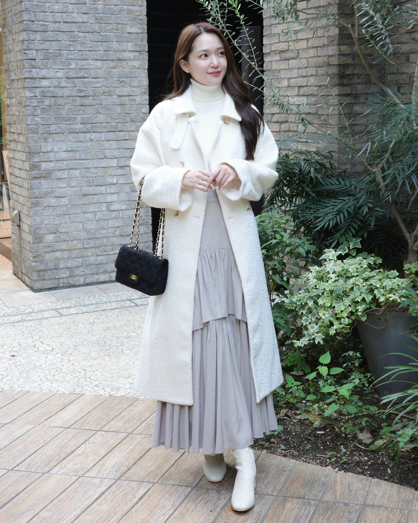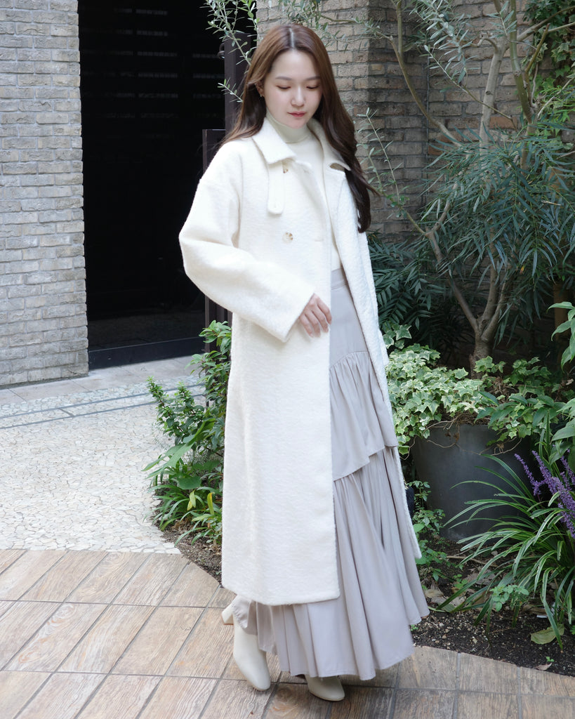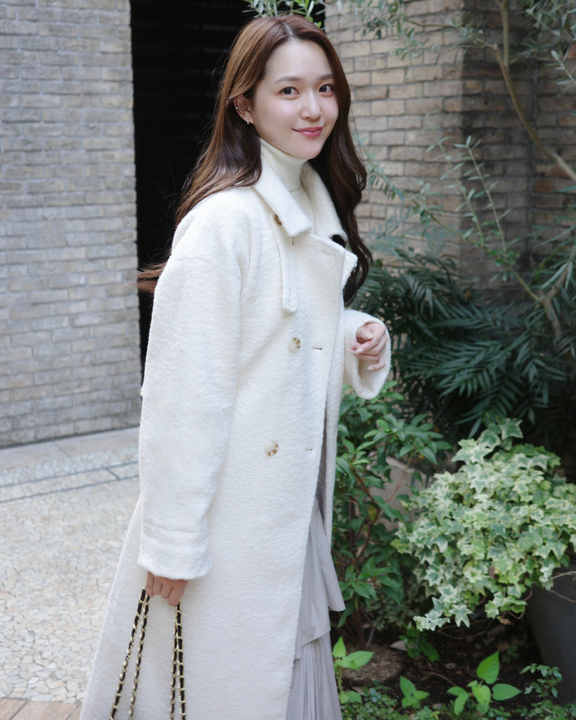 ふんわりとした質感が魅力のロングコート。