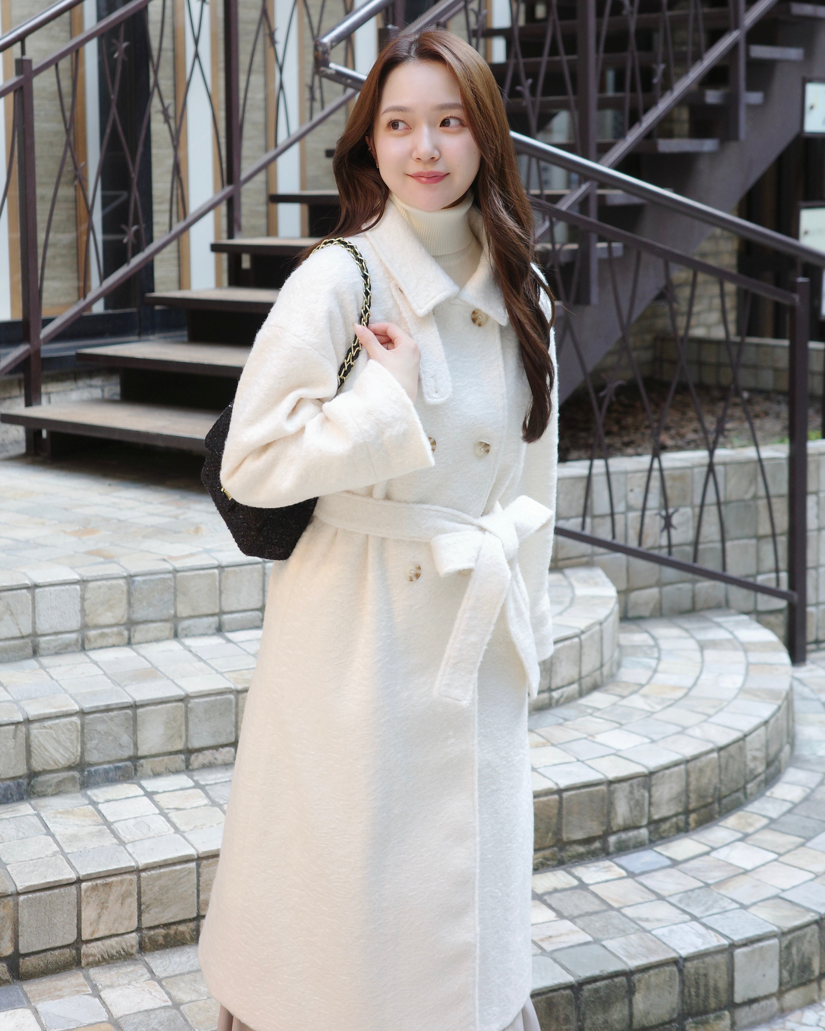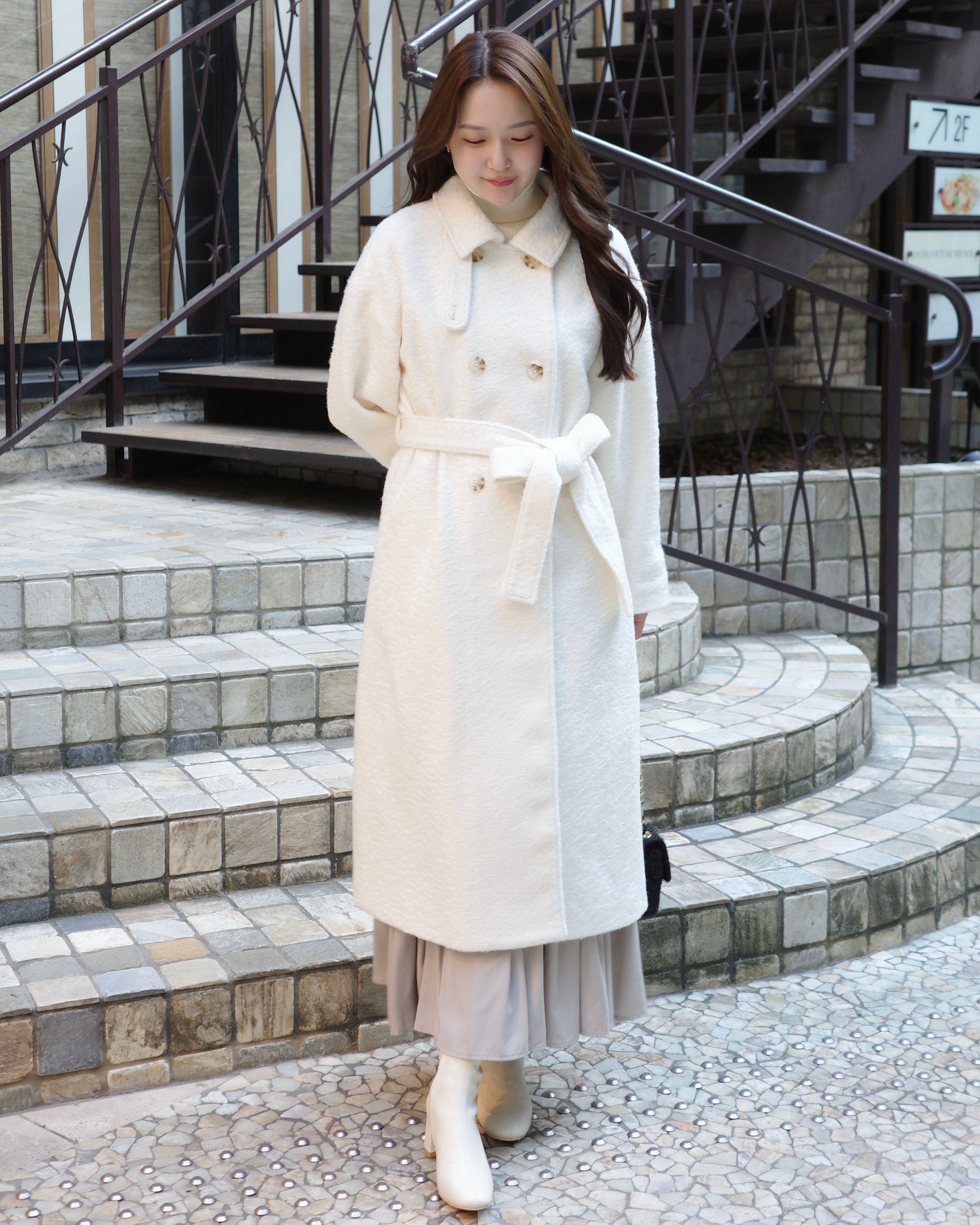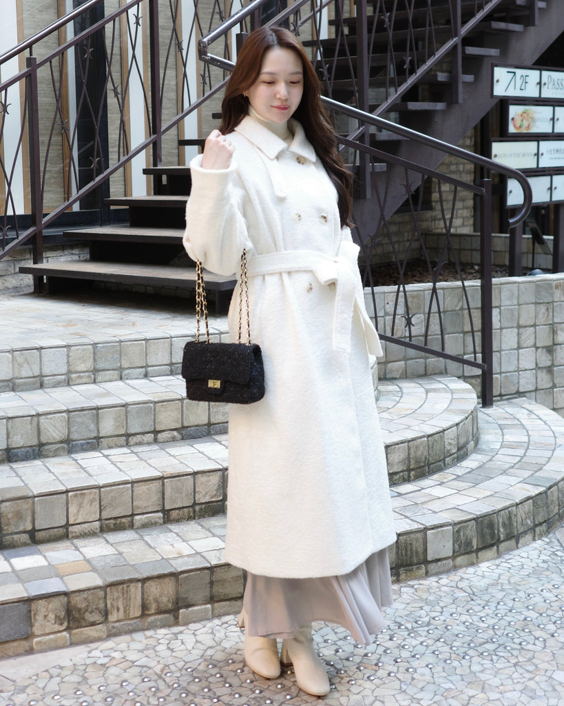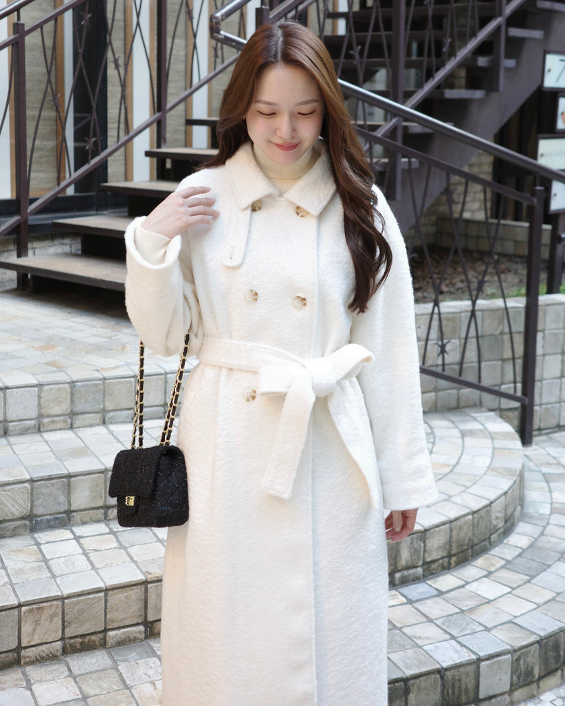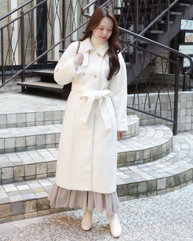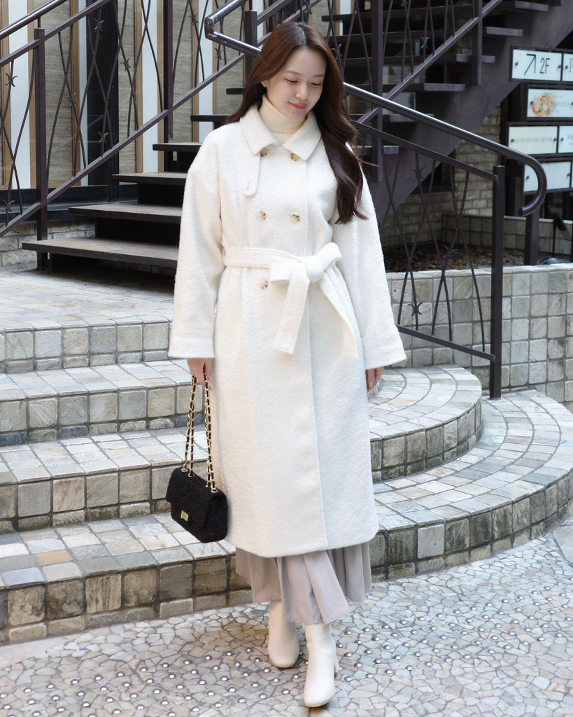 ふんわりとした質感が魅力のロングコート。