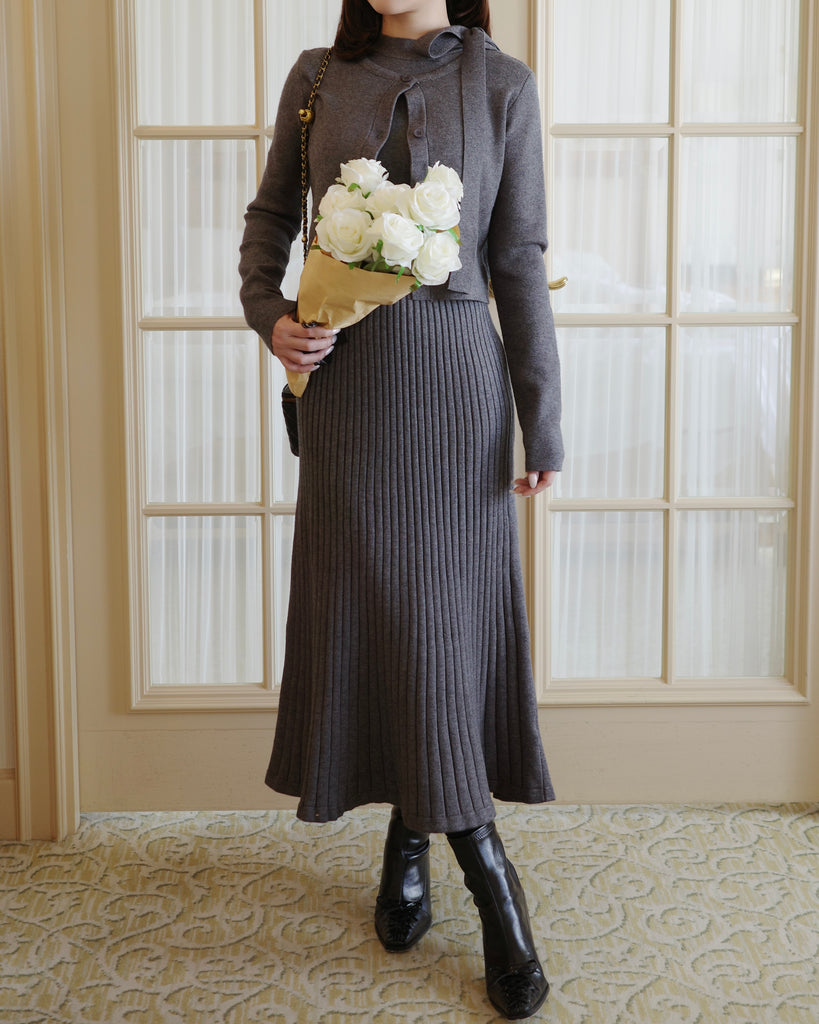 【12/12(Fri.)21:00再入荷】アンサンブルリブニットワンピース