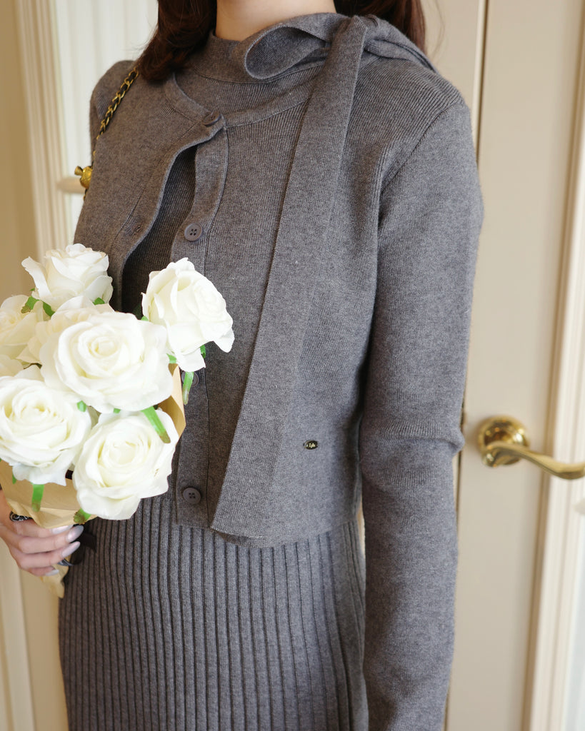ノースリーブニットワンピースとカーディガンのセットワンピース。