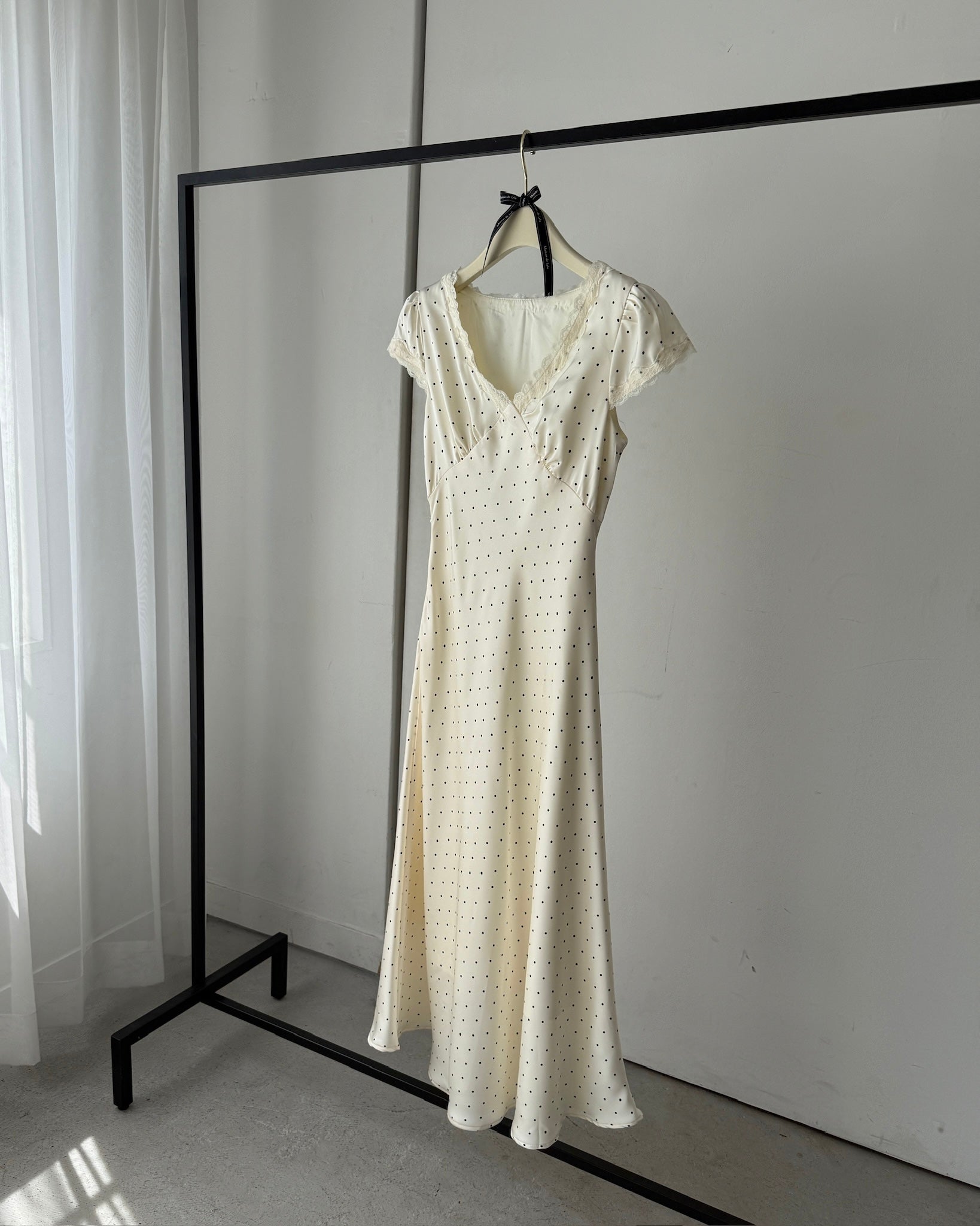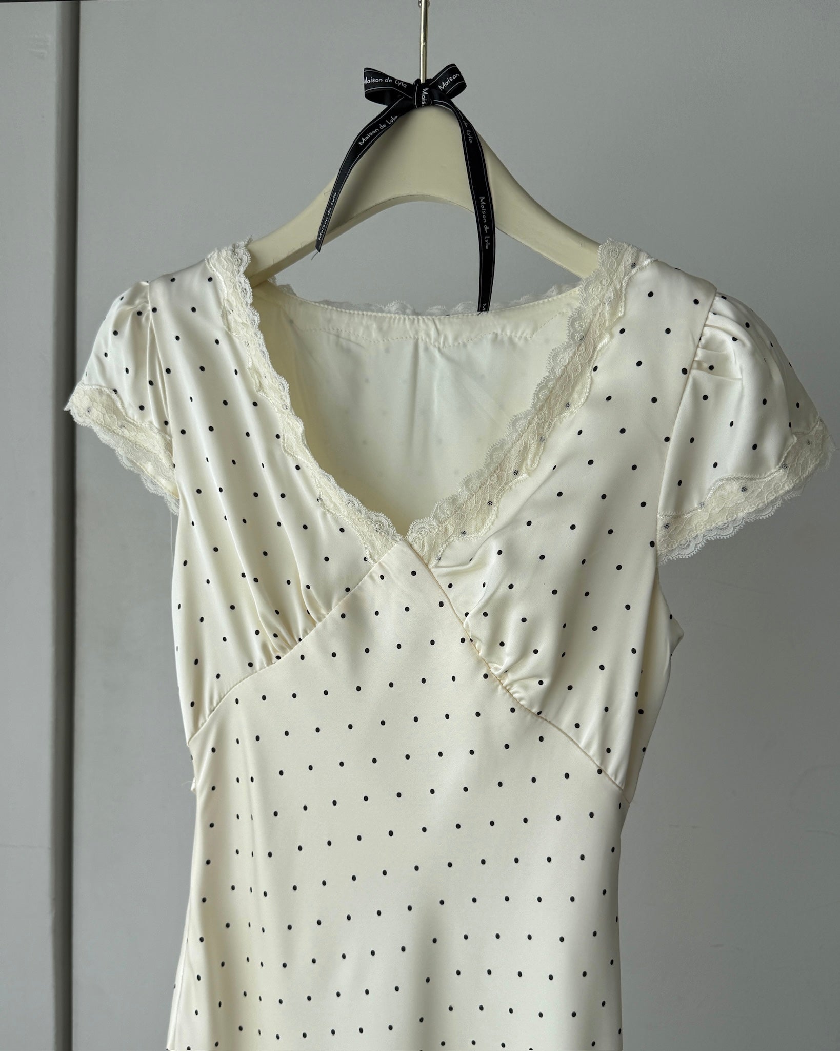 ✔︎ 繊細なドット柄とレースで、上品で女性らしい印象に