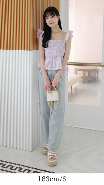 揺れ動く度に煌めく、ラインストーンデニムパンツ。