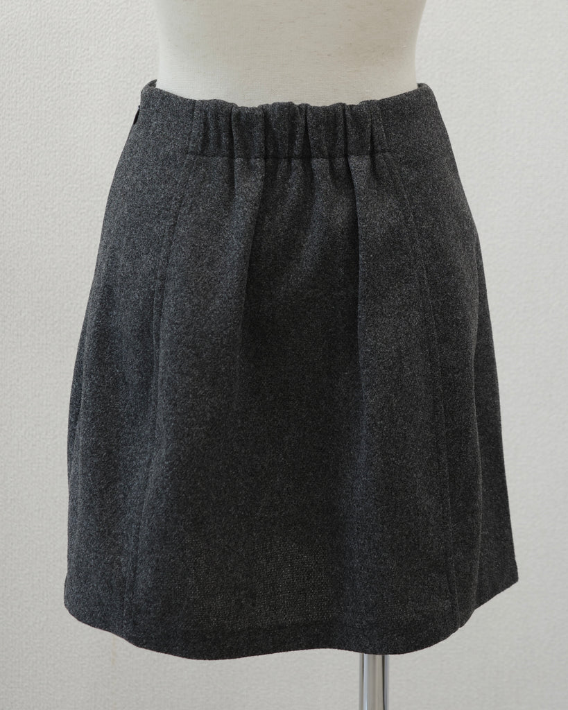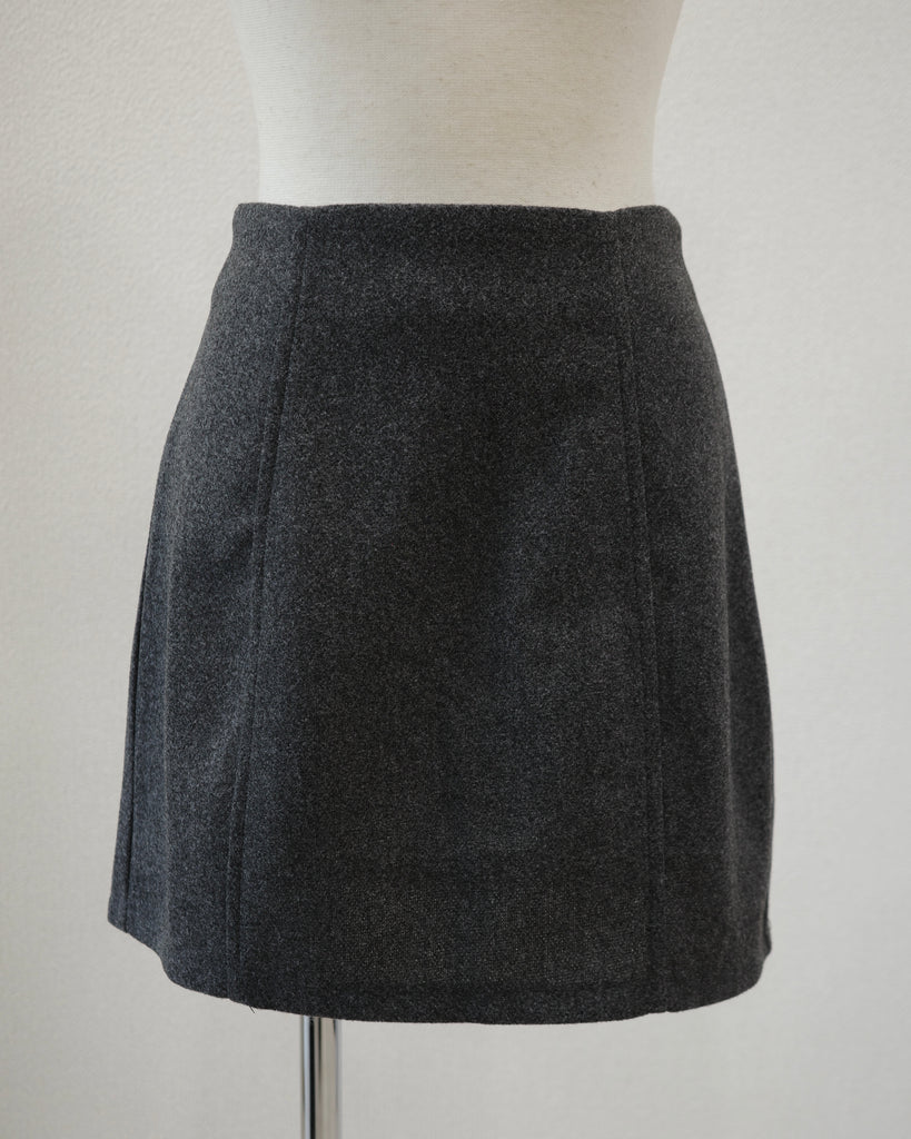 ゆるやかに広がる台形シルエットが美脚効果を高めるミニ丈のスカート。