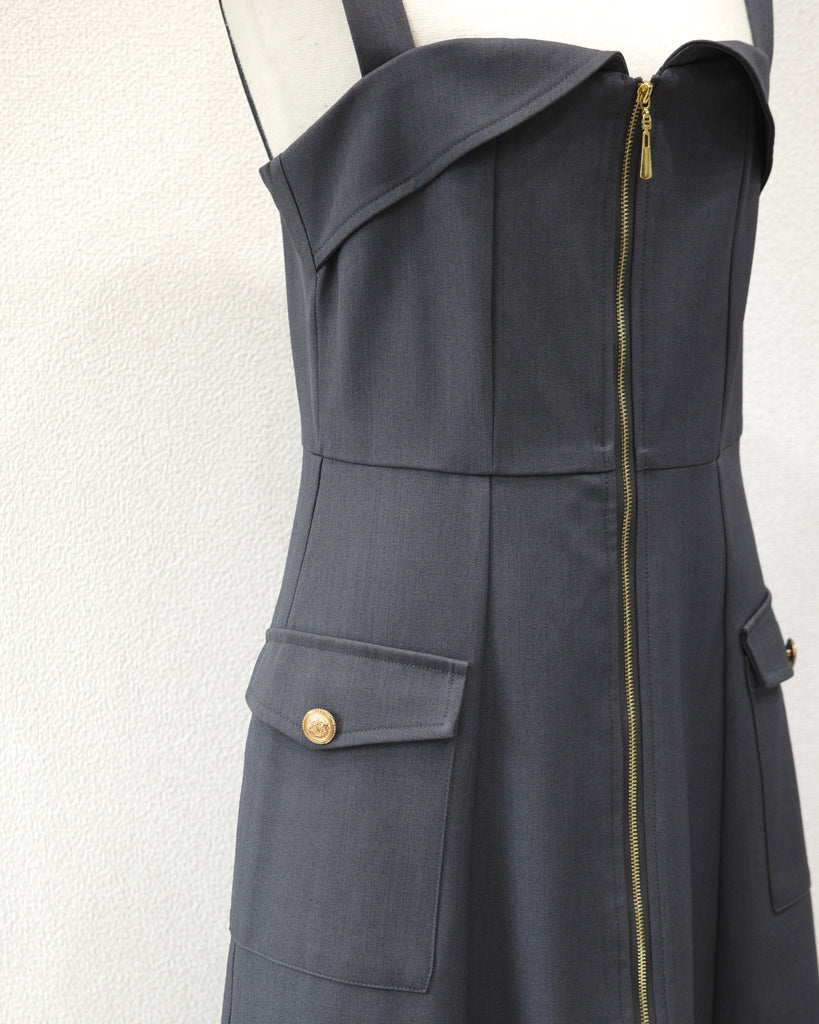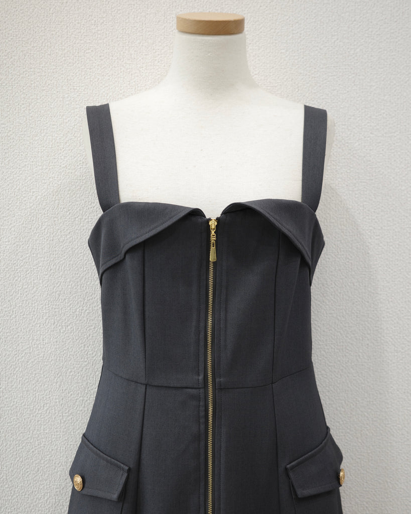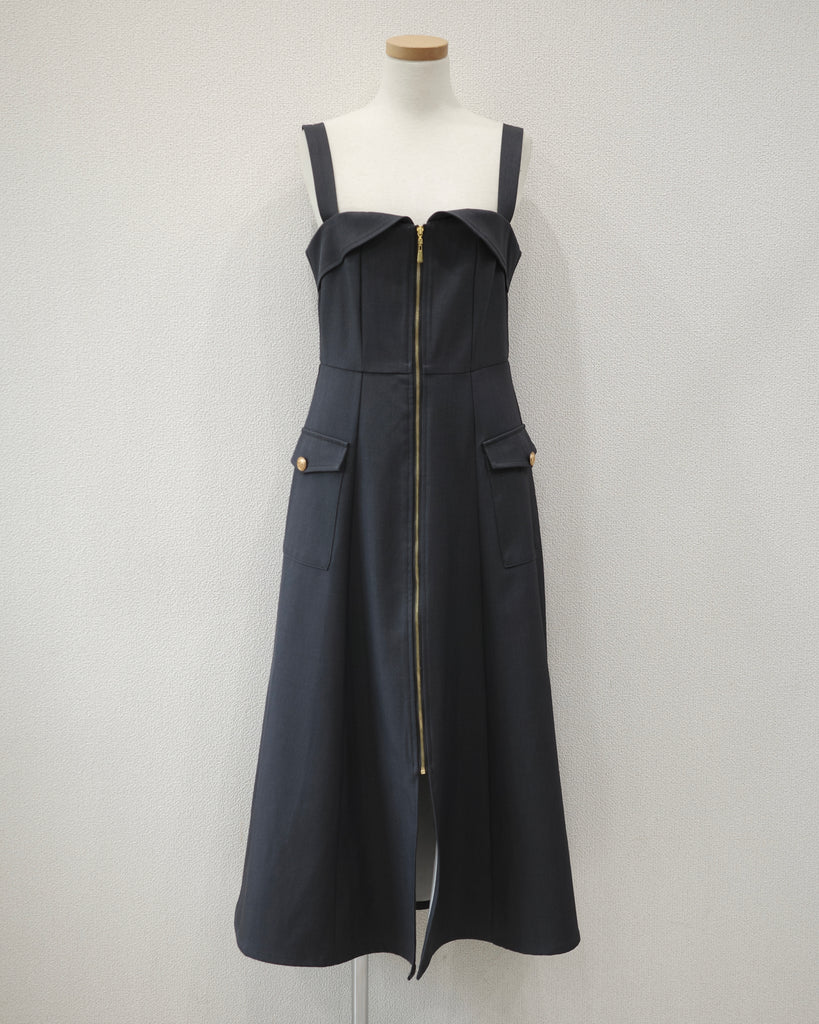 フロントのファスナーが目を引くキャミワンピース。