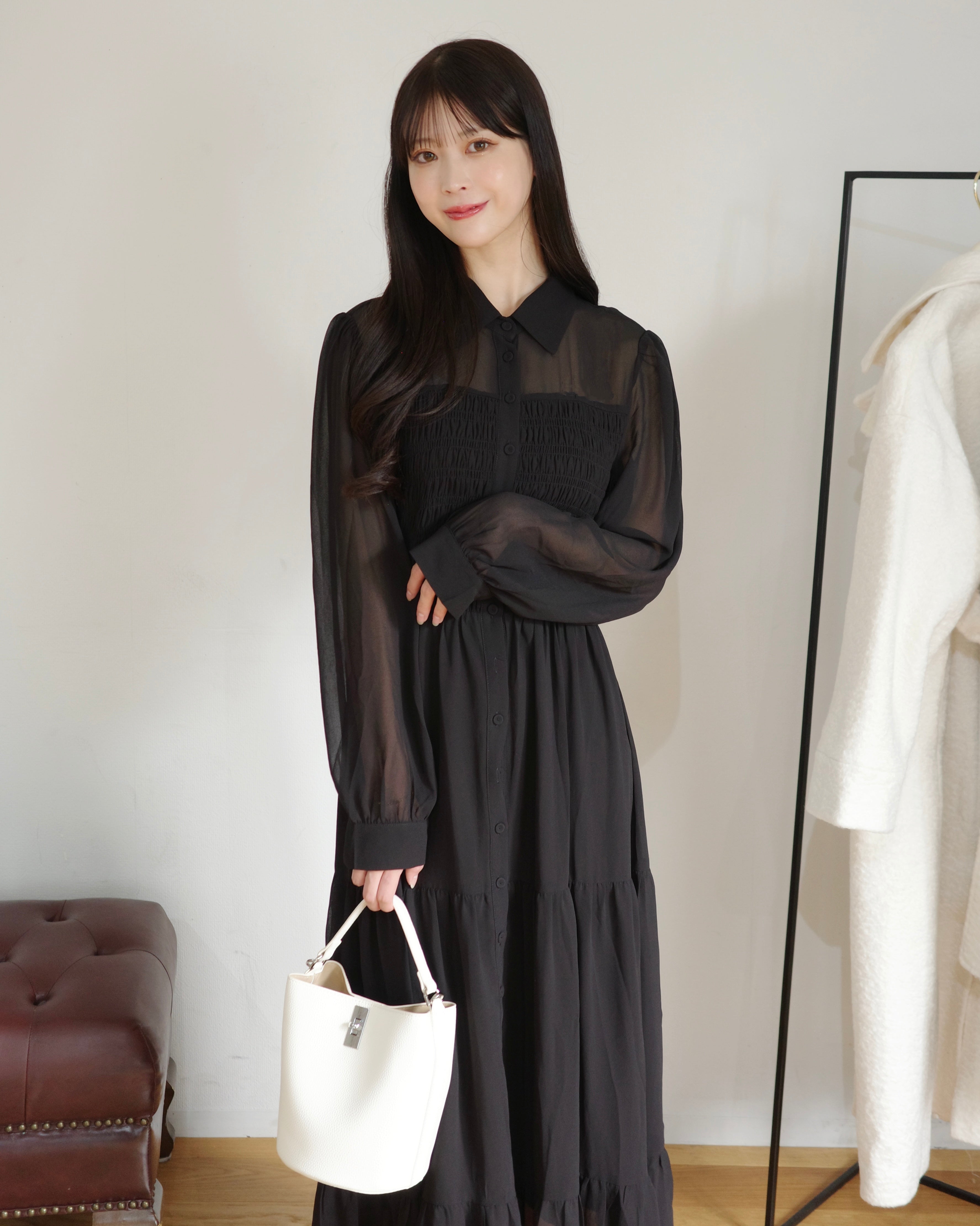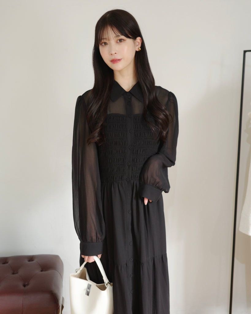 ティアードシルエットですが、胸元はたっぷりとギャザーを寄せたデザインで
