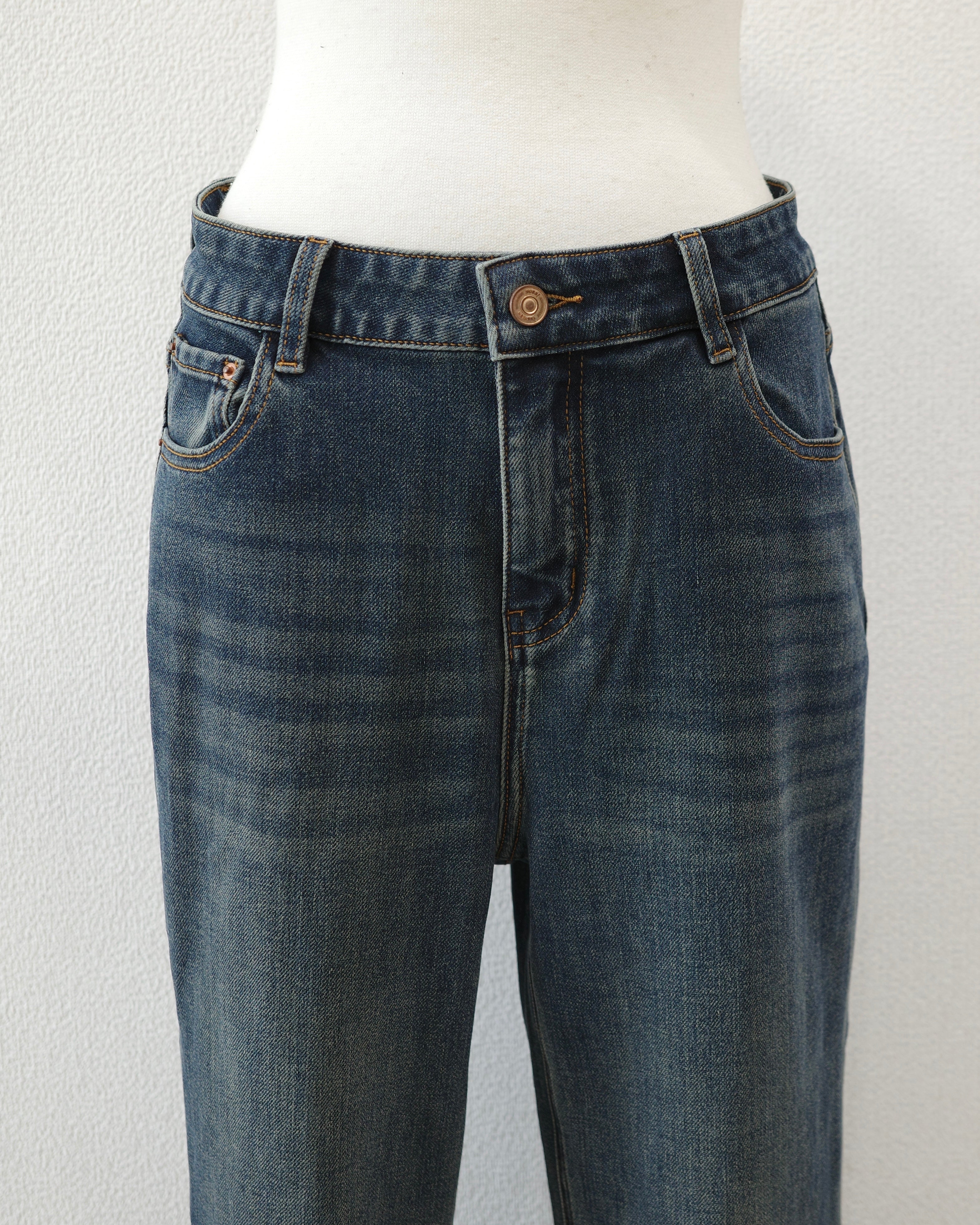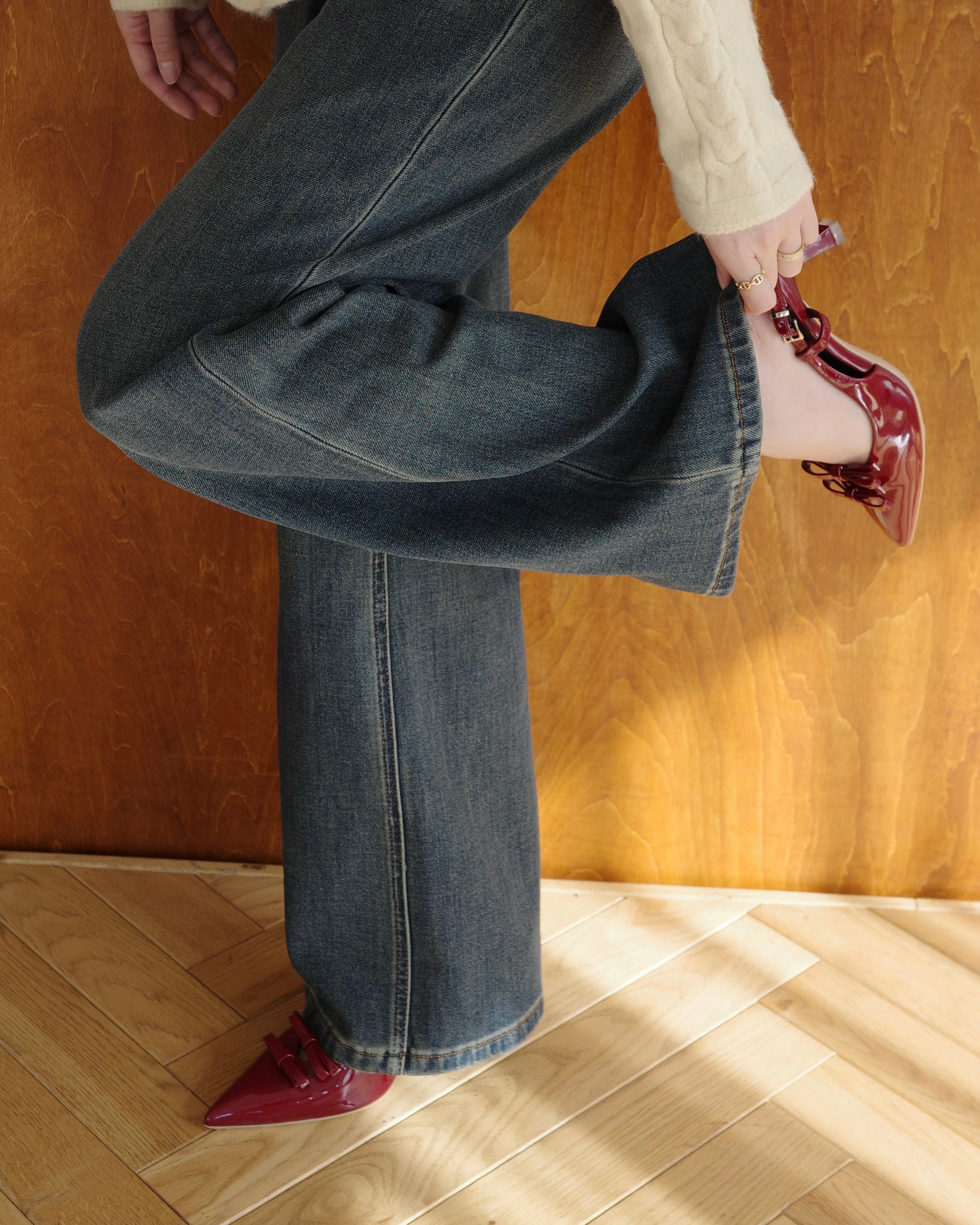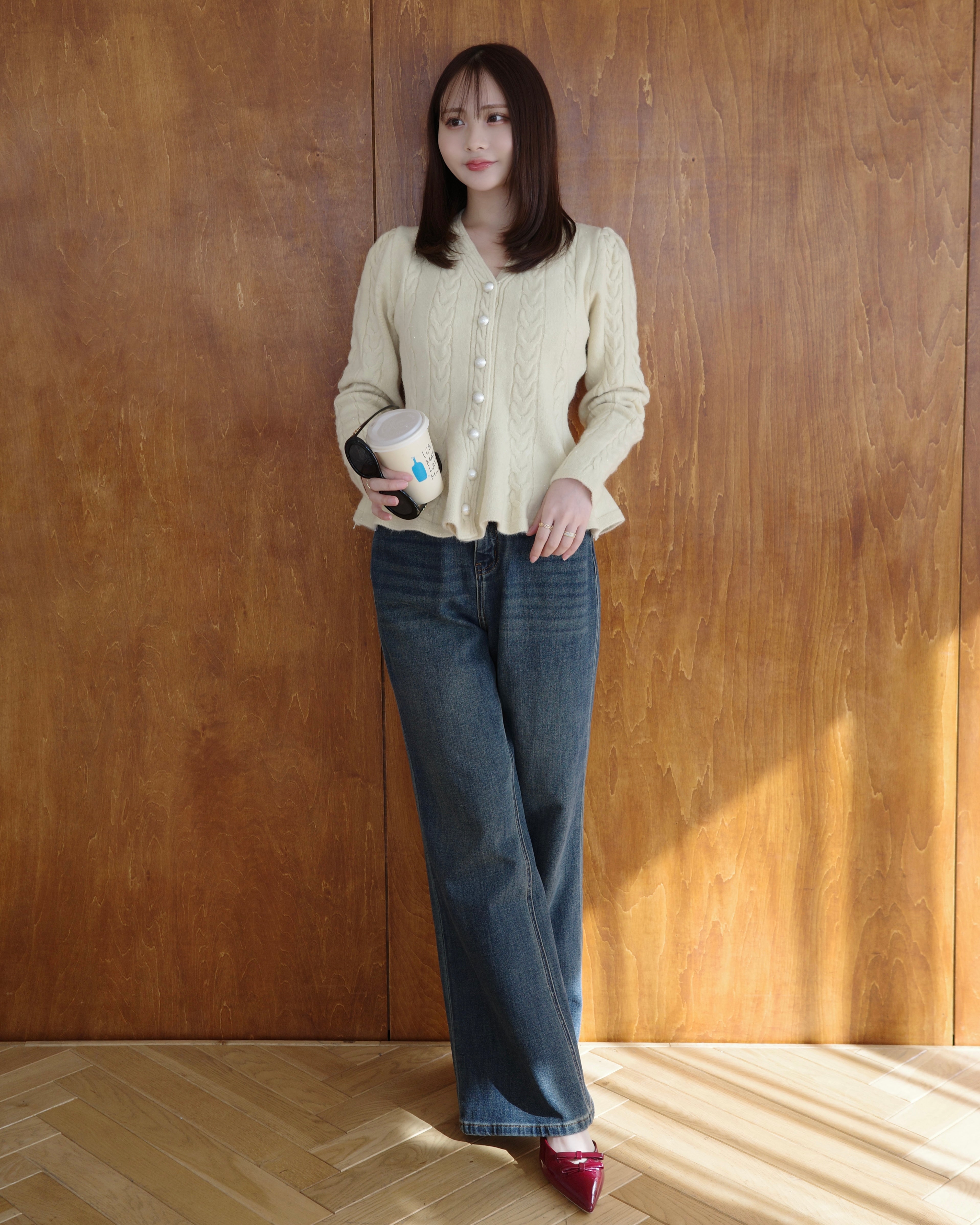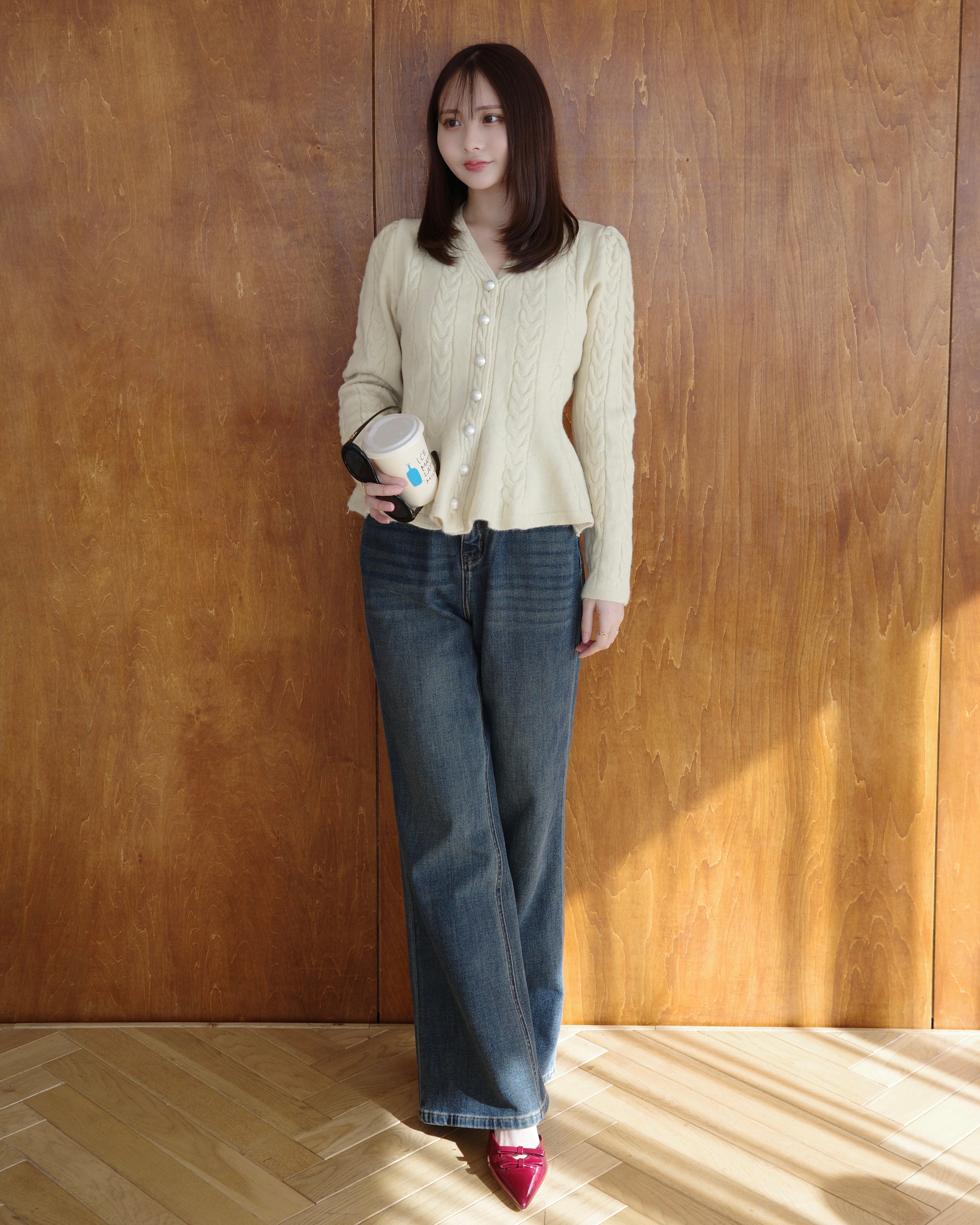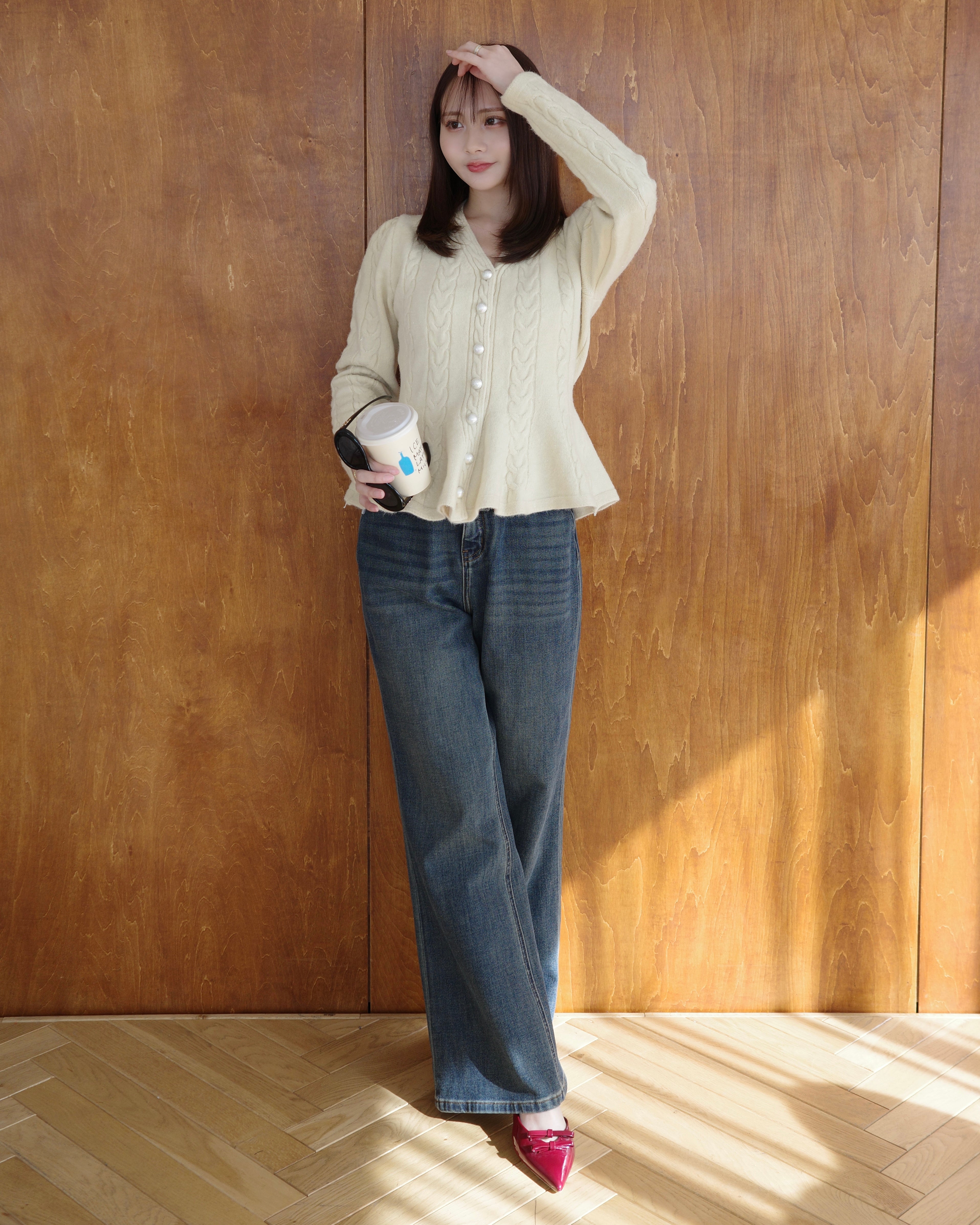 長めのレングスでアレンジを楽しめる、ワイドストレートデニム。