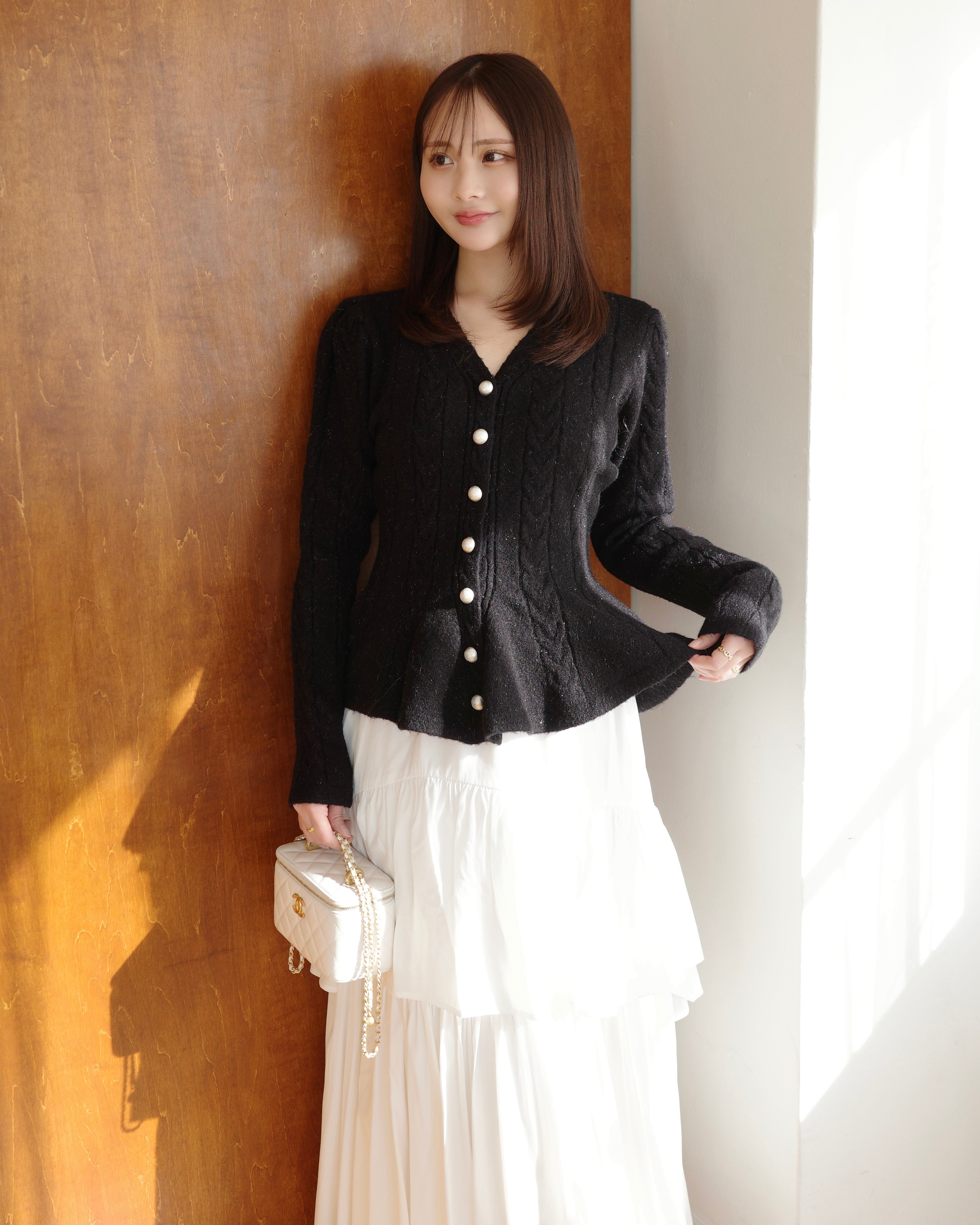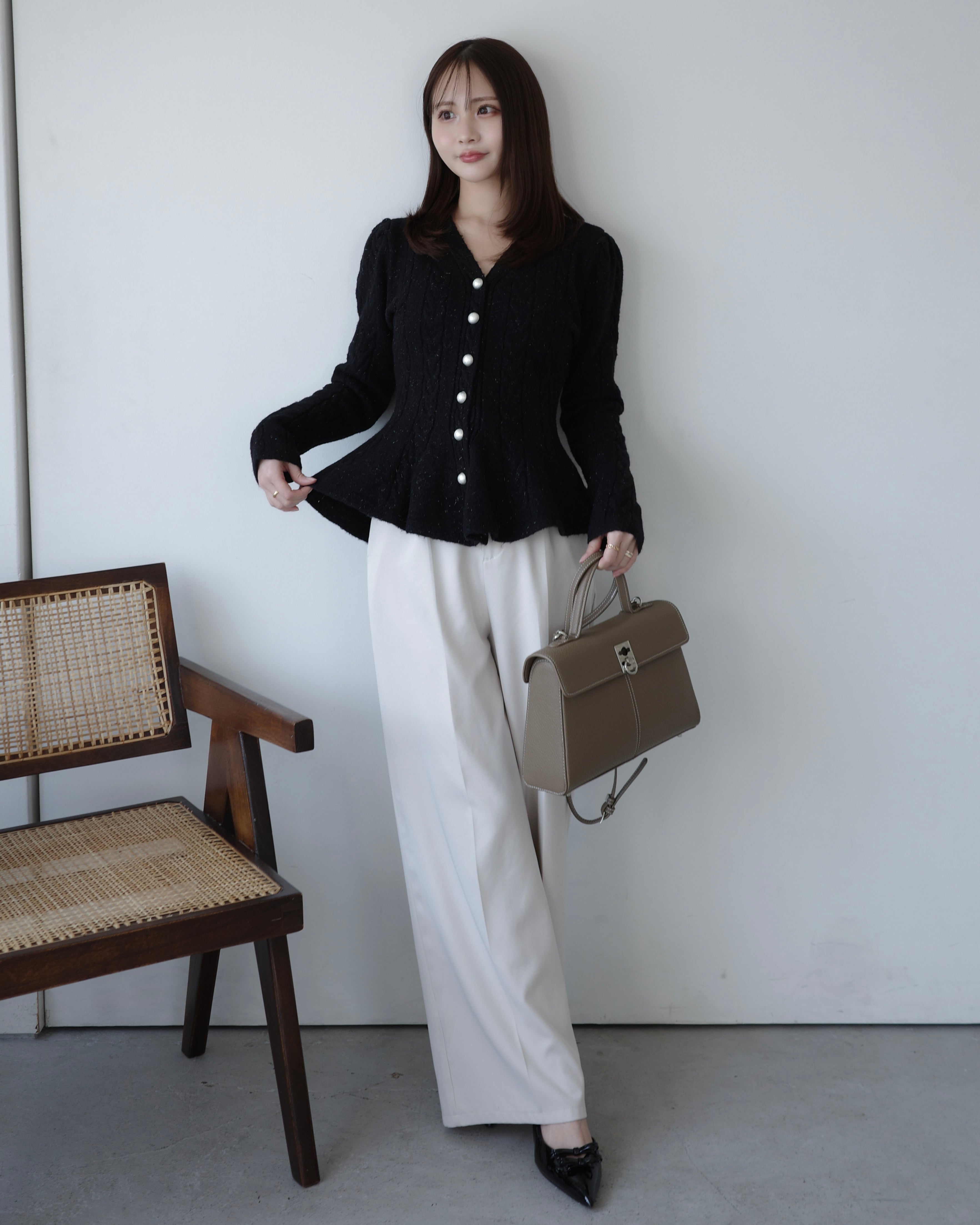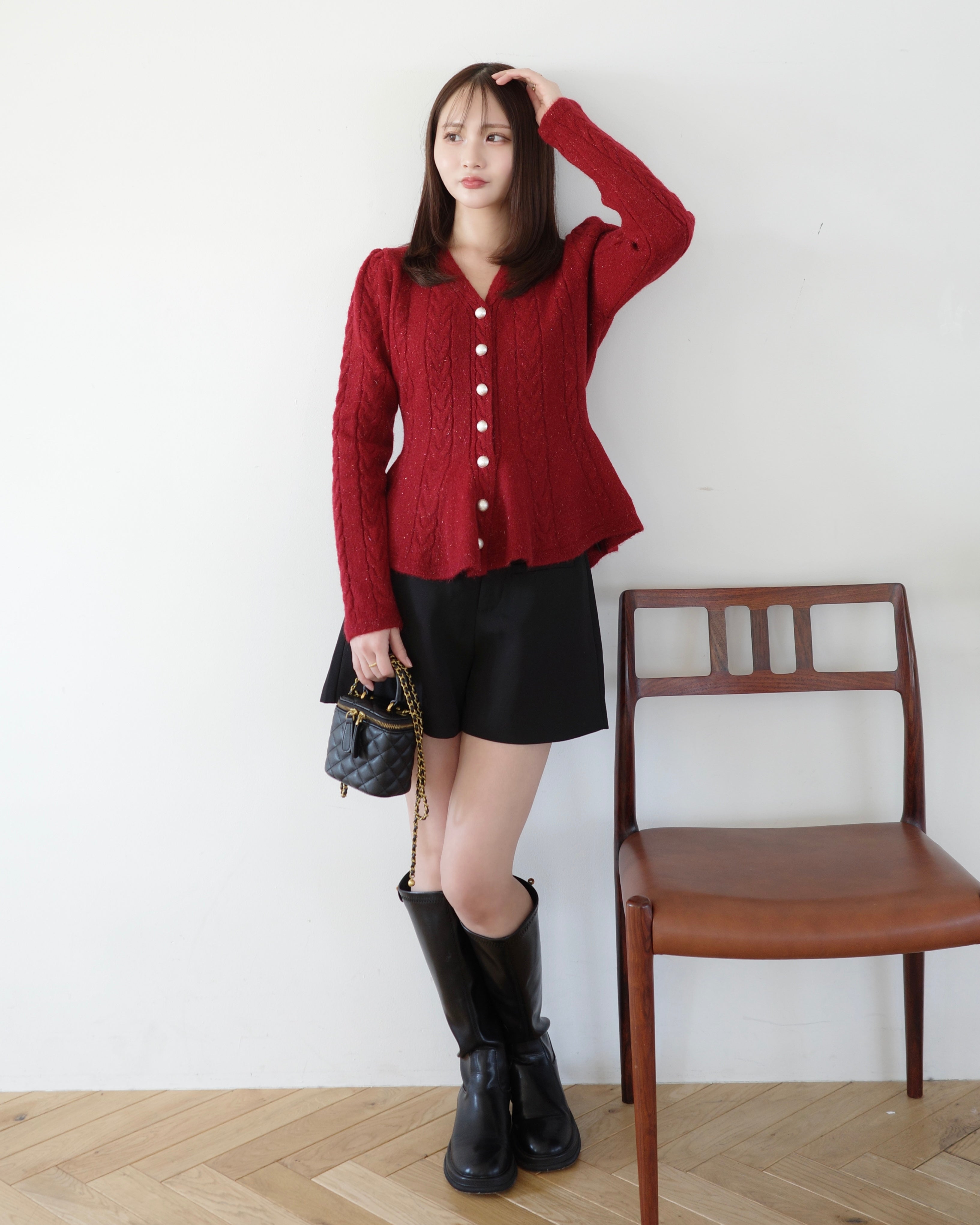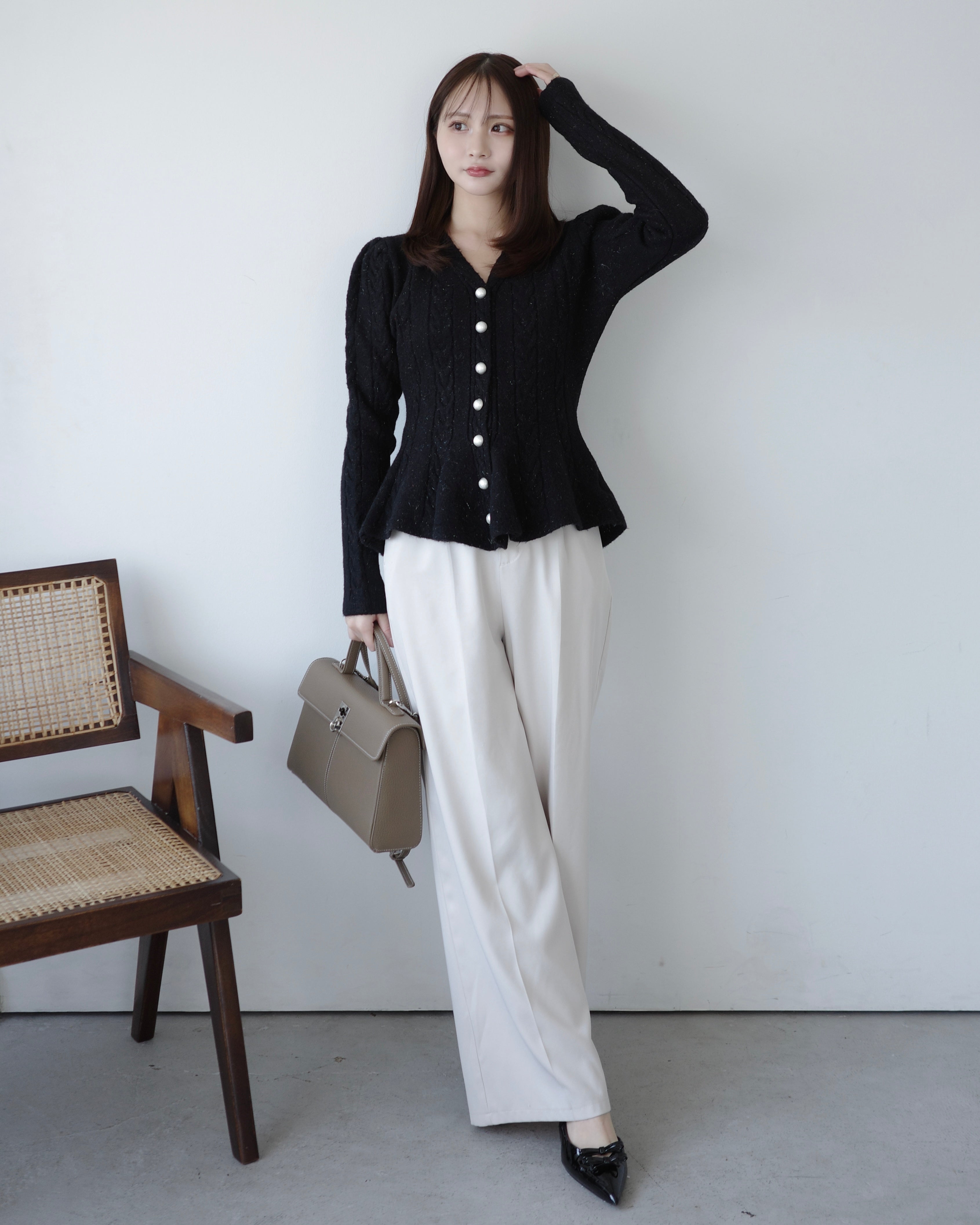 ほのかに煌めくラメを編み込んだ生地でフェミニンなポイントをプラスします。