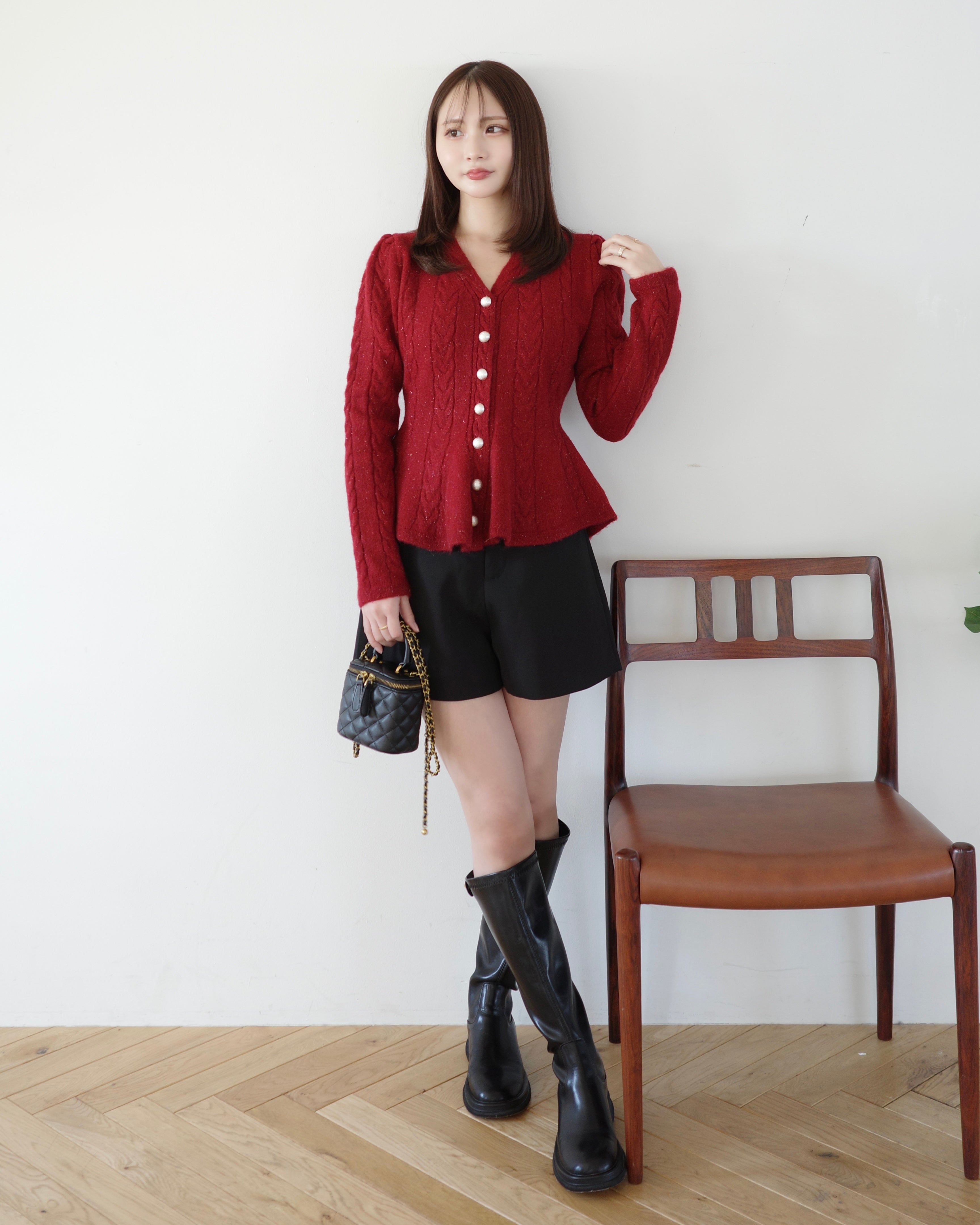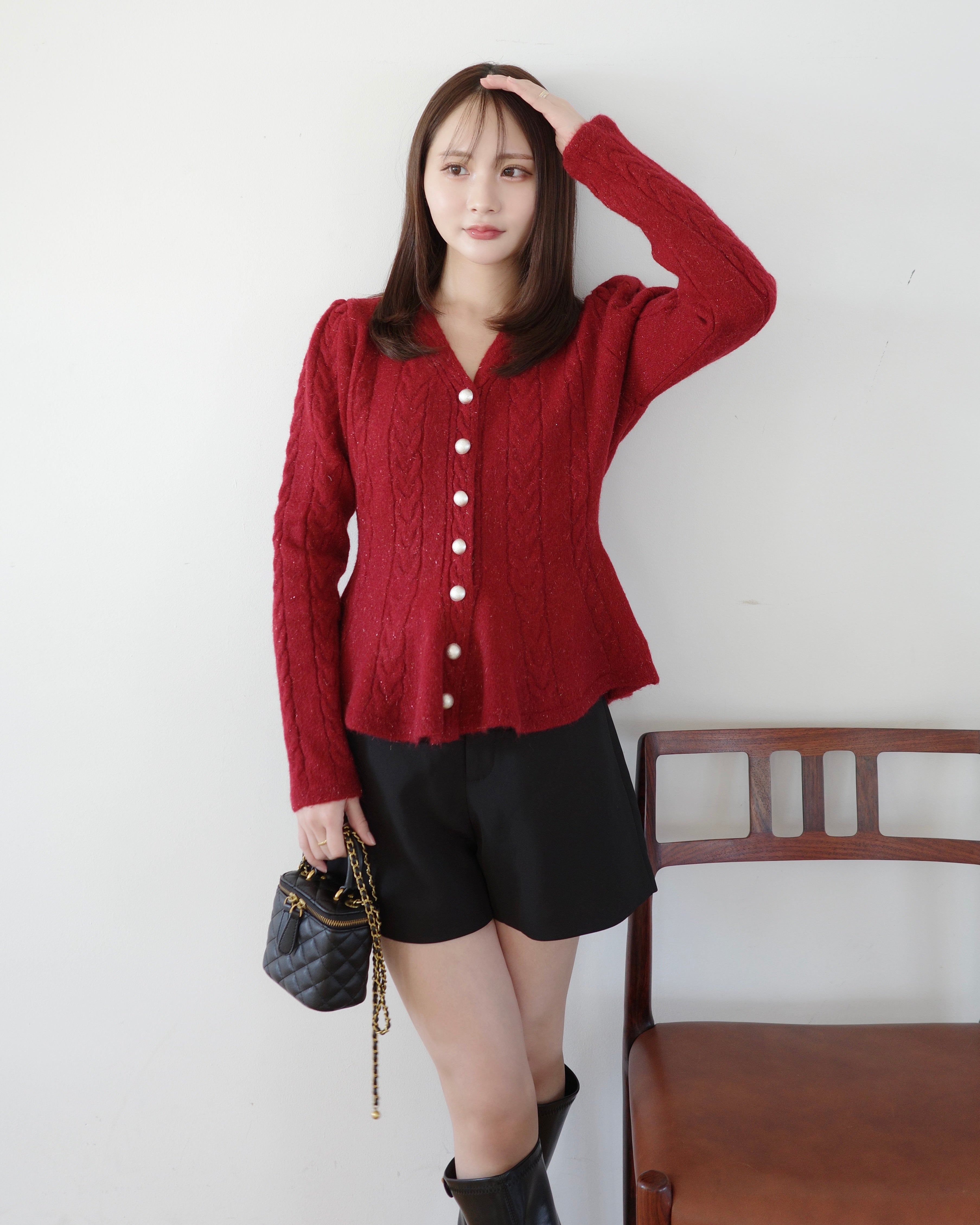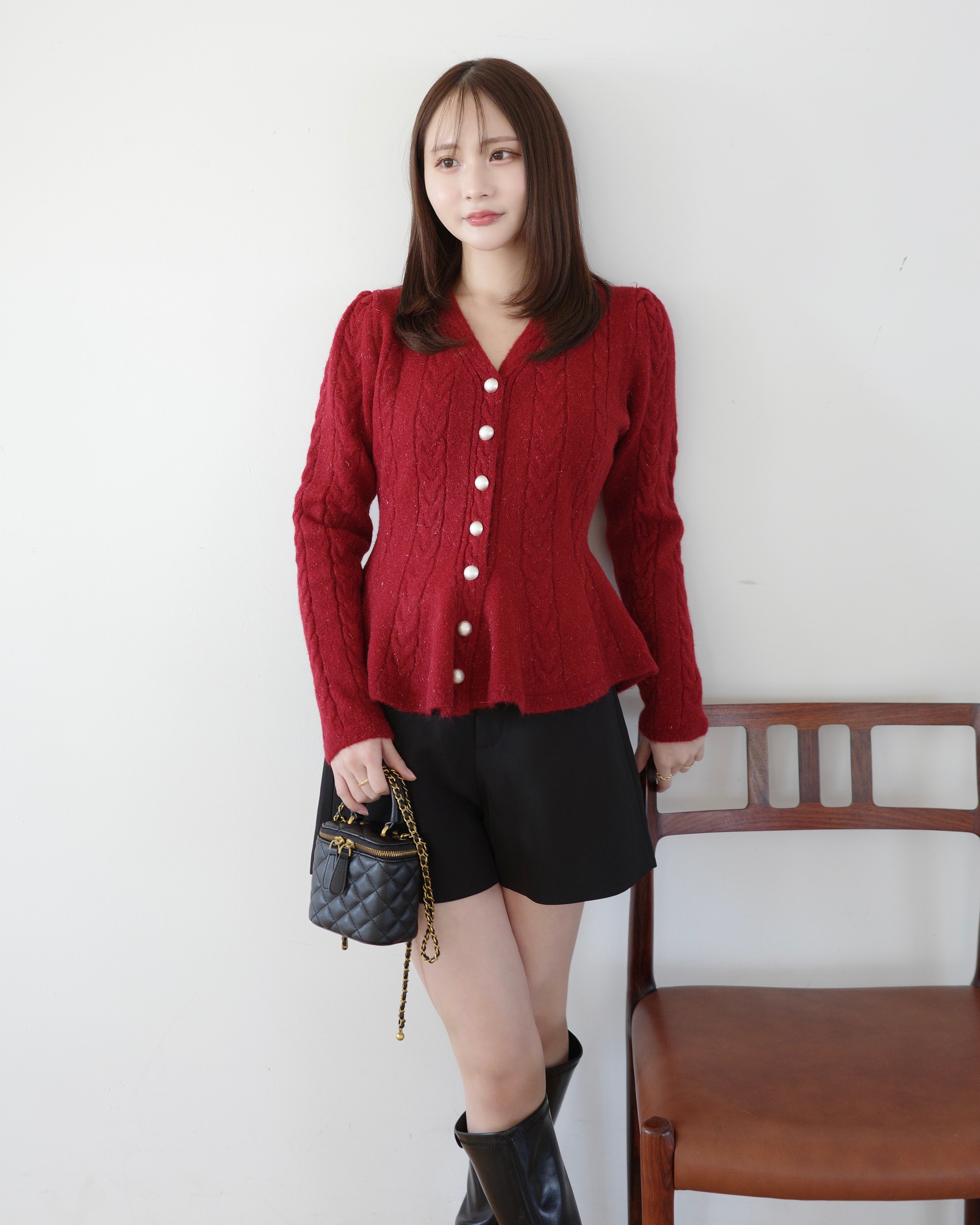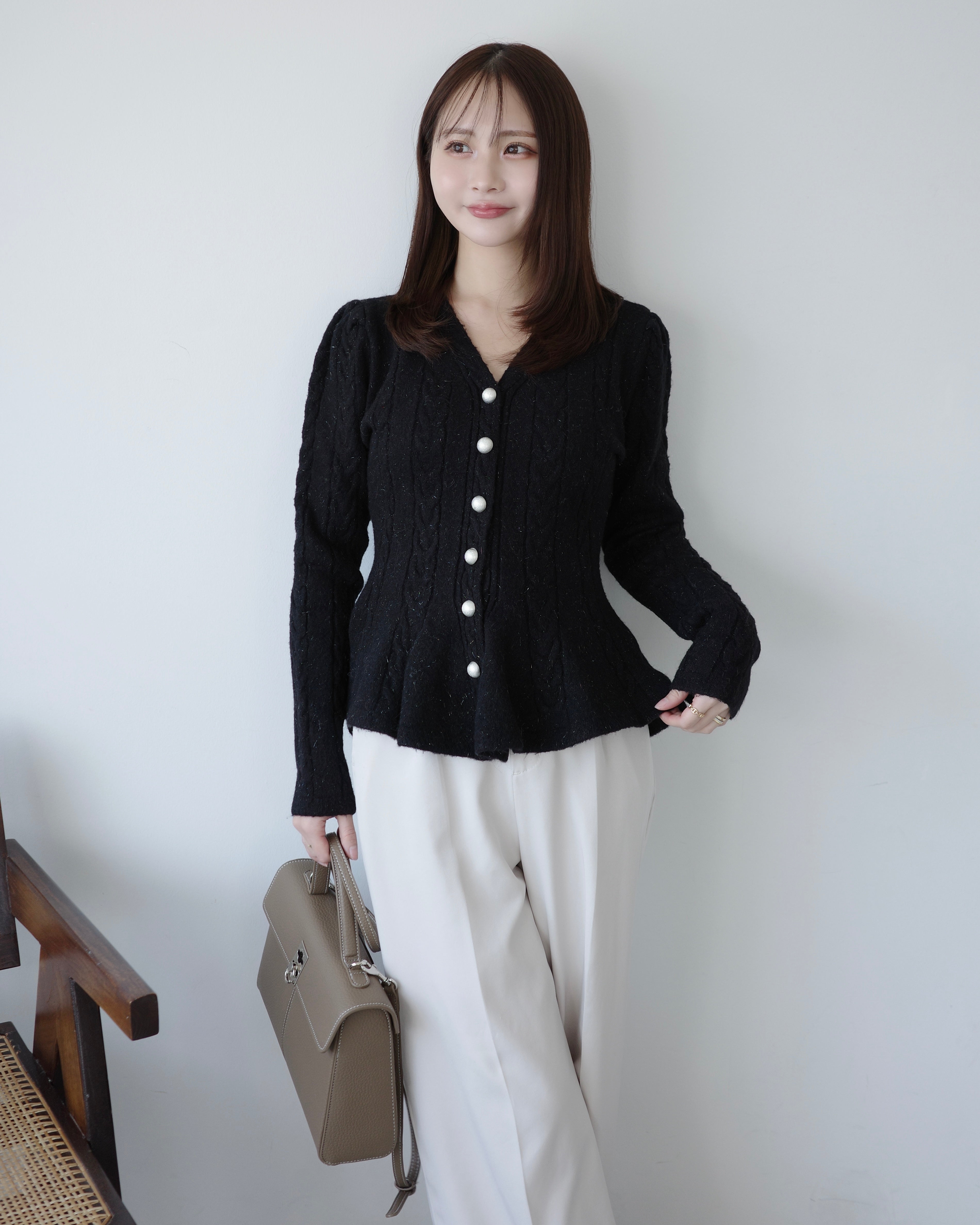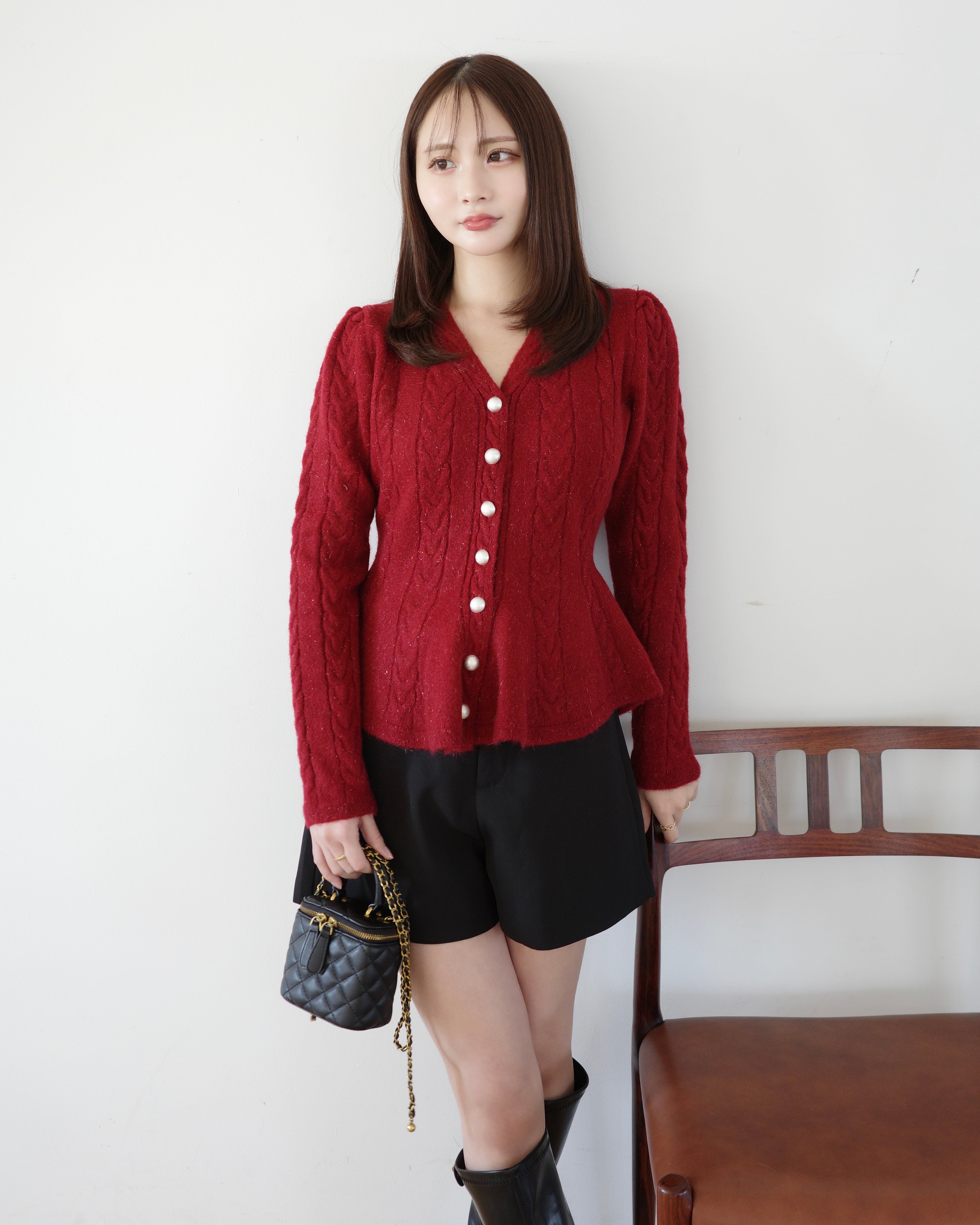 着るだけでくびれる、美シルエットがポイントのカーディガン。