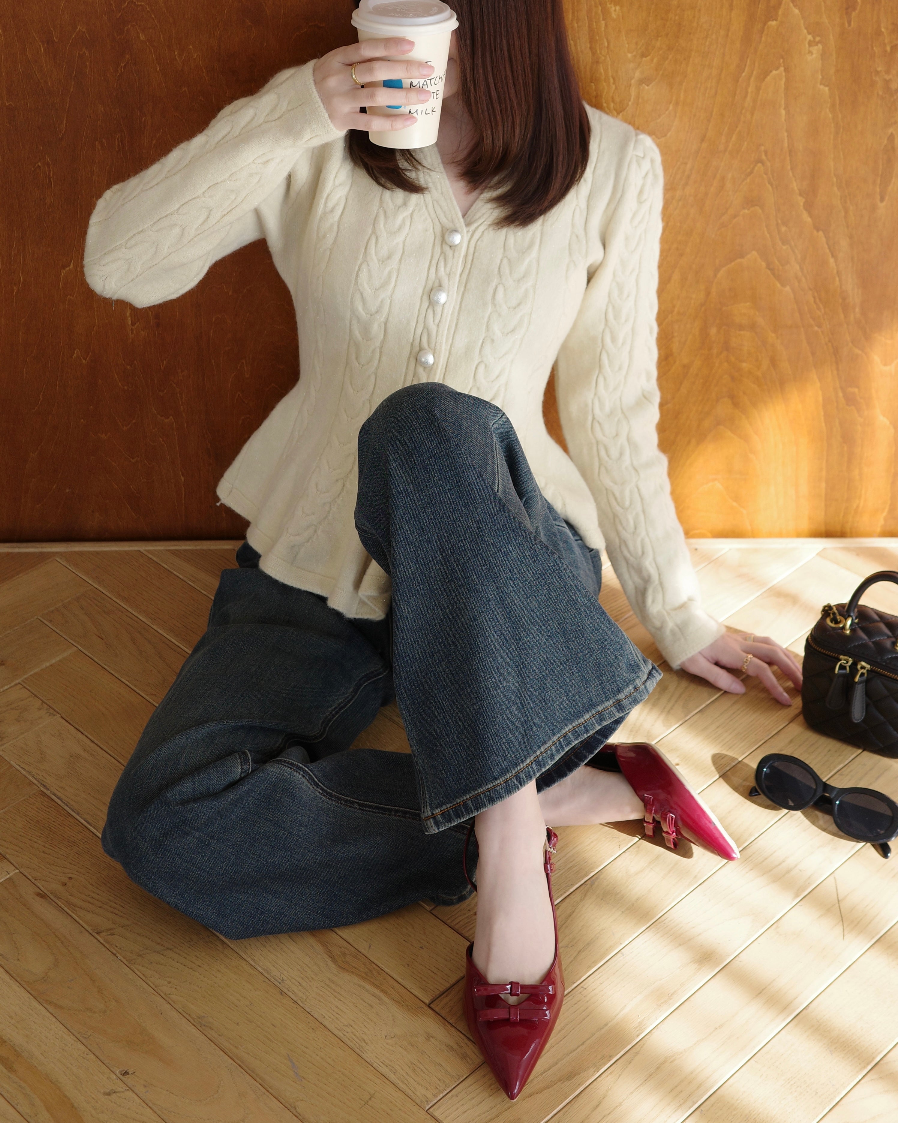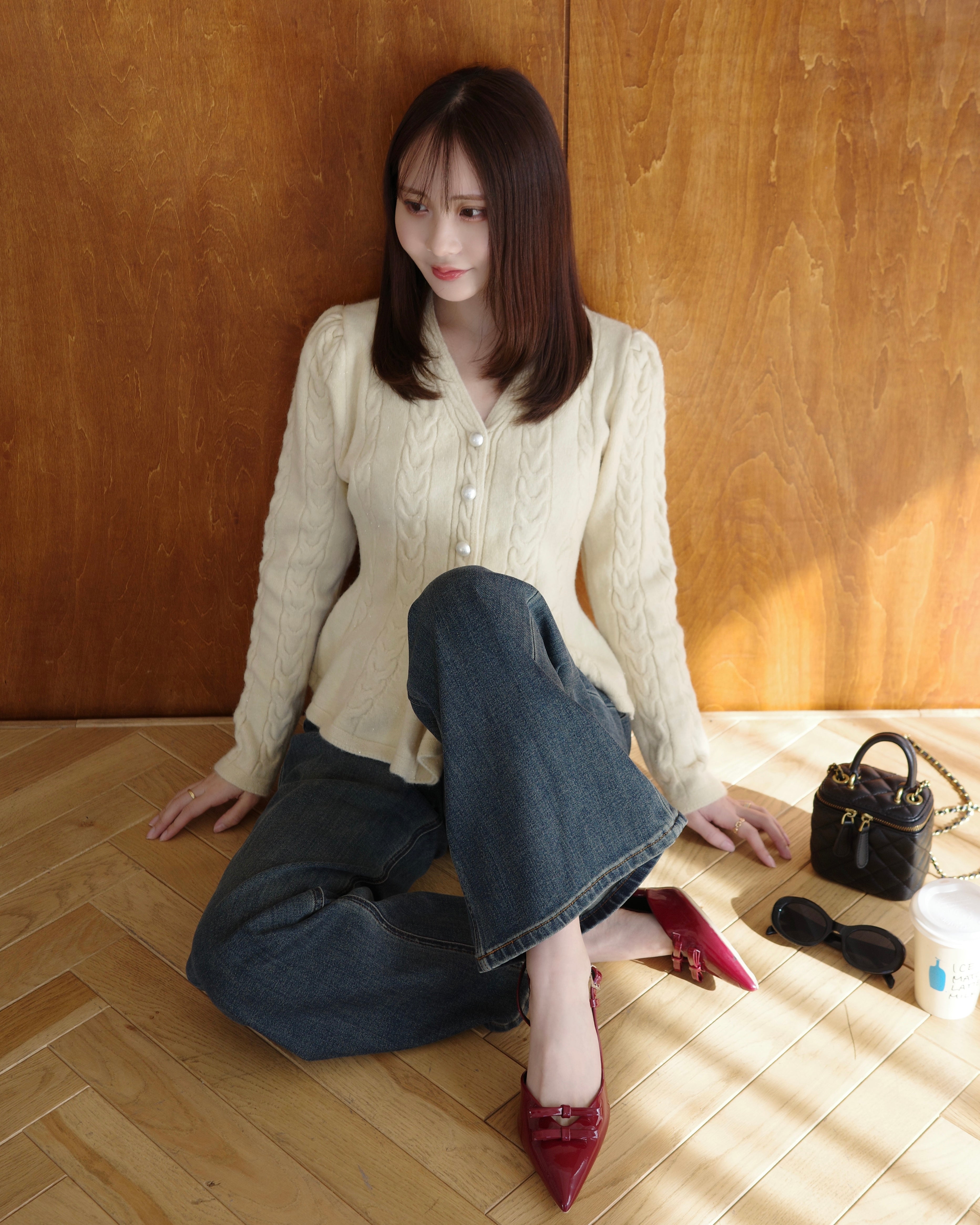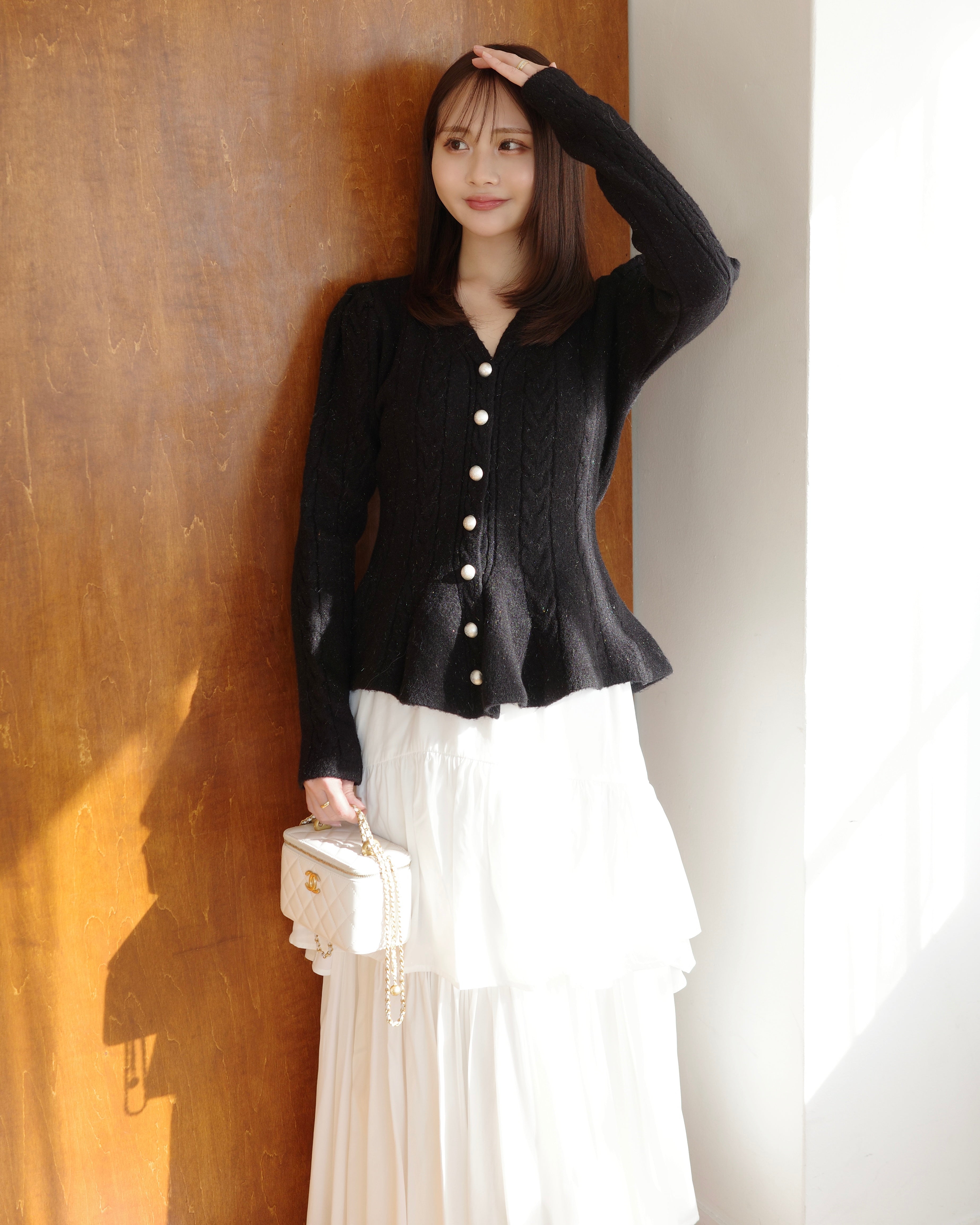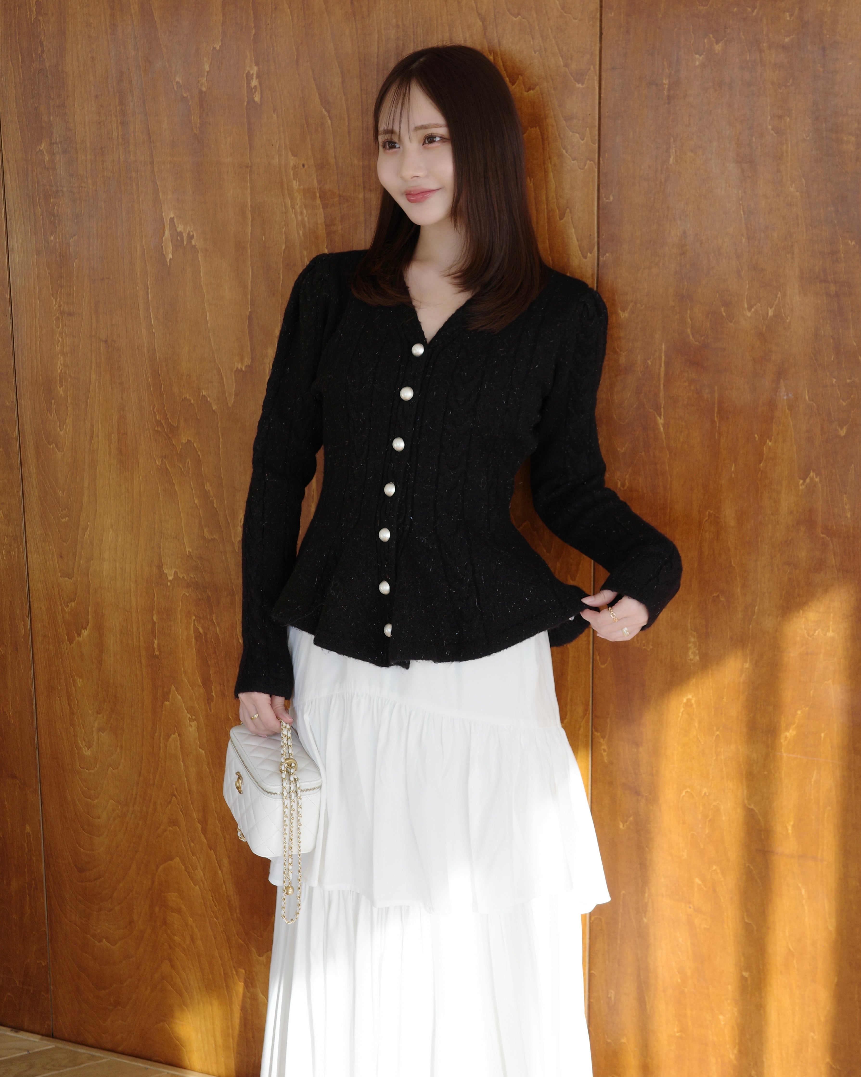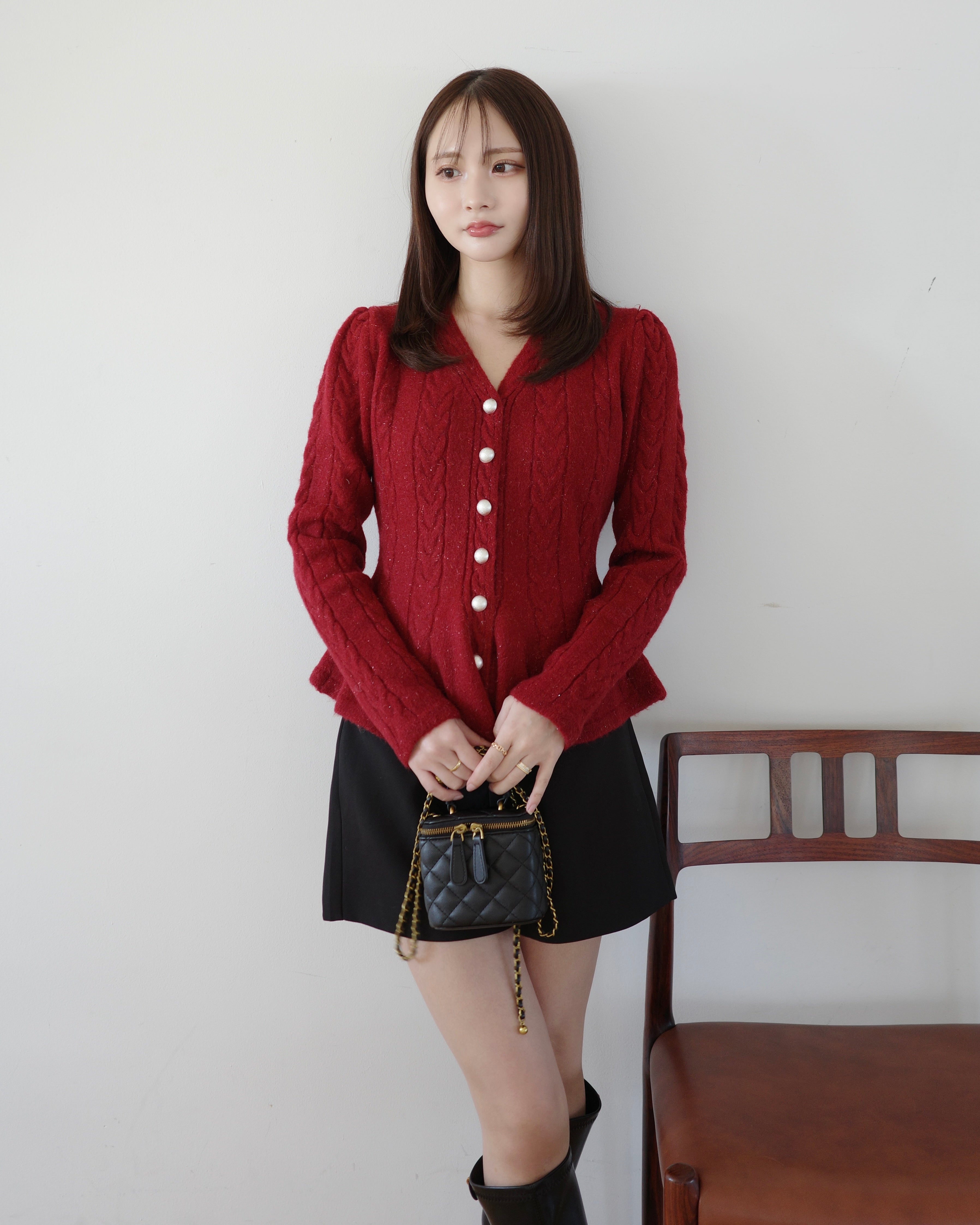 着るだけでくびれる、美シルエットがポイントのカーディガン。