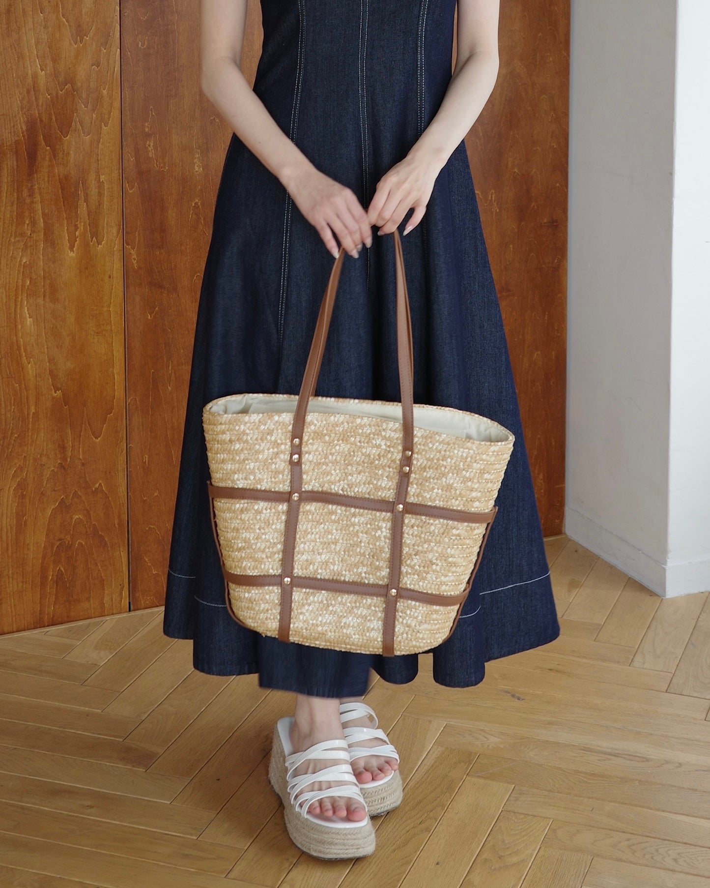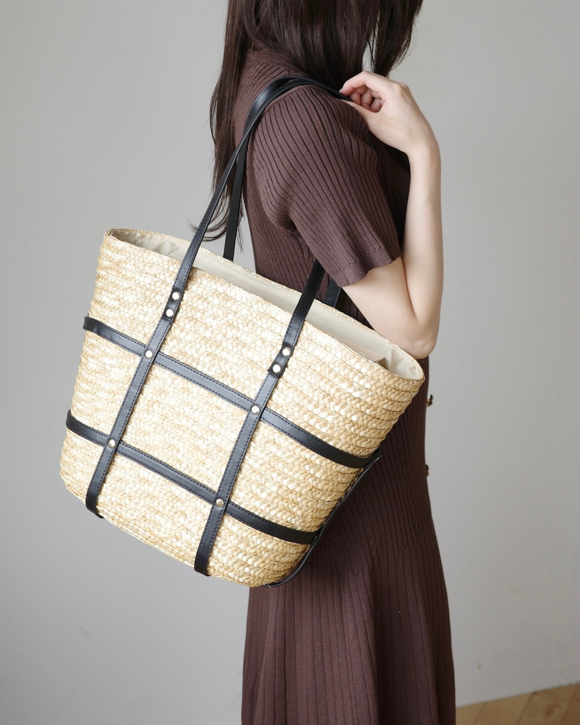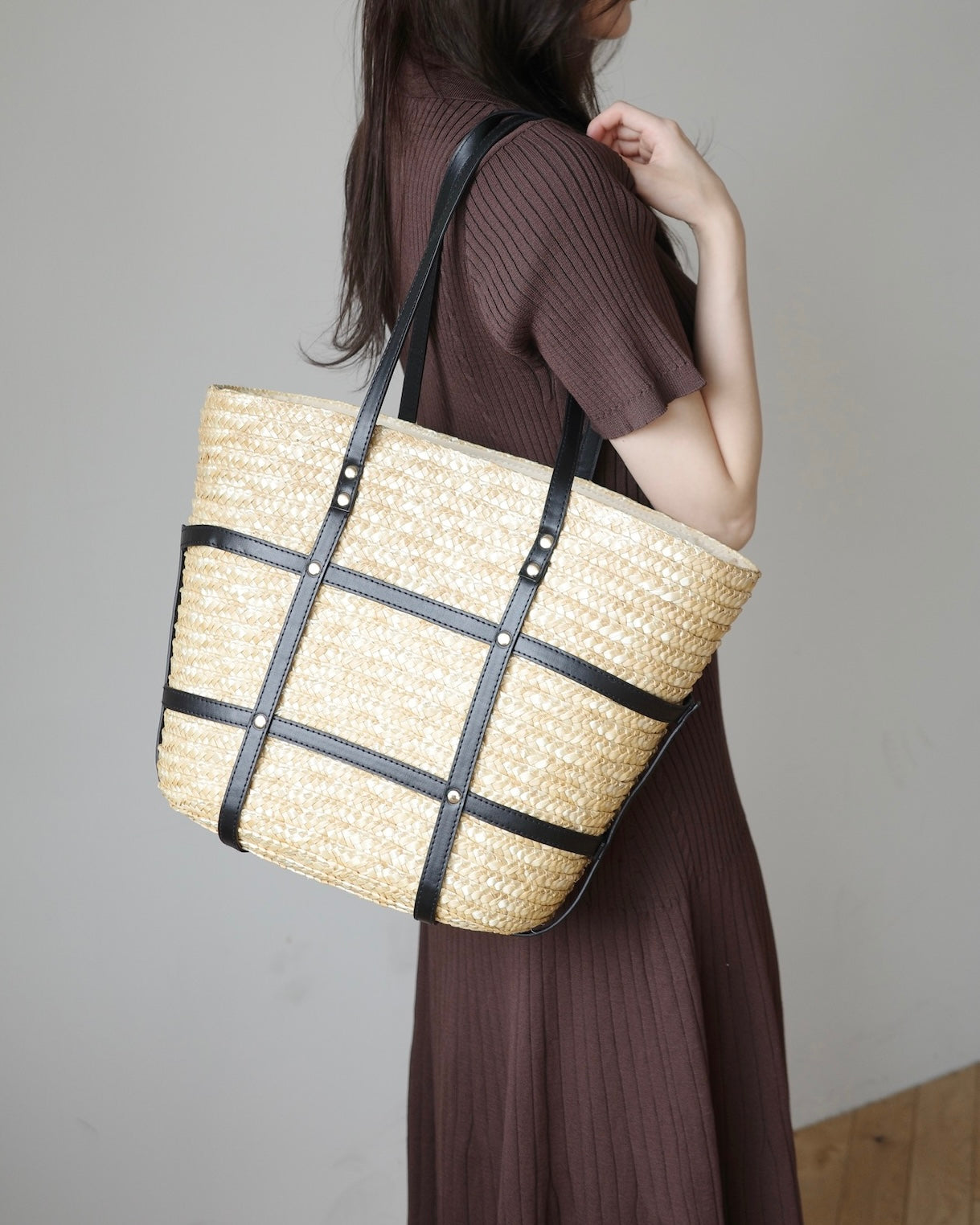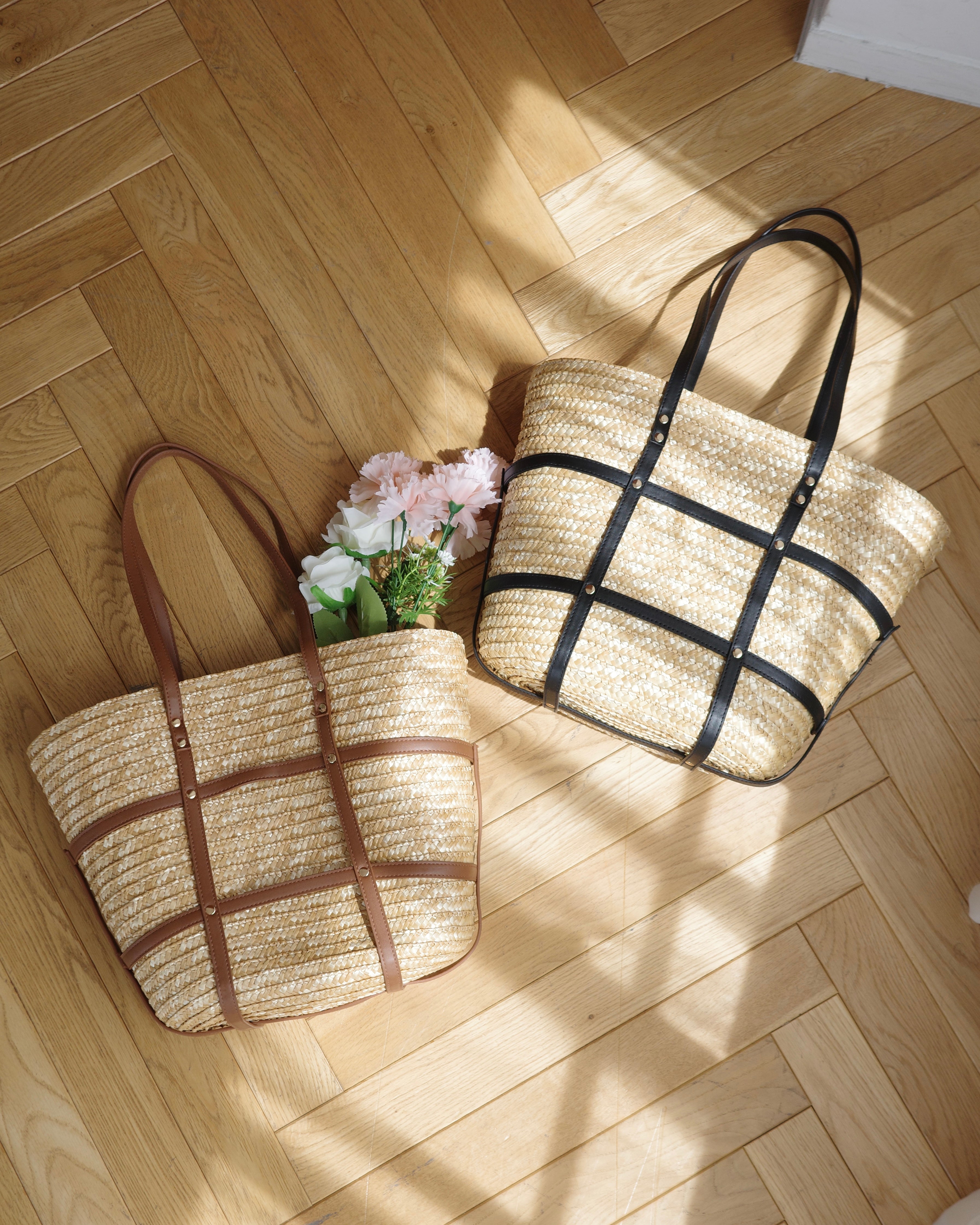✔︎ ナチュラルなストロー素材×レザーデザイン
