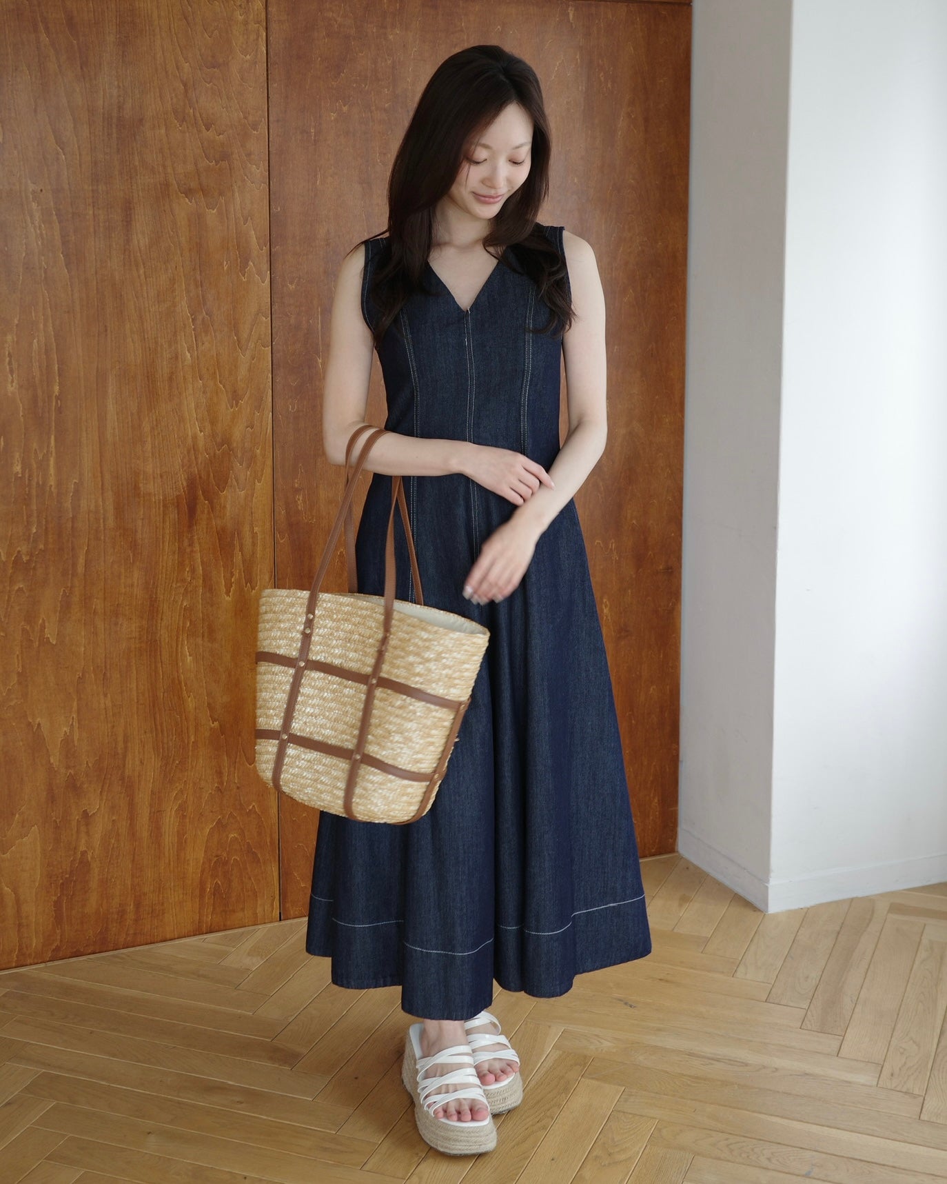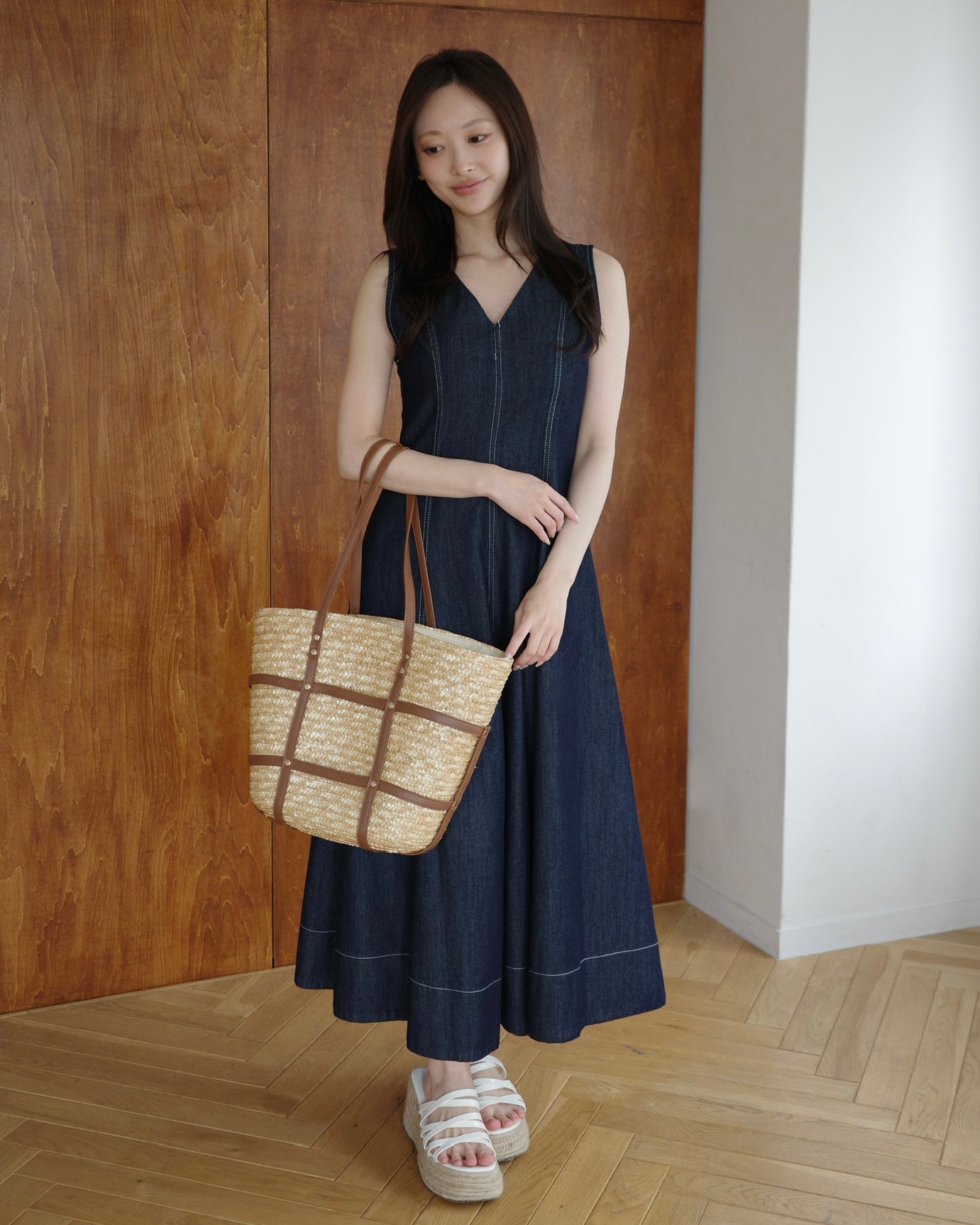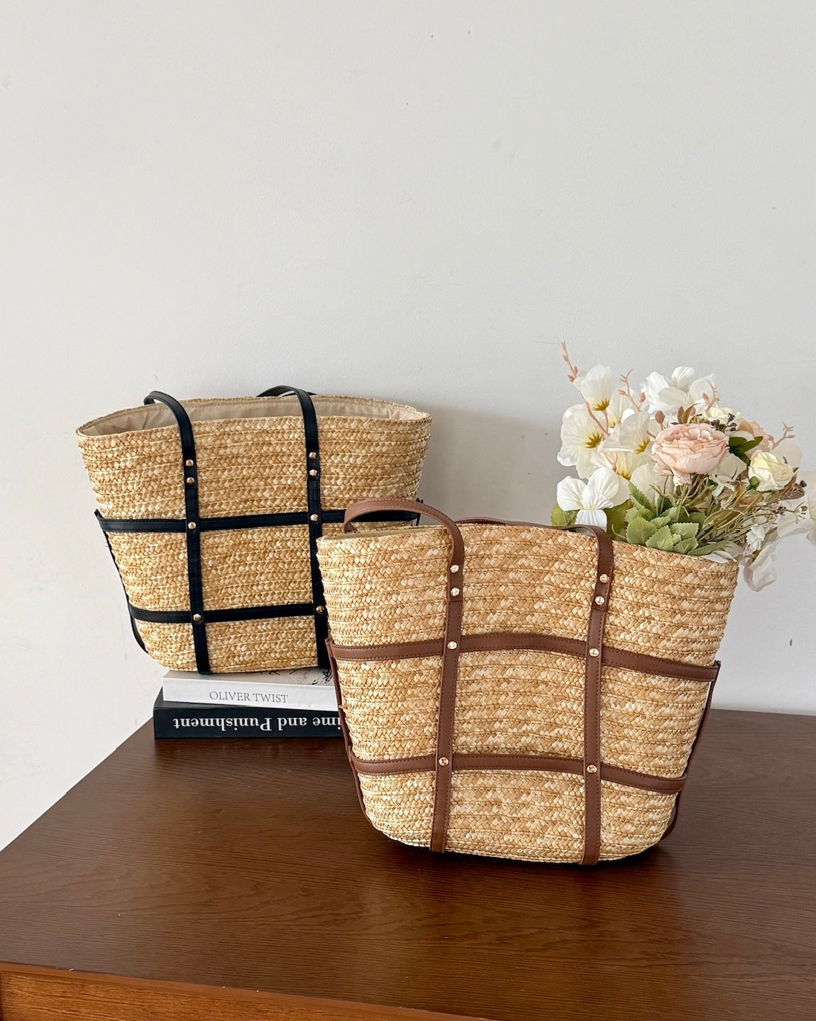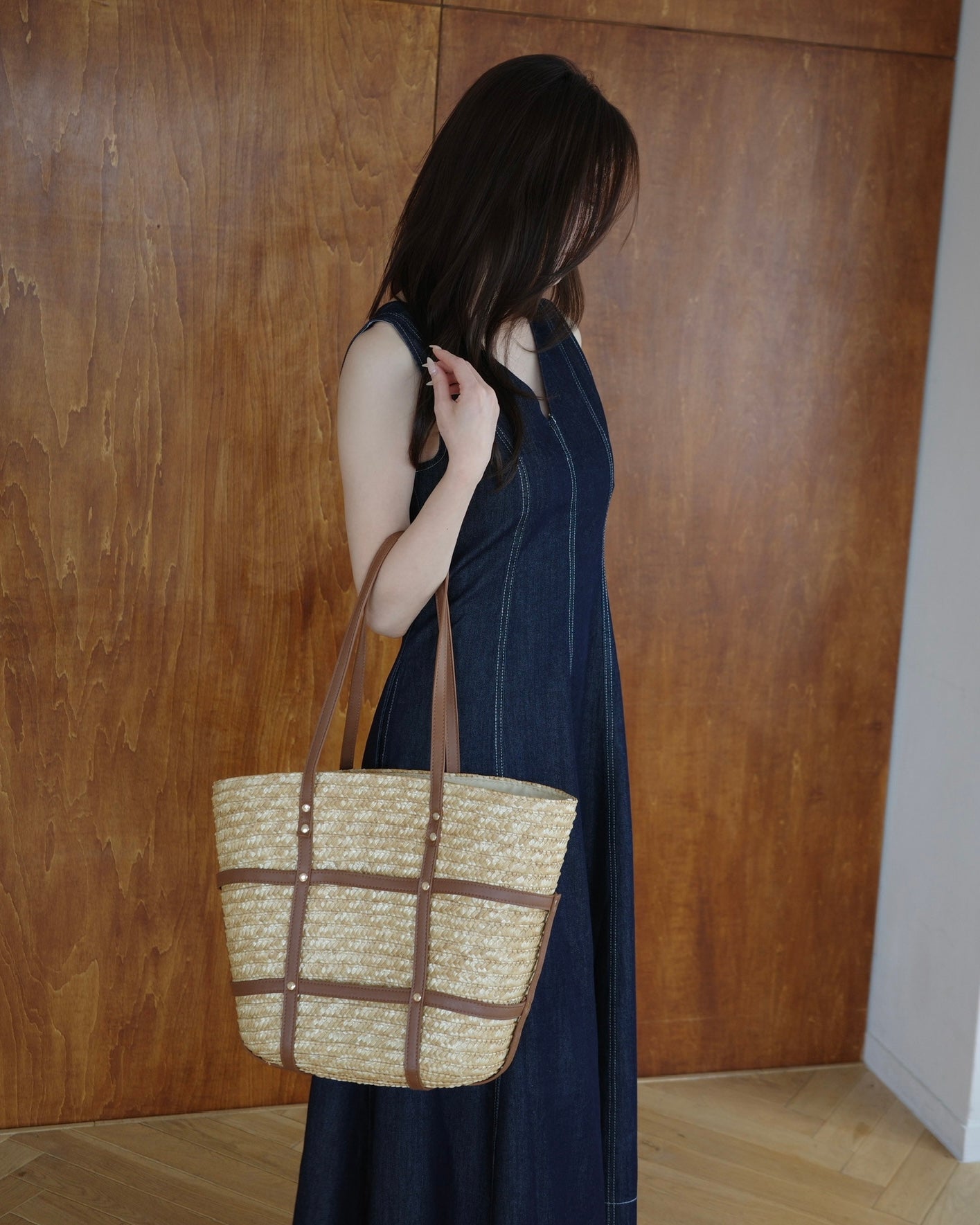 ✔︎ ナチュラルなストロー素材×レザーデザイン
