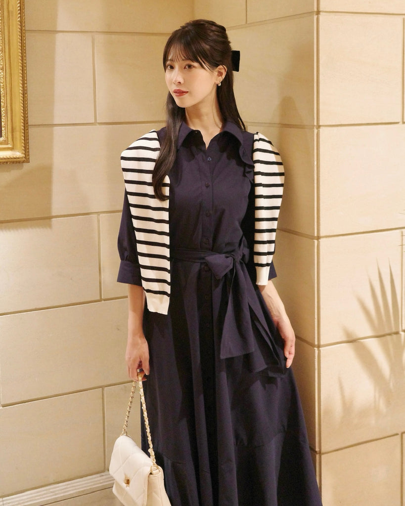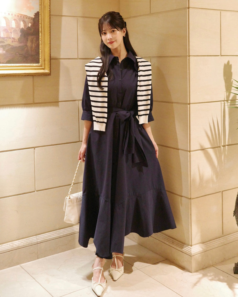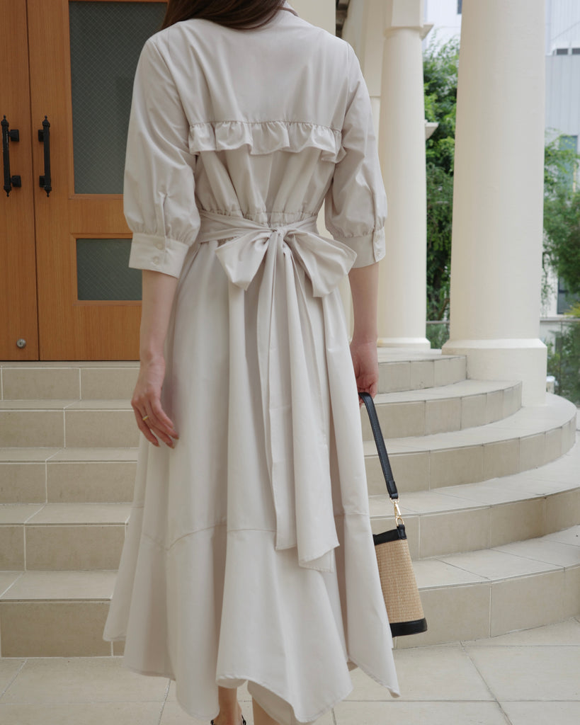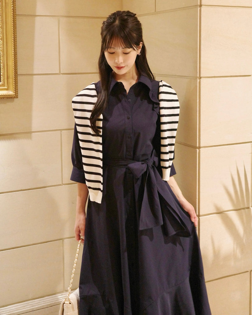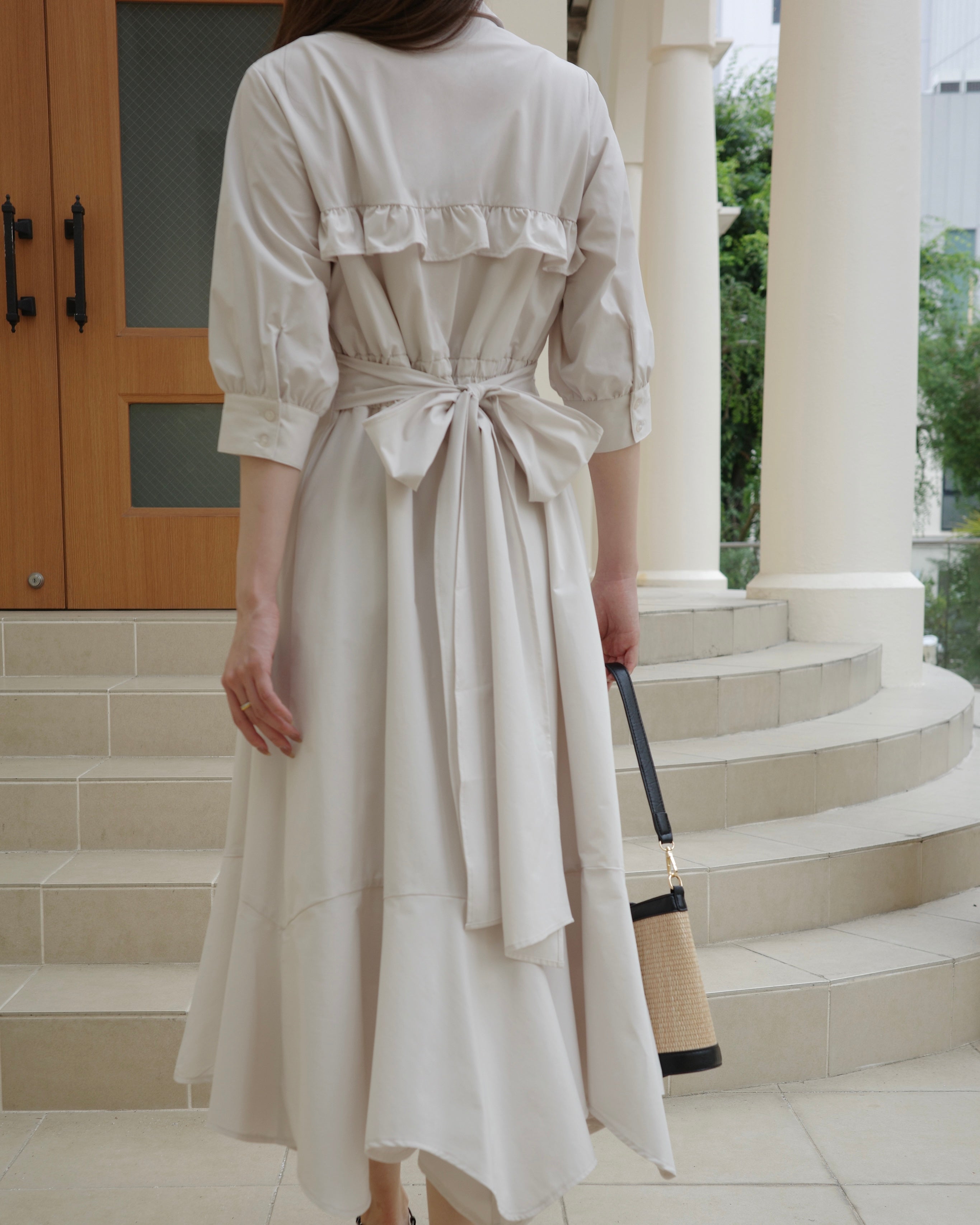 【セット割+¥2,000でトップスGET】フリルリボンシャツワンピース