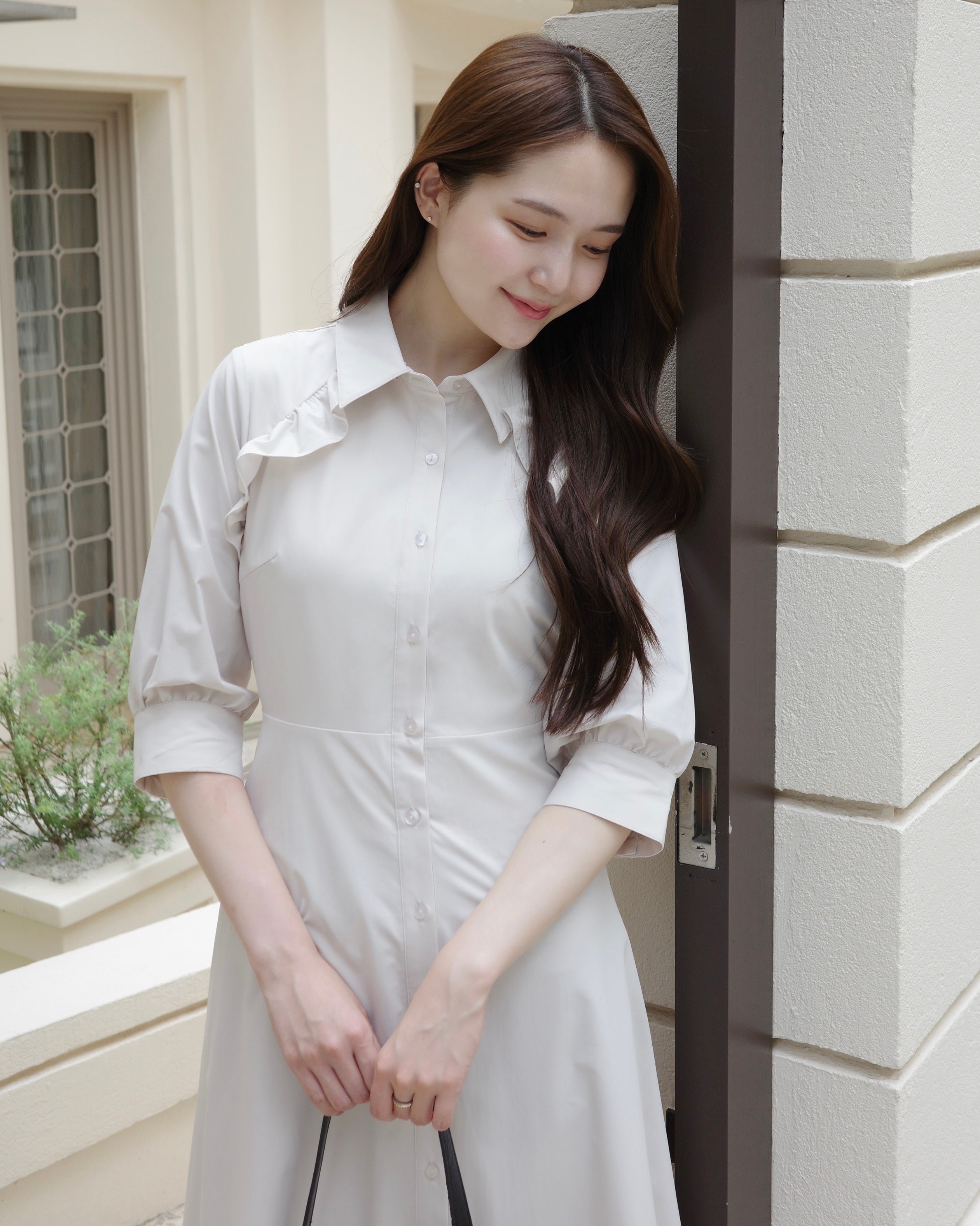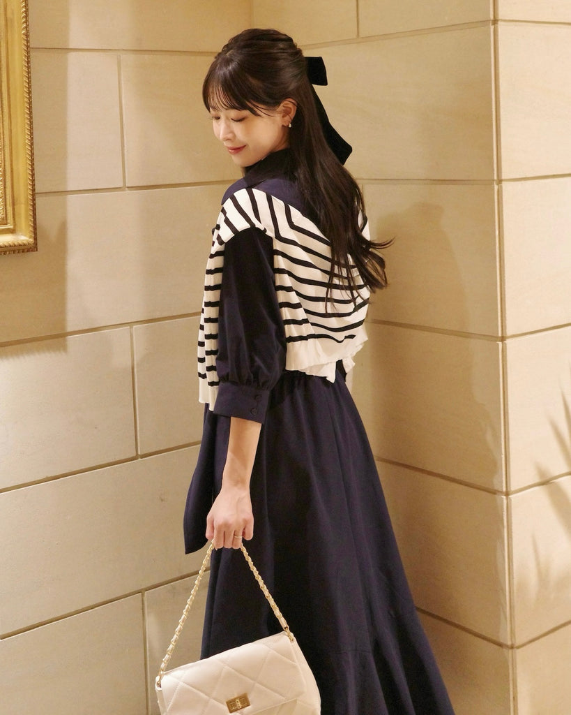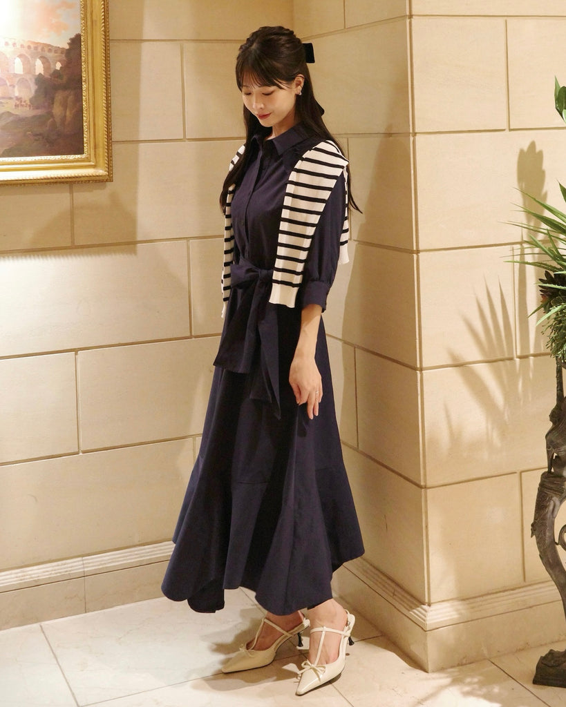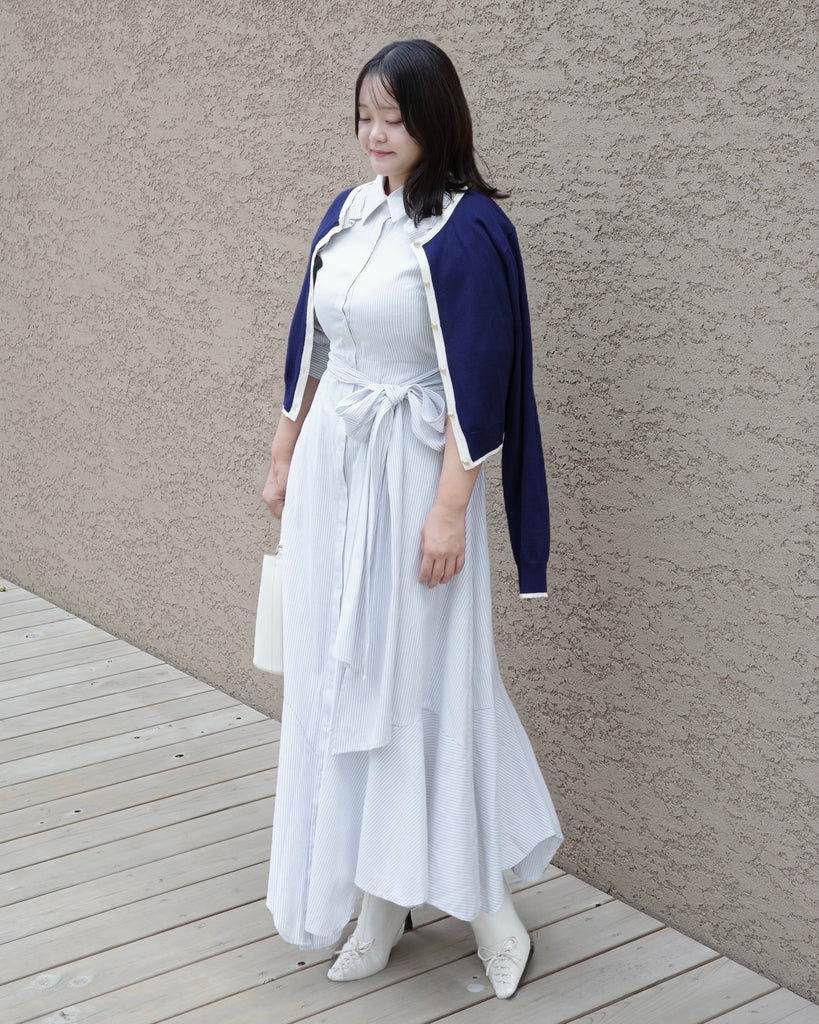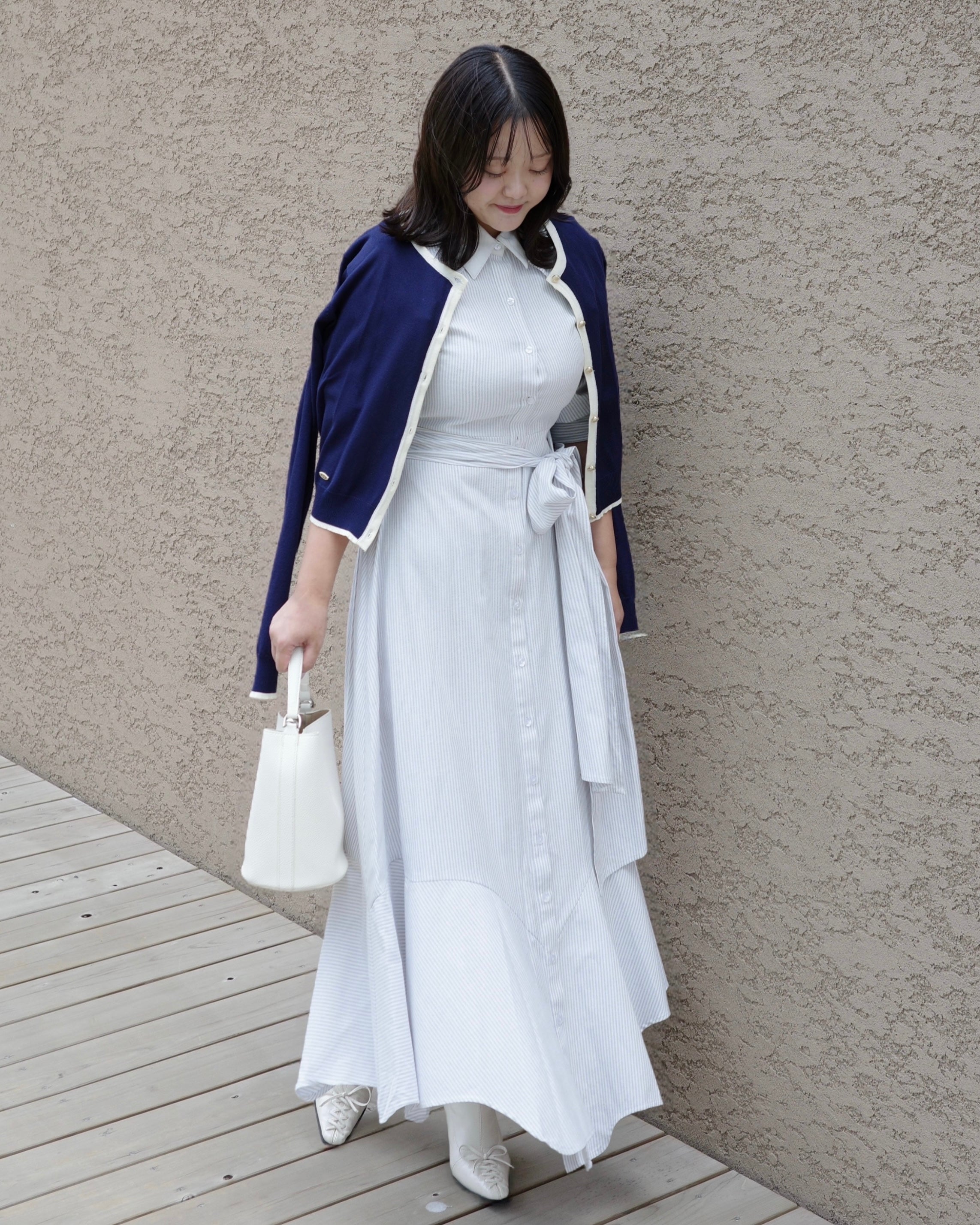 【セット割+¥2,000でトップスGET】フリルリボンシャツワンピース