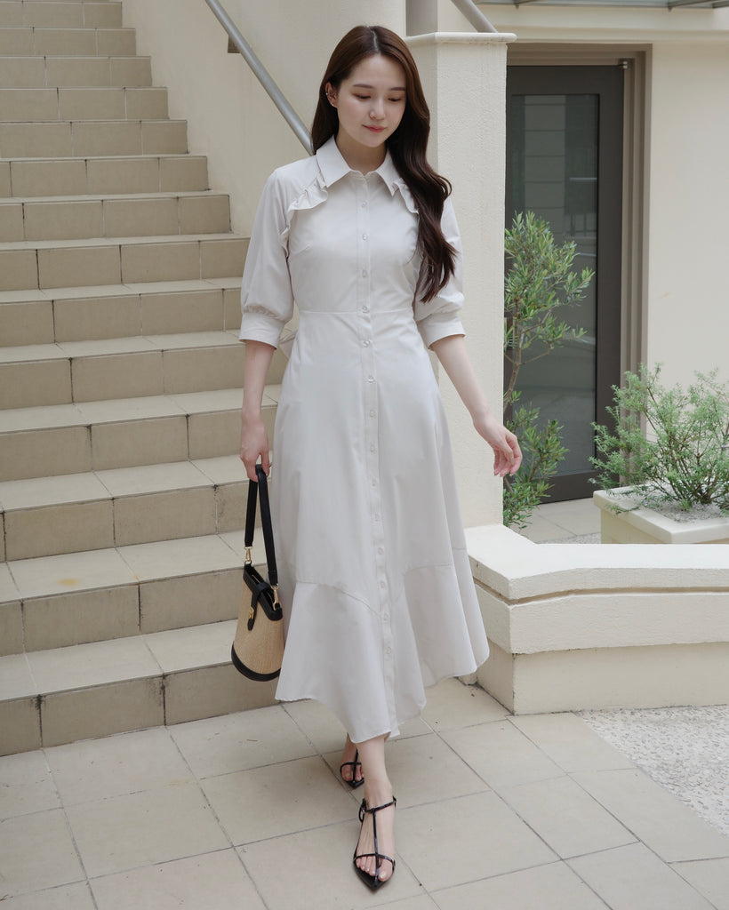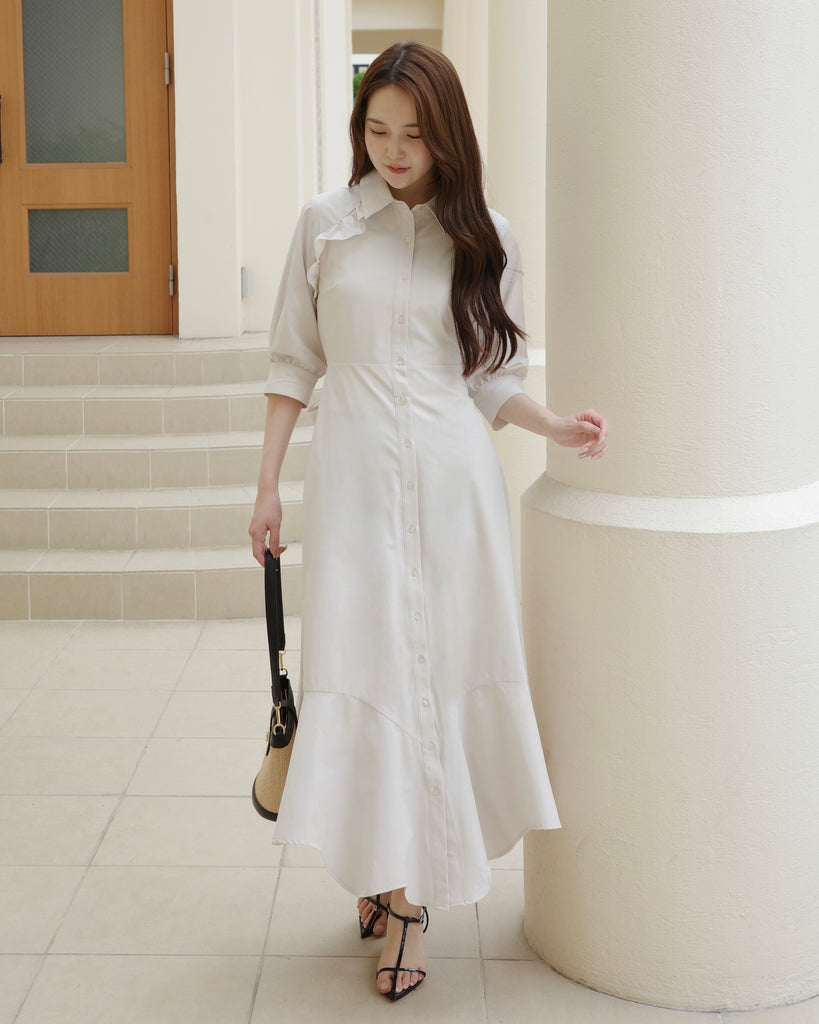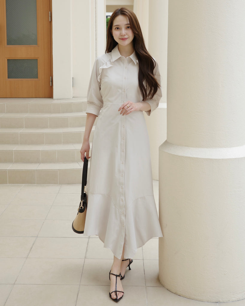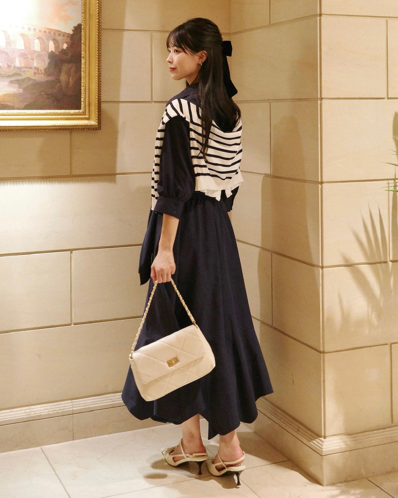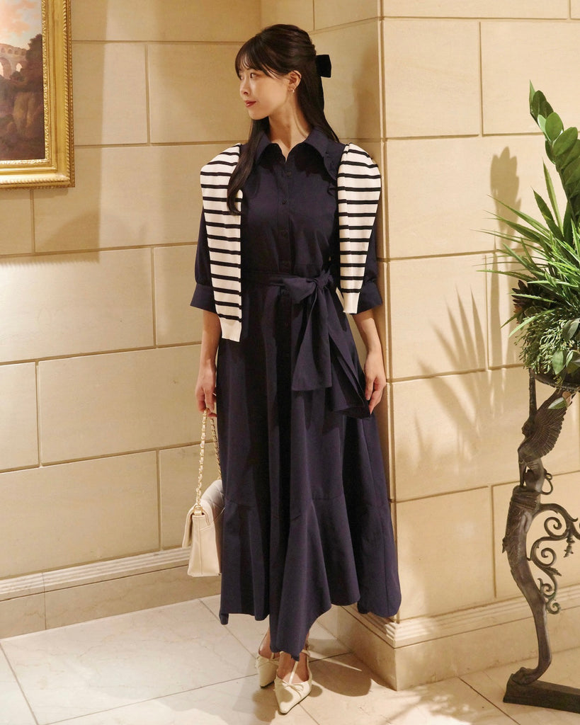 【セット割+¥2,000でトップスGET】フリルリボンシャツワンピース