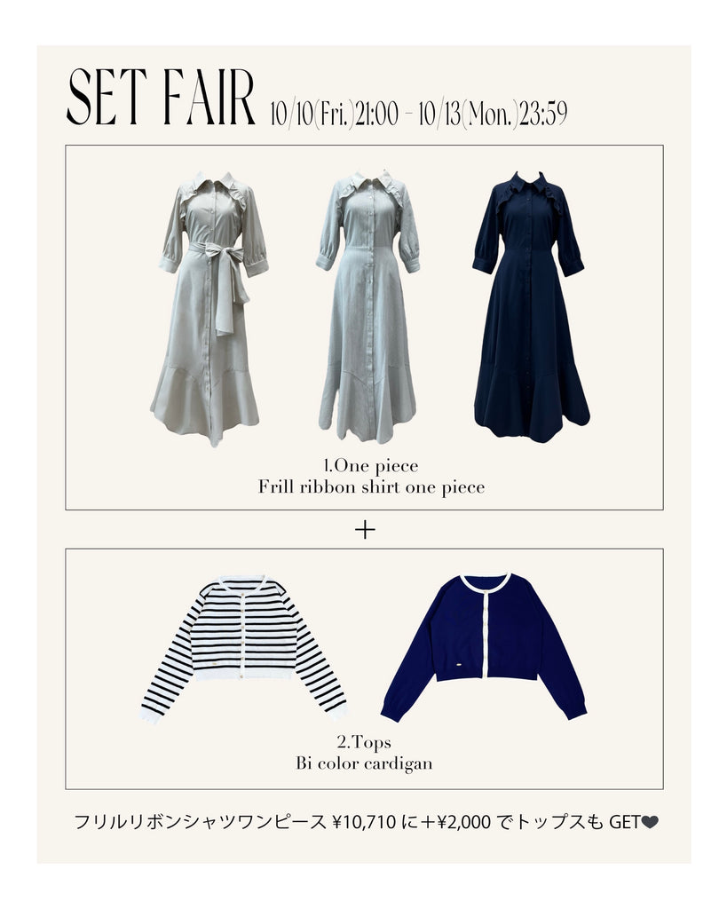 【セット割+¥2,000でトップスGET】フリルリボンシャツワンピース