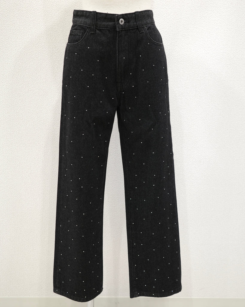 揺れ動く度に煌めく、ラインストーンデニムパンツ。