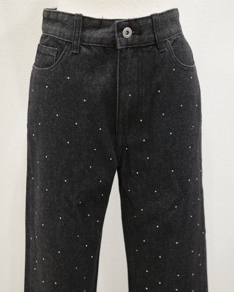 カジュアルなデニムパンツにラインストーンをあしらうことで、