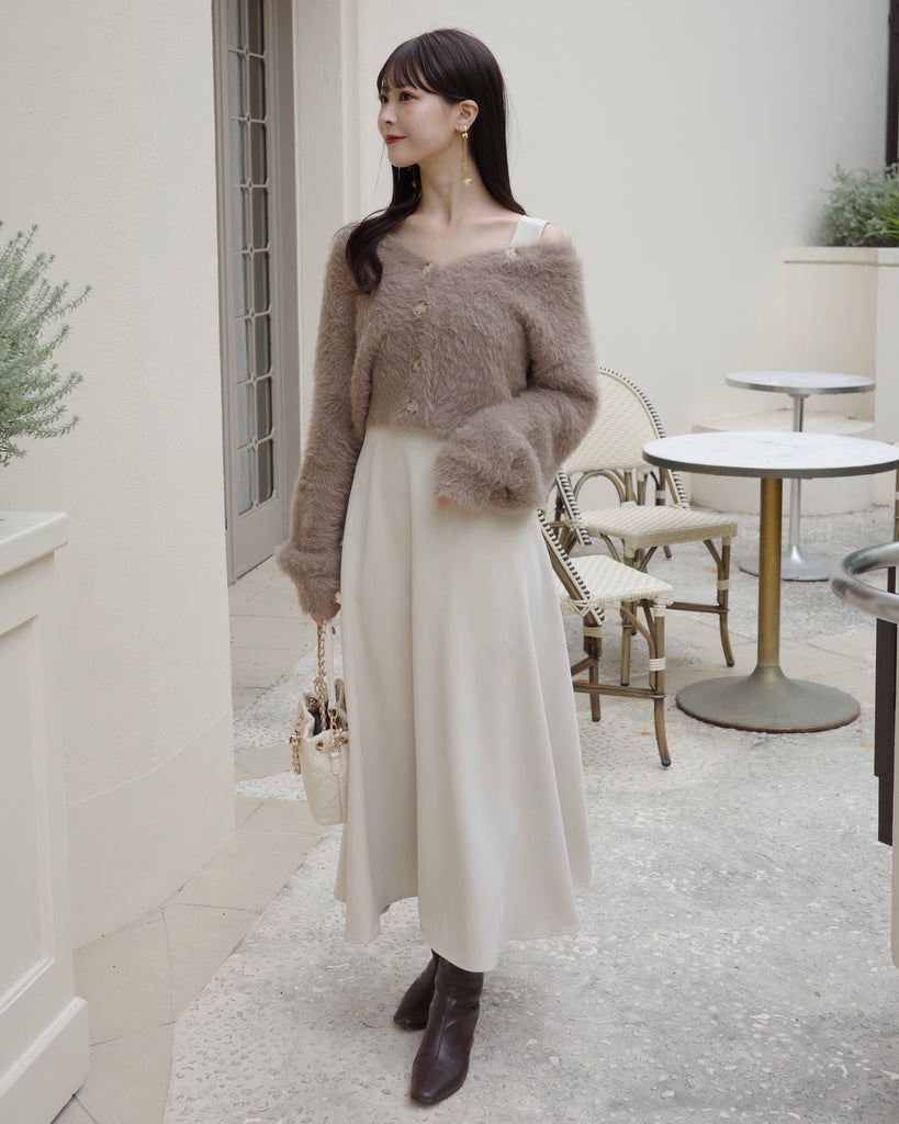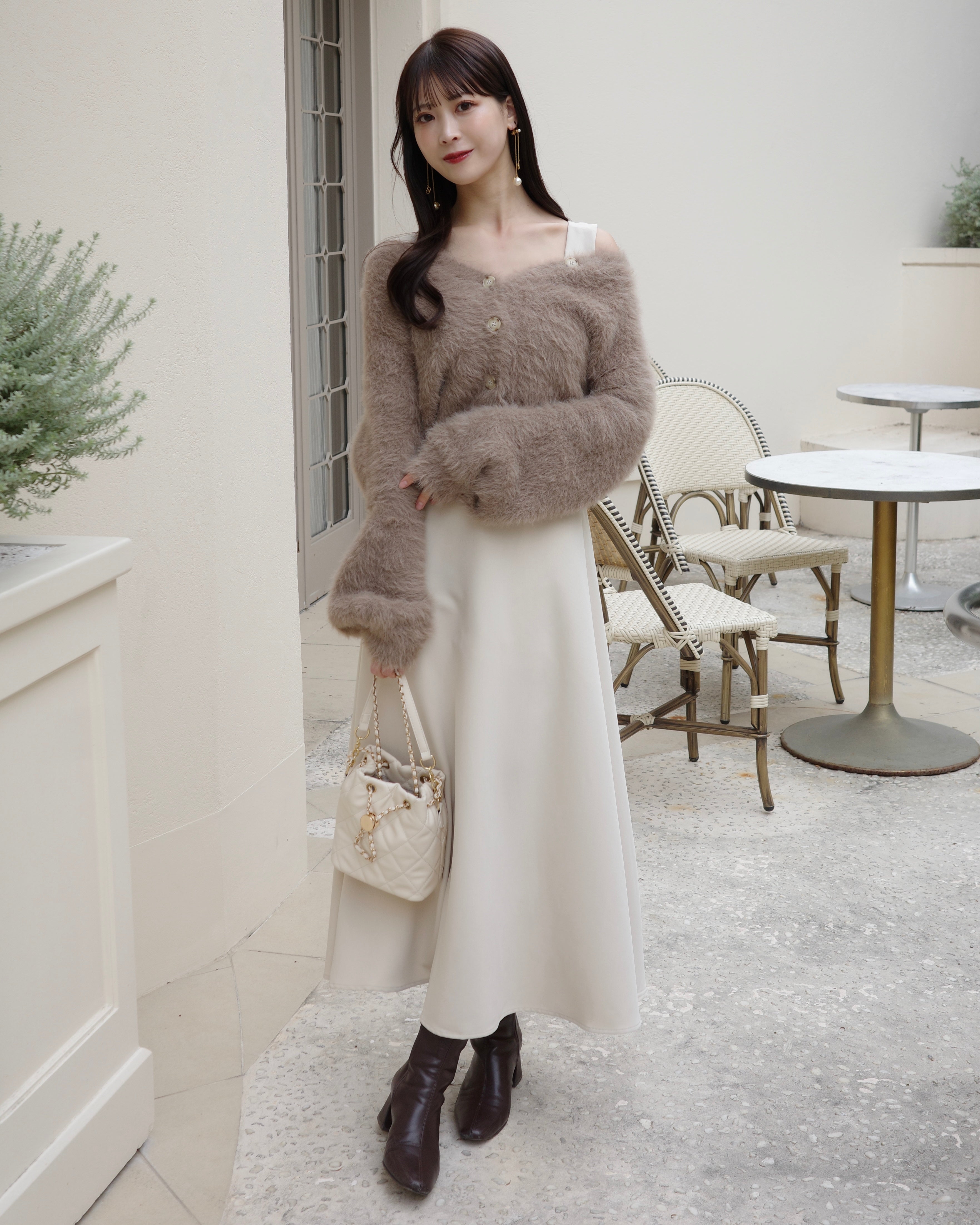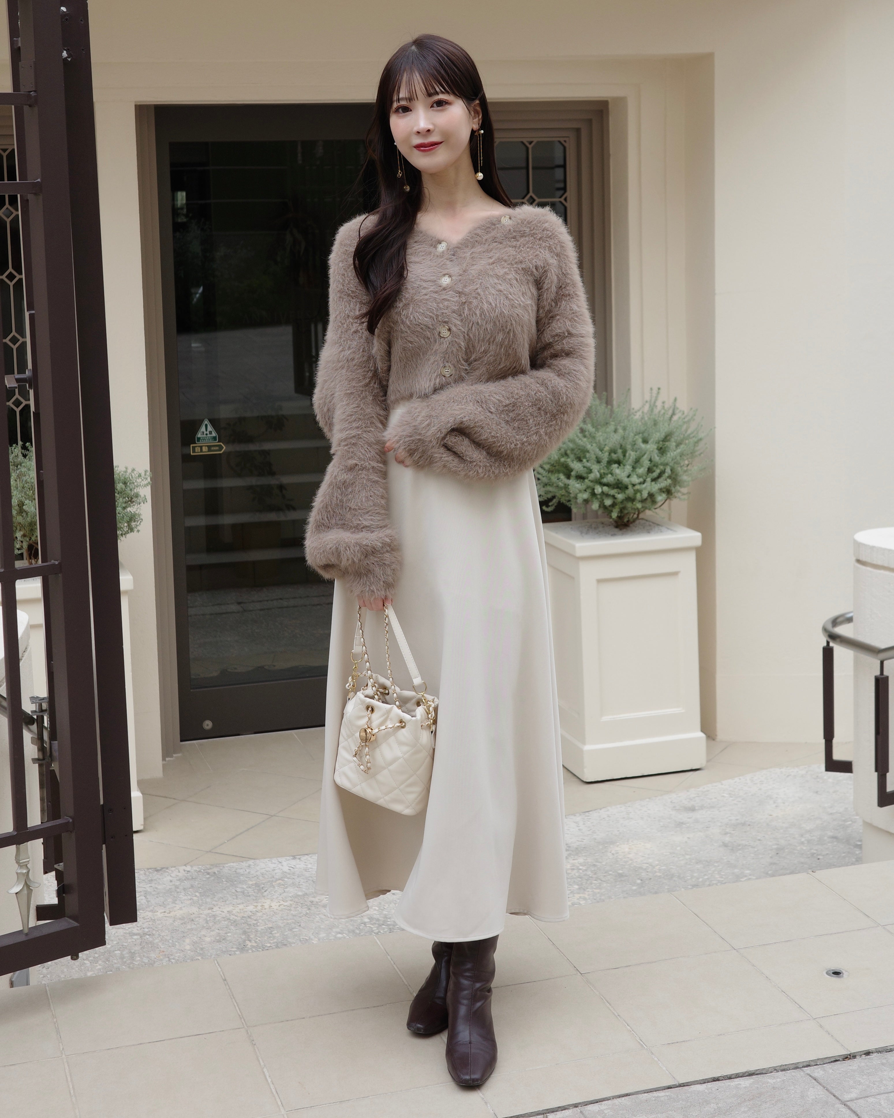 肌触りの良いシャギーニットと綺麗めワンピースのセットアイテム。
