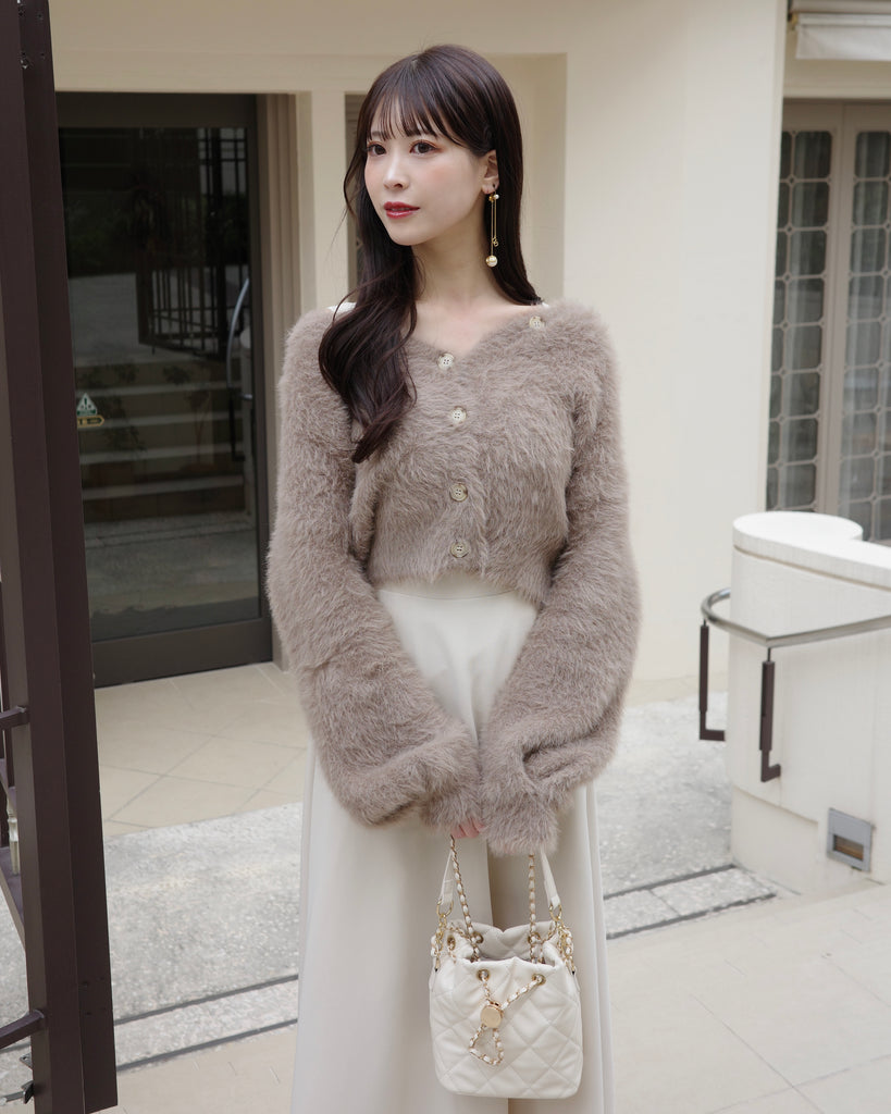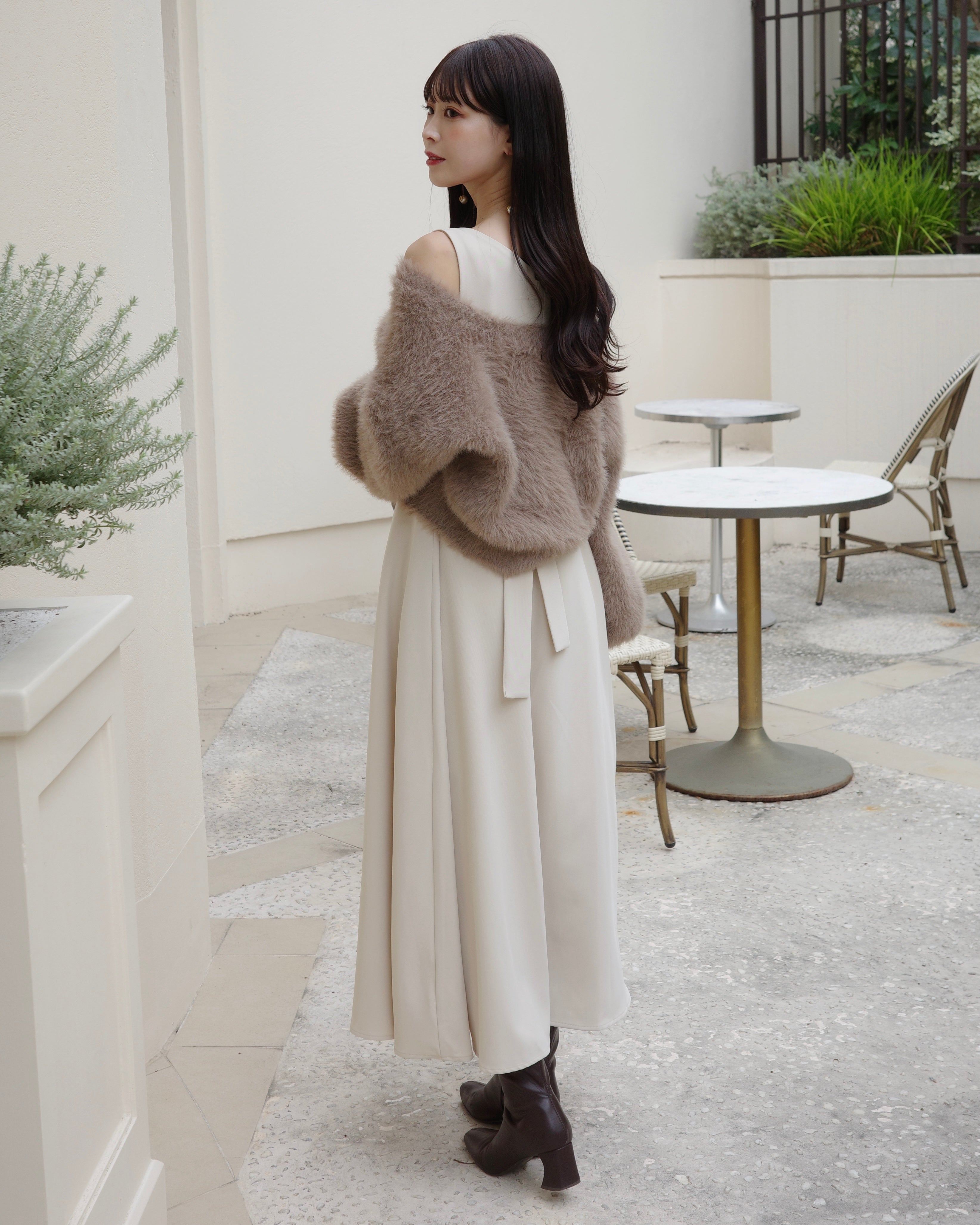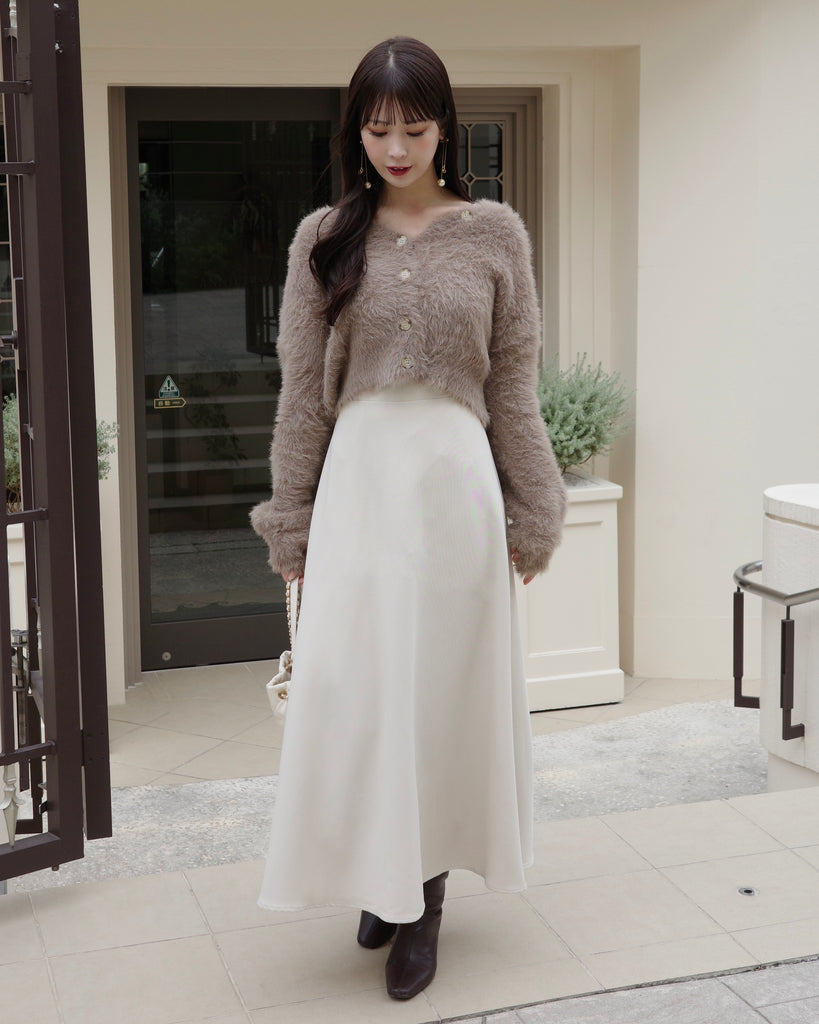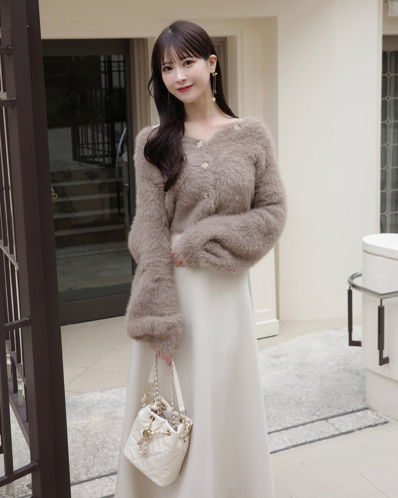 肌触りの良いシャギーニットと綺麗めワンピースのセットアイテム。