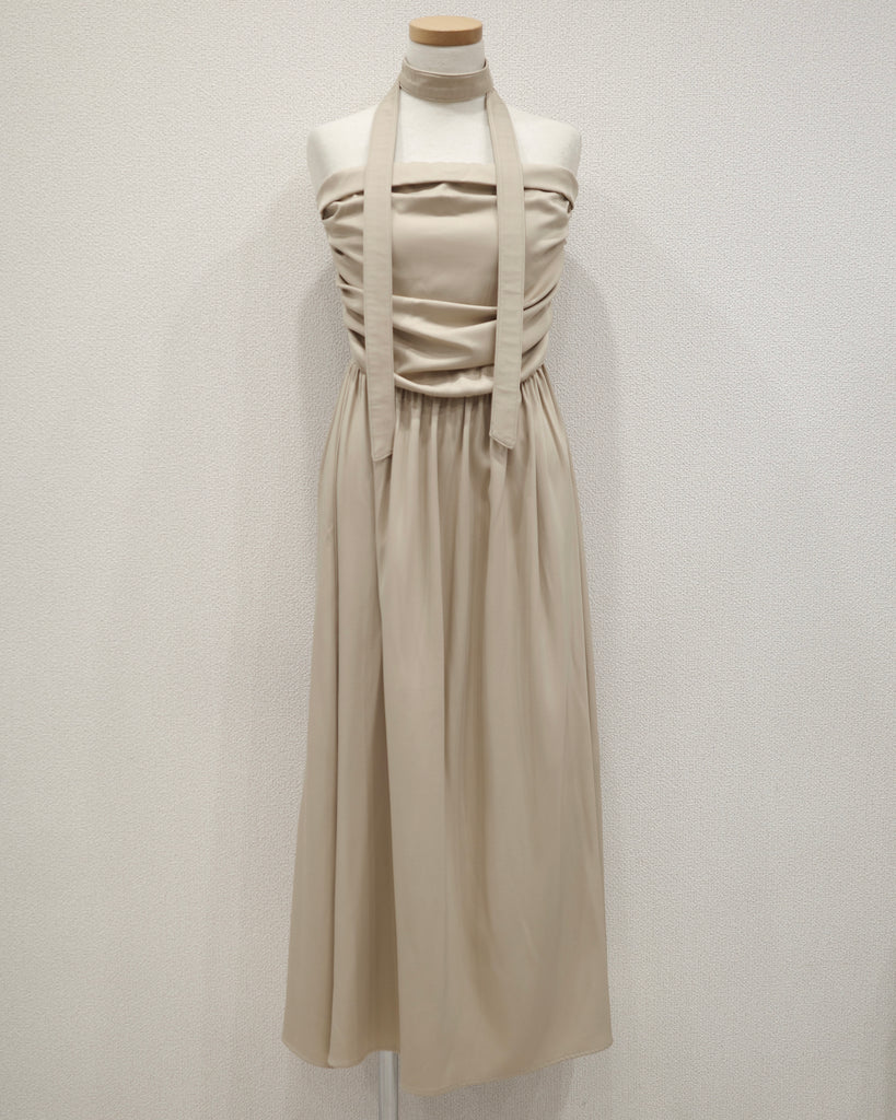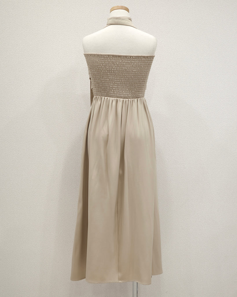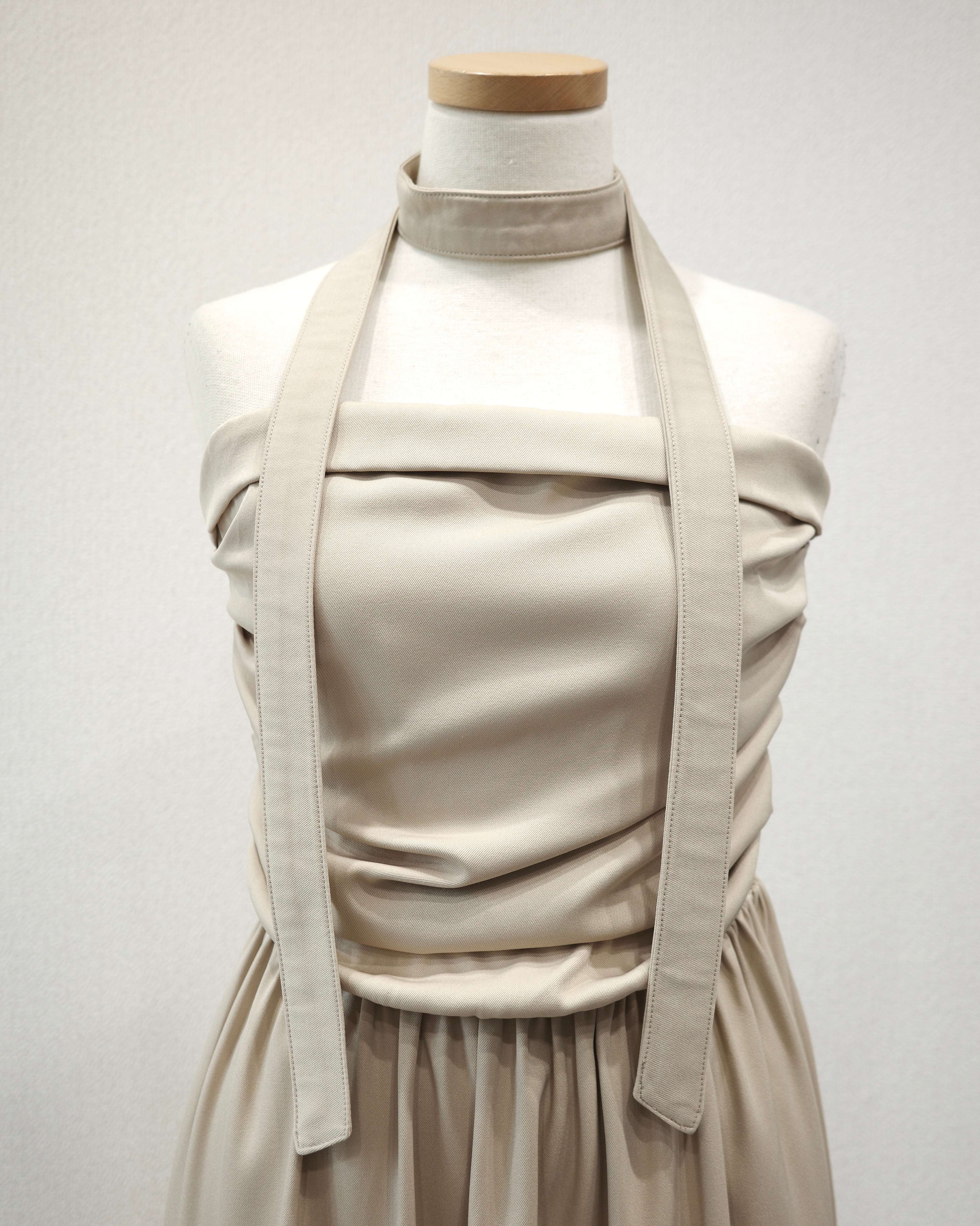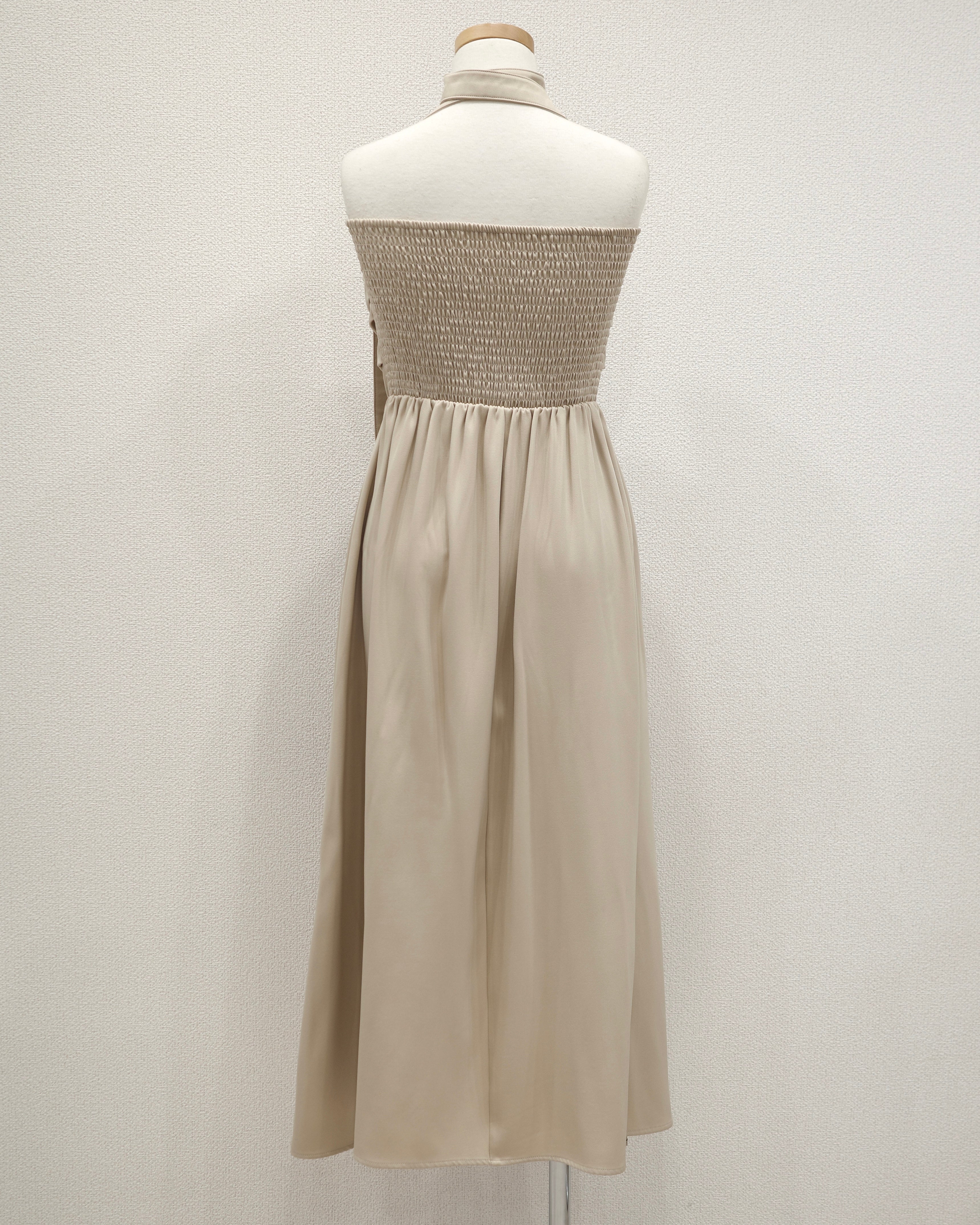 後ろはシャーリングゴムを施し、ストレスフリーな1着です。